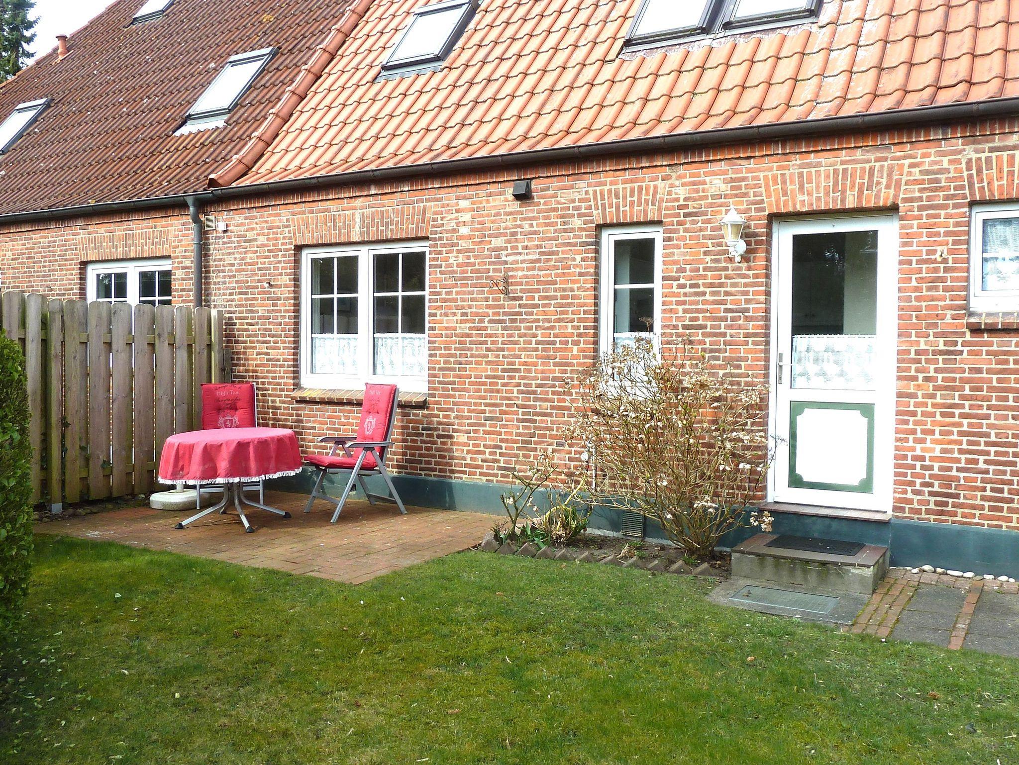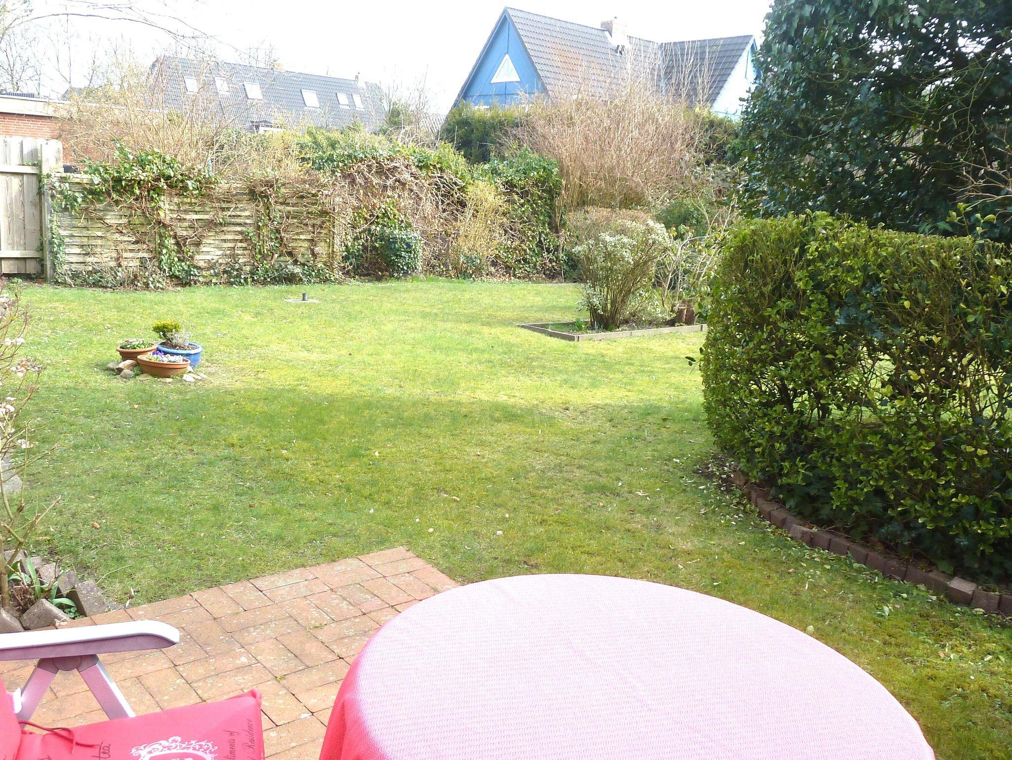 Gemütliche Erdgeschosswohnung mit Garten und Terrasse in Wyk auf Föhr, ideal für 2 Erwachsene und ein Kleinkind.