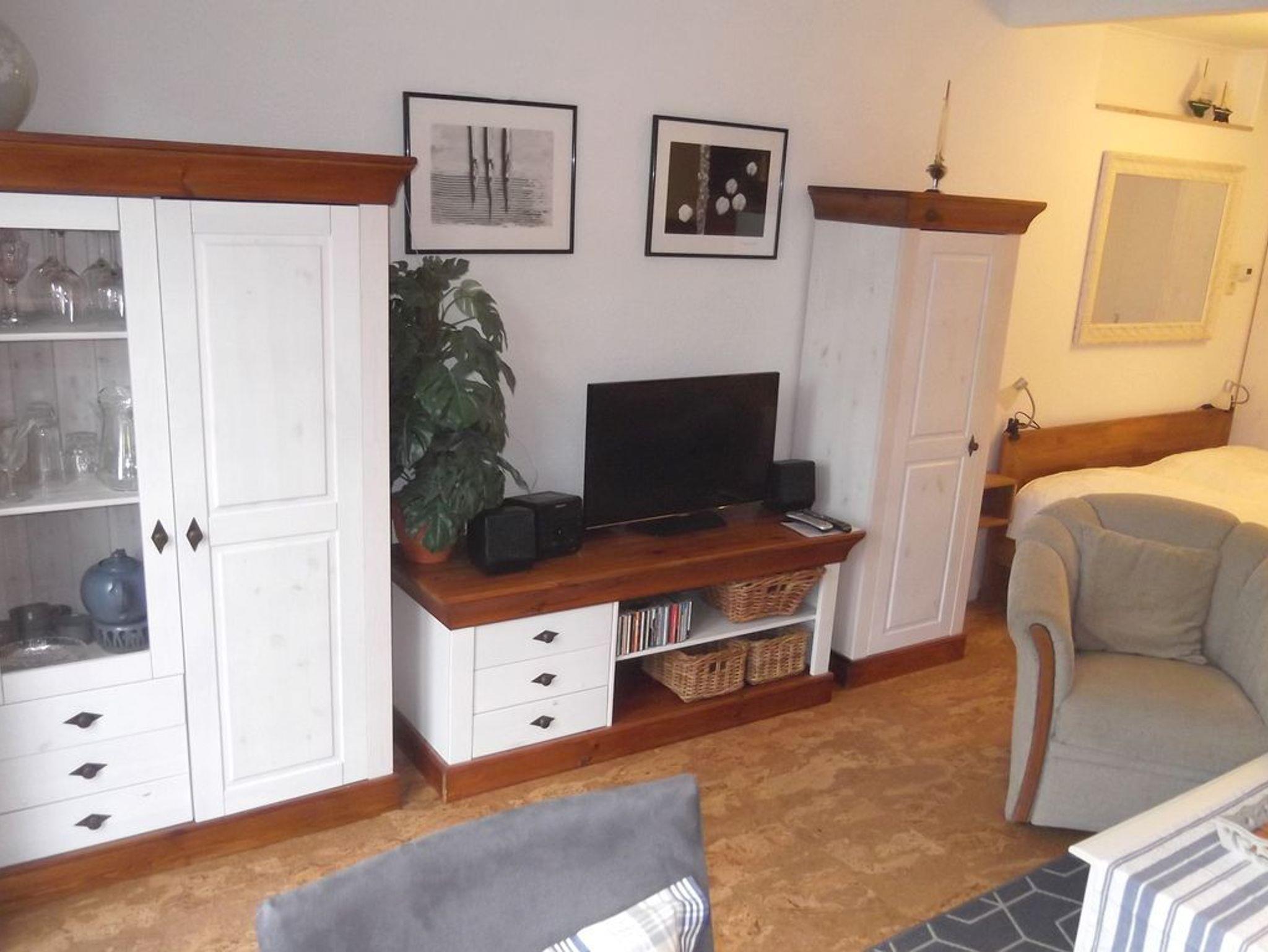 Diese schöne, strandnah gelegene Erdgeschosswohnung hat eine Größe von 35m² und bietet Platz für zwei Personen. Der Badestrand ist nur etwa 200m entfernt. Der Eingang zur Wohnung befindet sich auf der Rückseite des Stadthauses. Sie können die Wohnung aber auch durch den Garten und über die Terrasse betreten. Terrassenmöbel sind vorhanden. Das Appartement verfügt über eine schöne Küchenzeile, ein Doppelbett und einen Essplatz am Fenster. Das Duschbad wurde frisch renoviert.