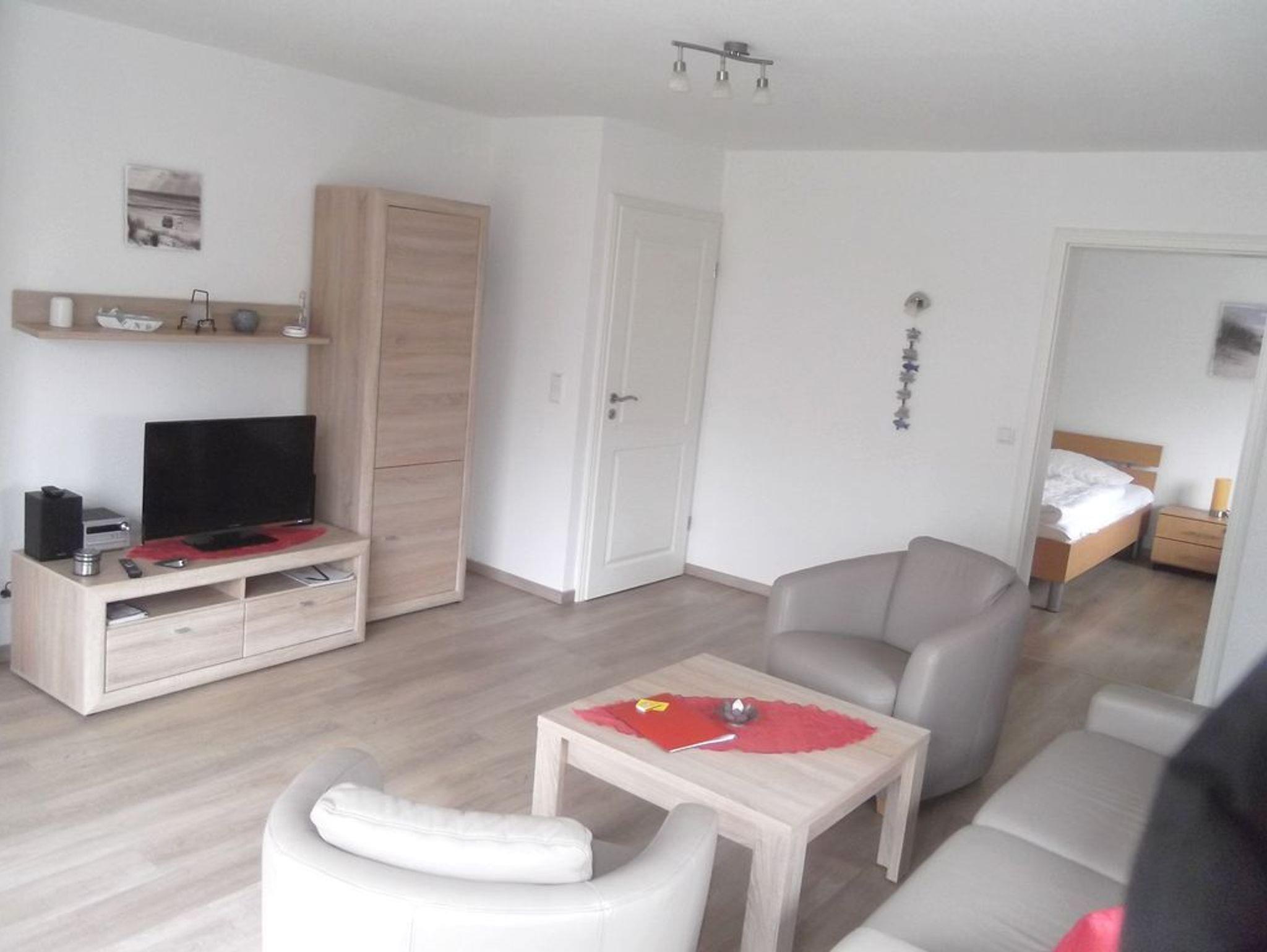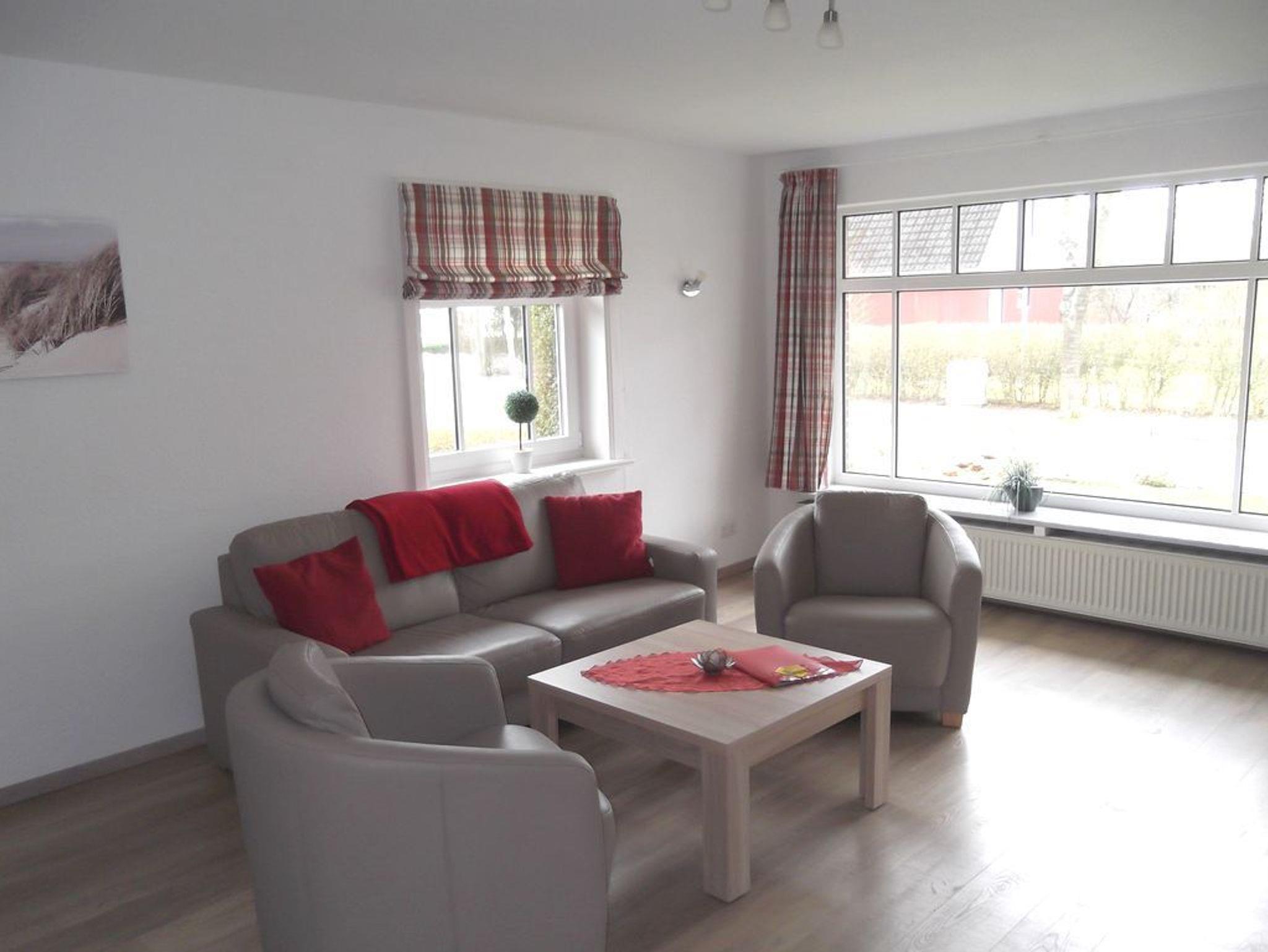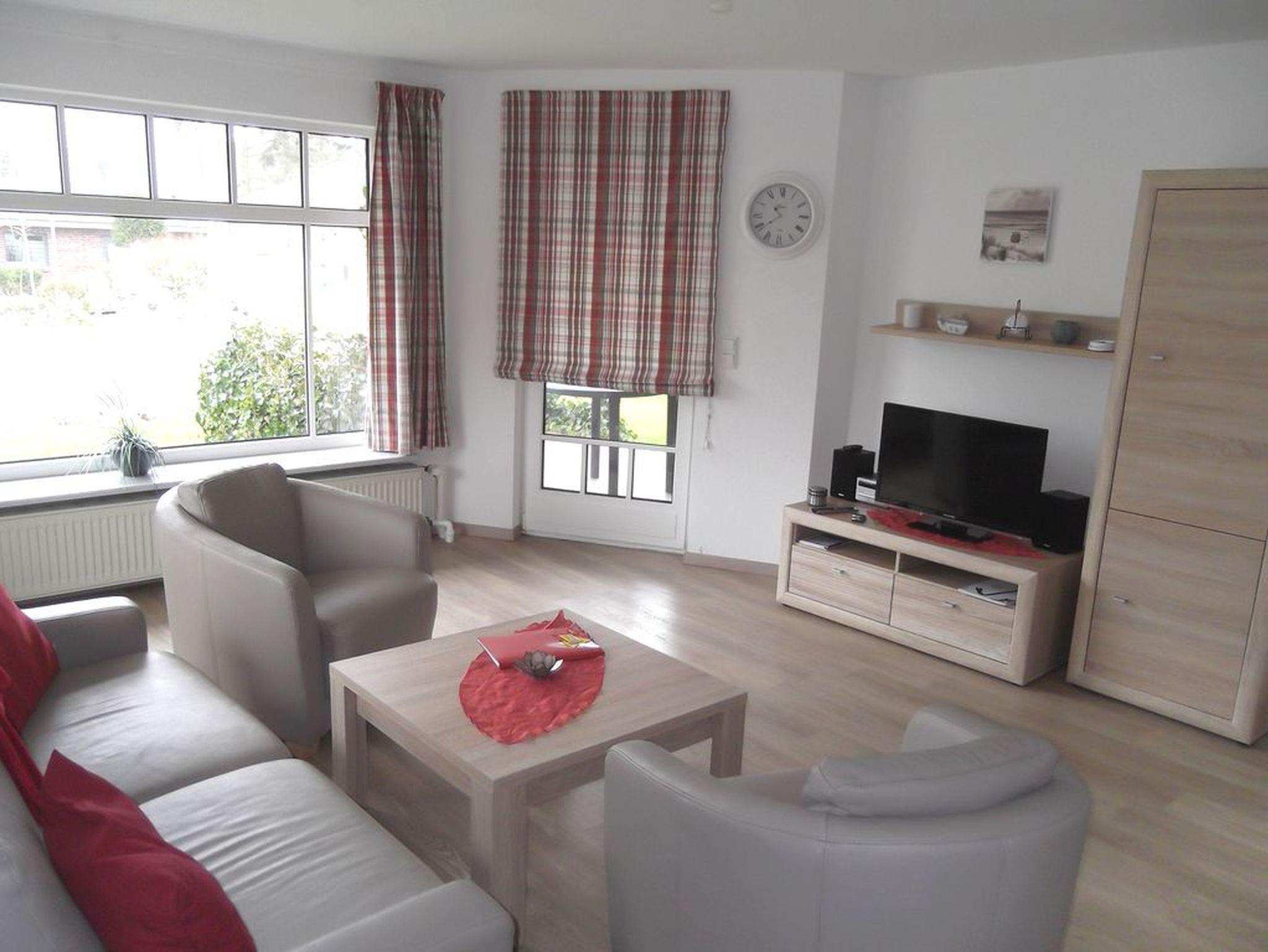 Diese schöne 74 m² große Erdgeschosswohnung liegt in der Nähe des Südstrands. Dieser ist nur 400m entfernt. Die Wohnung ist für 2 bis 4 Personen geeignet und bietet neben dem hellen, gemütlichen Wohnzimmer mit Terrasse, zwei Schlafzimmer, eine gut ausgestattete Küche und ein Duschbad. Die Schlafzimmer sind jeweils mit einem Doppelbett und zwei Einzelbetten ausgestattet. In der Küche befinden sich u.a. ein Backofen und ein Geschirrspüler.