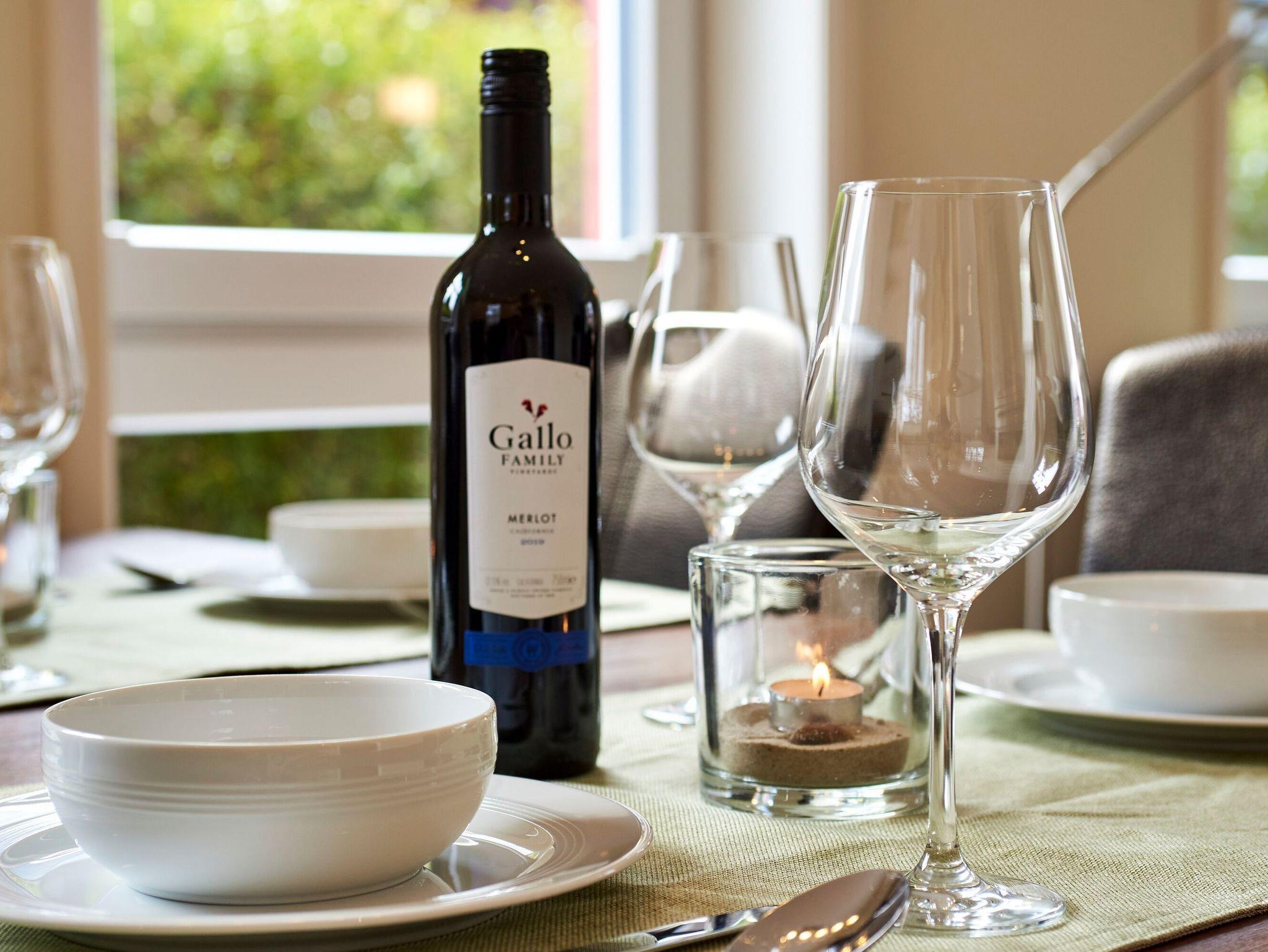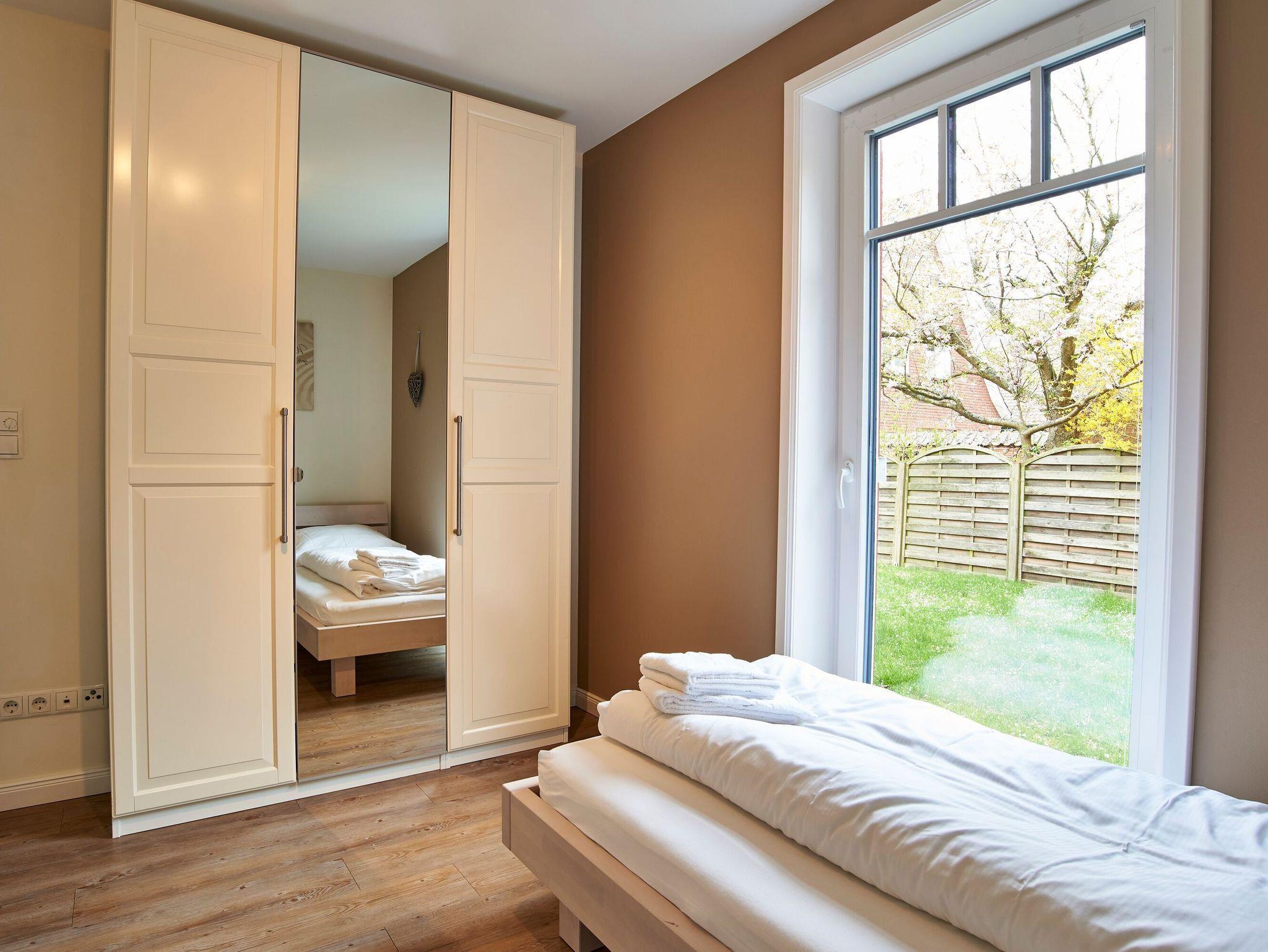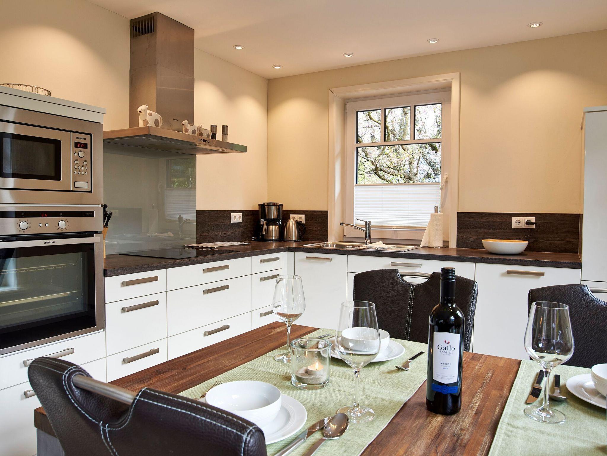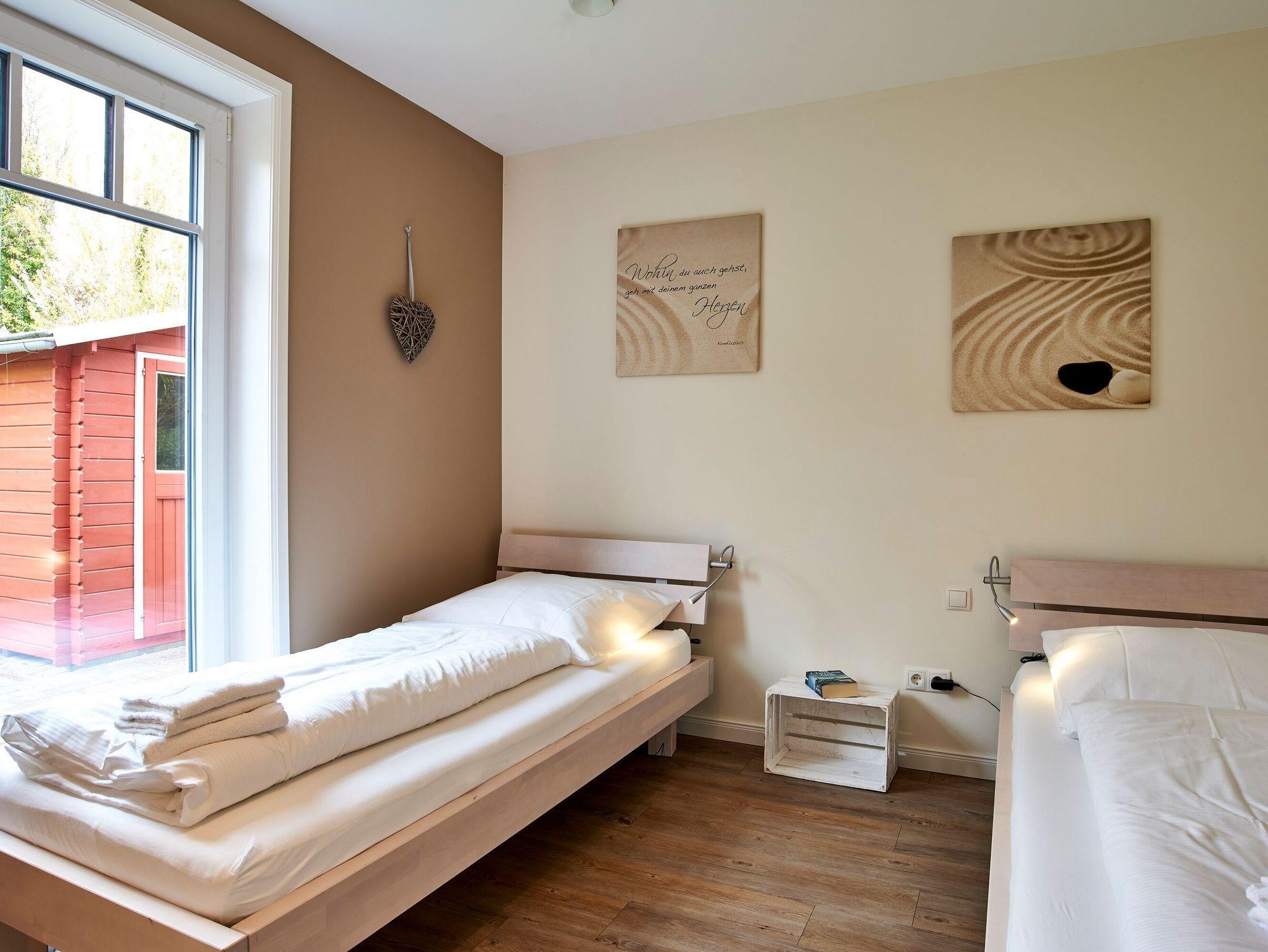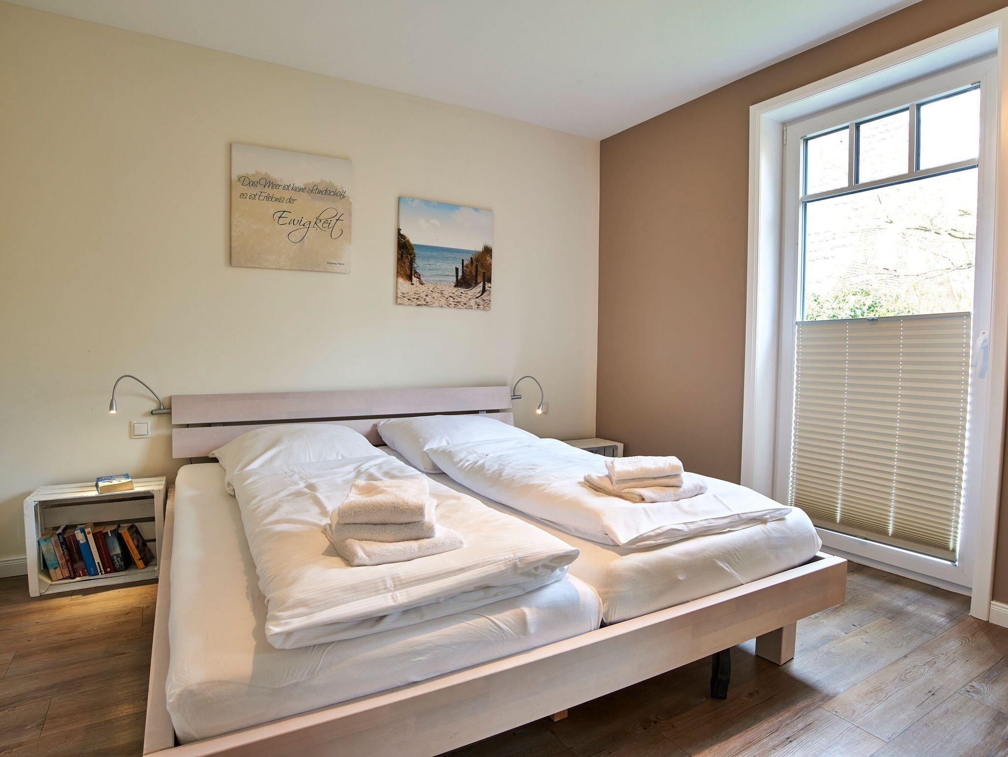 Moderne Ferienwohnung auf Föhr mit Kamin, Terrasse und Sauna, ideal für Familien und Haustierfreunde.