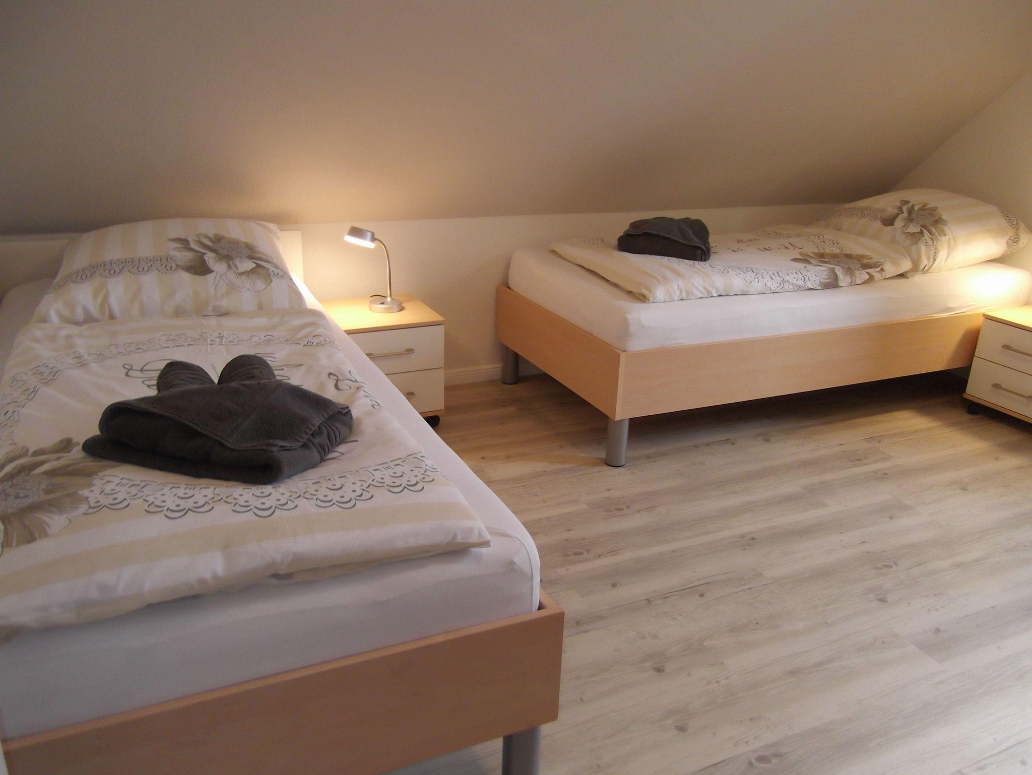 Die helle 45 m² große Obergeschoßwohnung bietet Platz für 2 bis 4 Personen und liegt in einer ruhigen Seitenstraße. Das Objekt verfügt über ein Schlafzimmer mit einem Doppelbett und einem Schlafzimmer mit 2 Einzelbetten. Die separate Küche hat einen kleinen Sitzplatz für zwei Personen, ein Wohnzimmer und ein Duschbad. Im Keller befindet sich eine Waschmaschine und ein Trockner, die Sie gerne nutzen können.