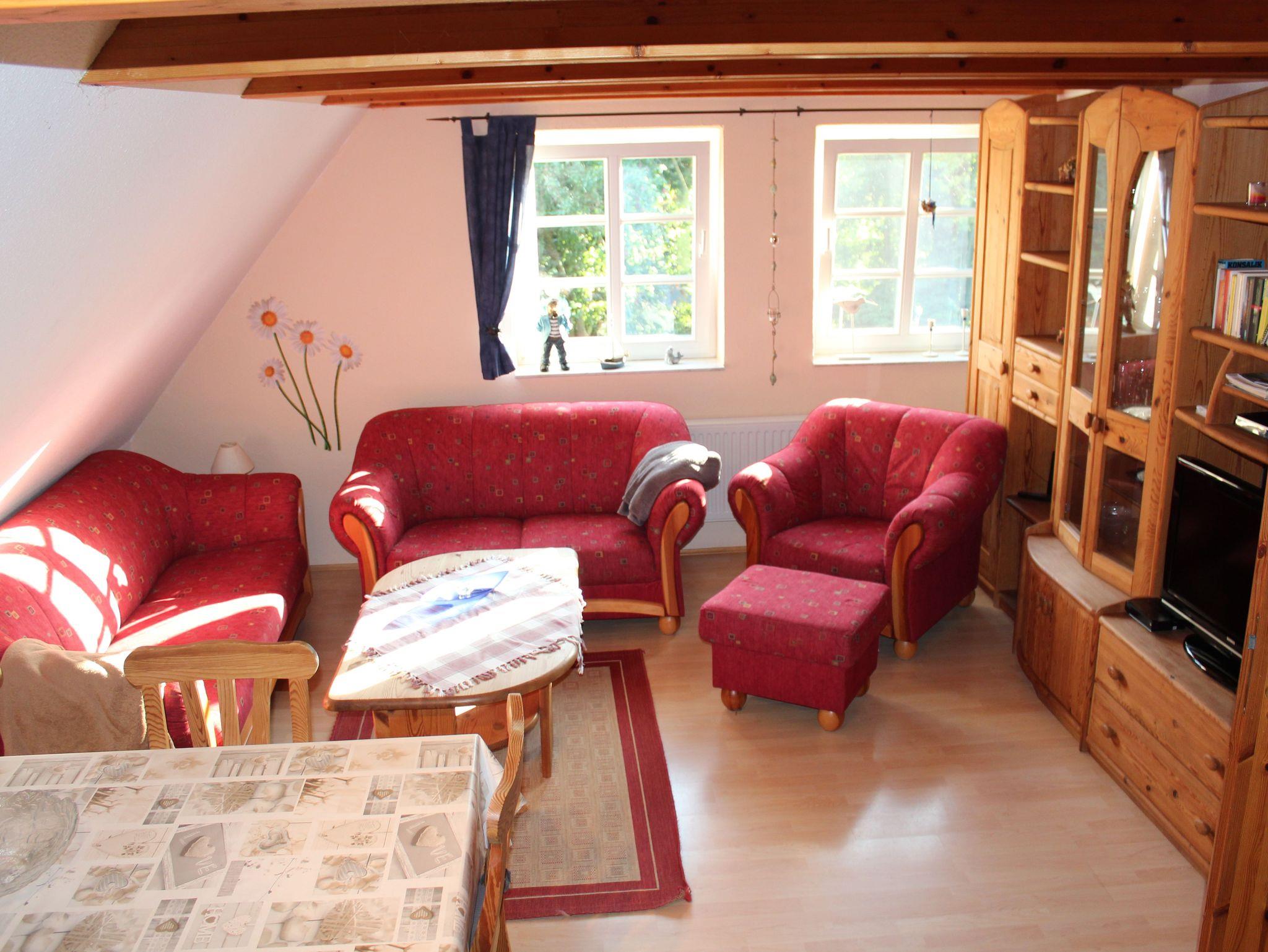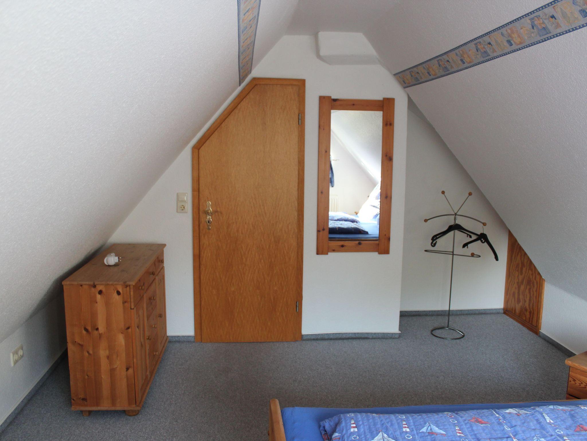 In der gemütlichen, 75 qm großen Ferienwohnung im Obergeschoß finden Sie Platz für 2 bis 5 Personen. Die, im nordischen Stil eingerichtete helle Wohnung, verfügt über drei Schlafzimmer, ein Wohnzimmer mit integrierter Küche und Eßplatz, und natürlich ein Duschbad.