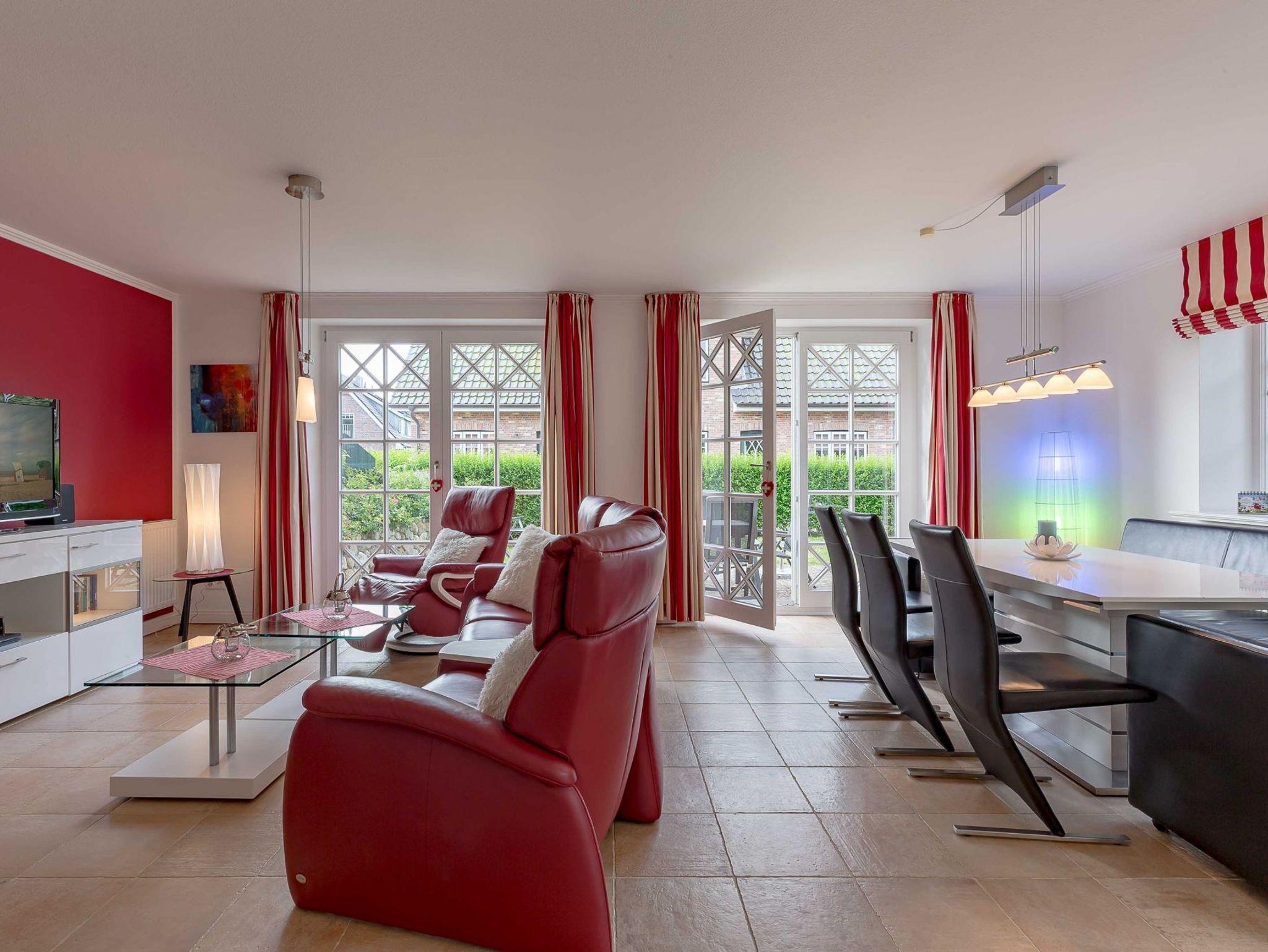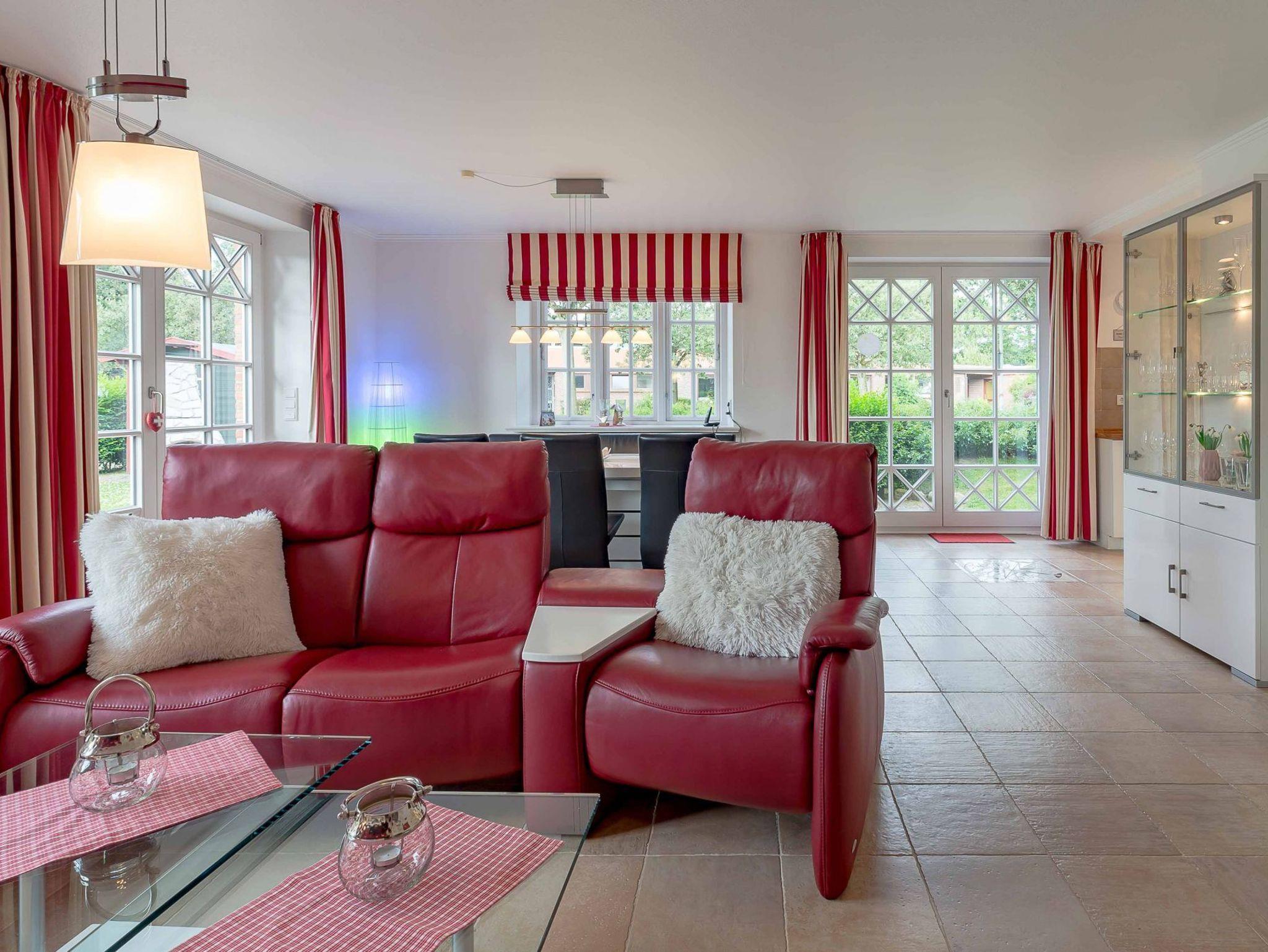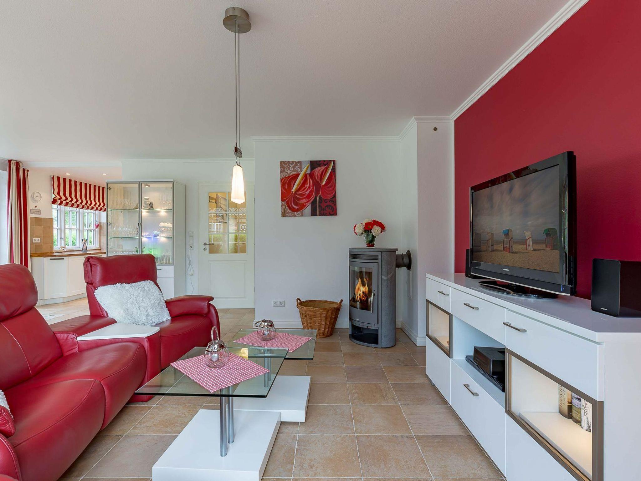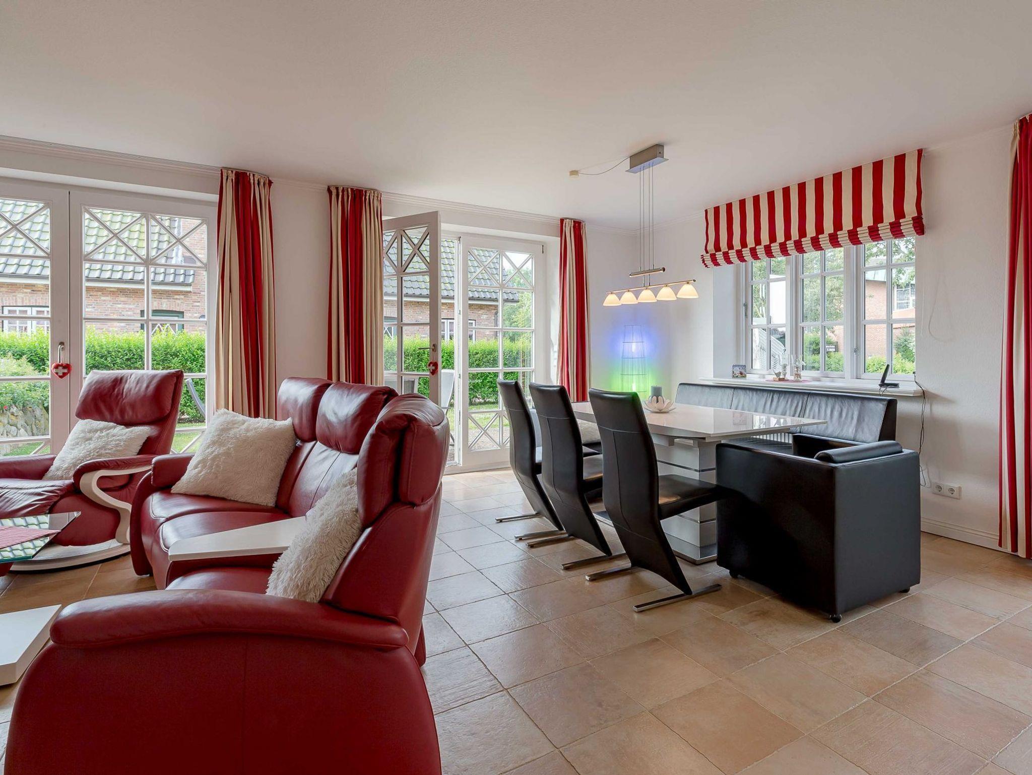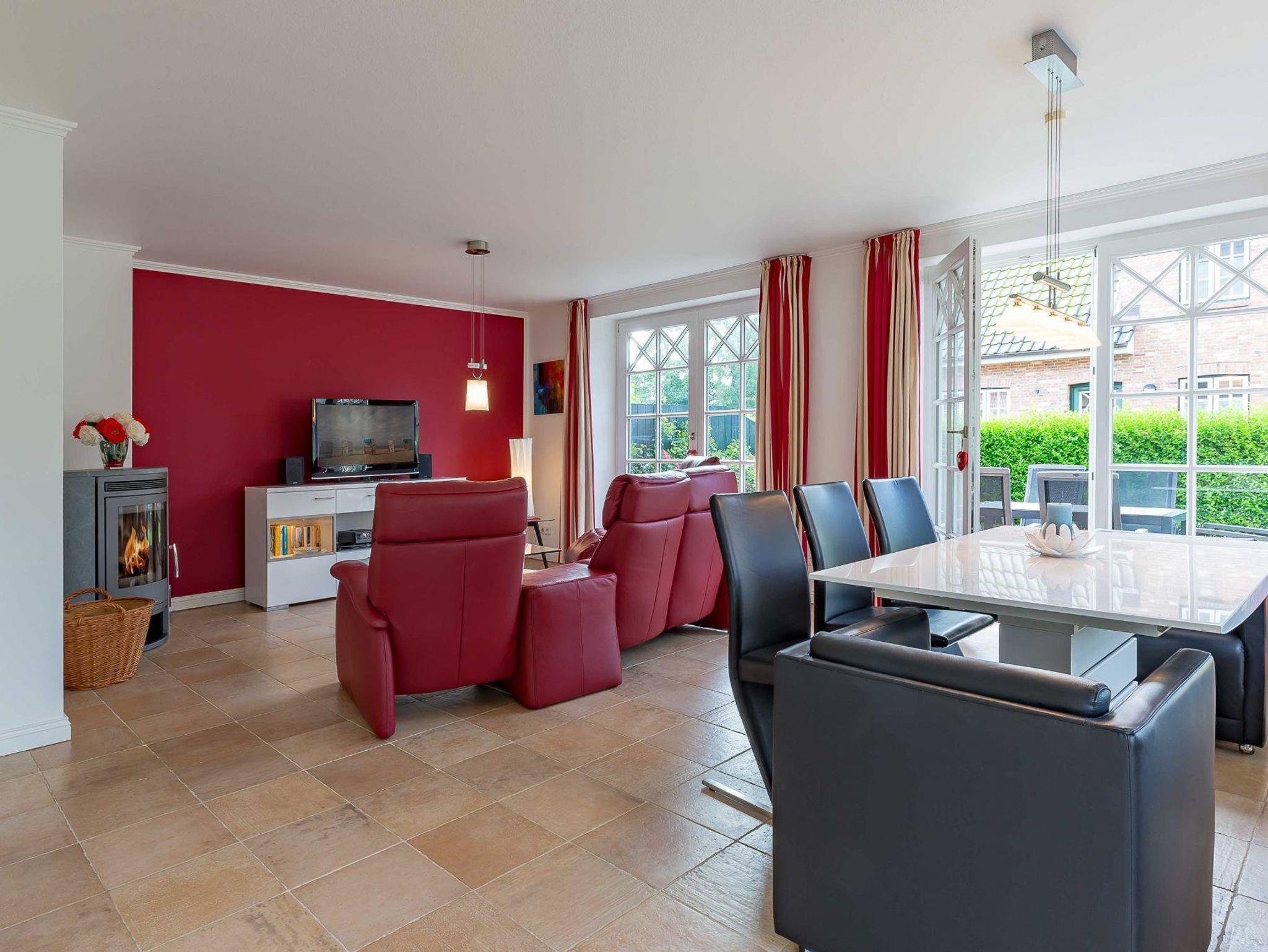 Moderne Doppellhaushälfte auf Föhr mit Sauna, Kamin und Strandnähe für entspannte Ferien.
