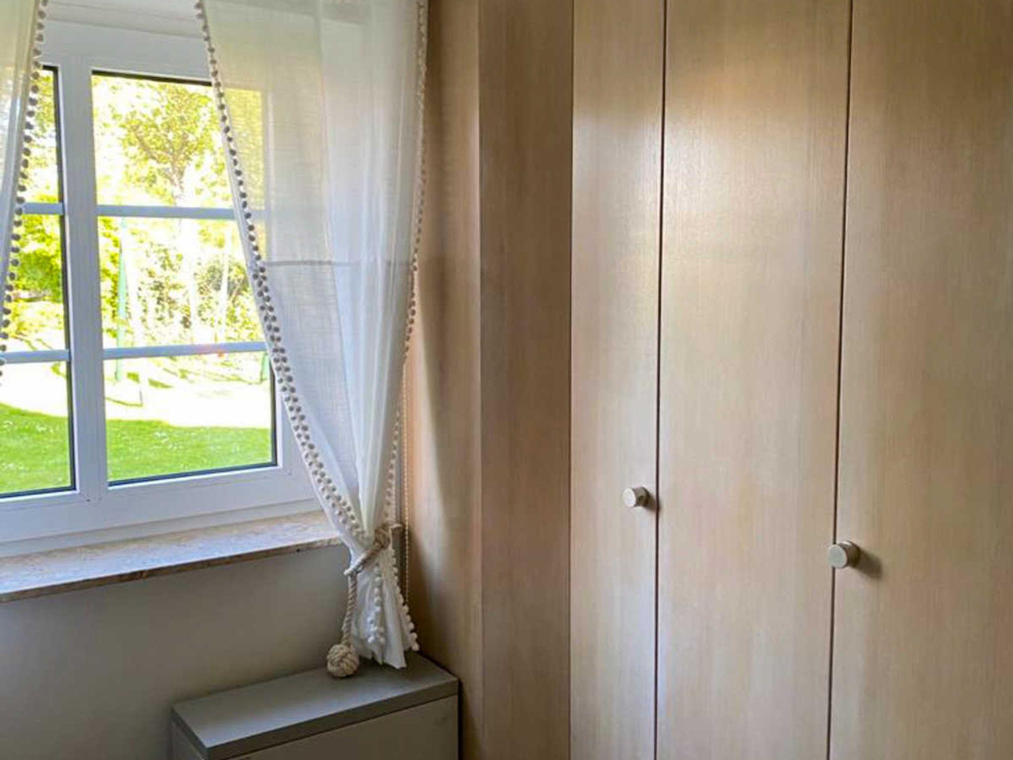 Im separaten Schlafzimmer ist ein Doppelbett (Boxspringbett, teilbar in 2 Einzelbetten) und Kleiderschrank vorhanden.
