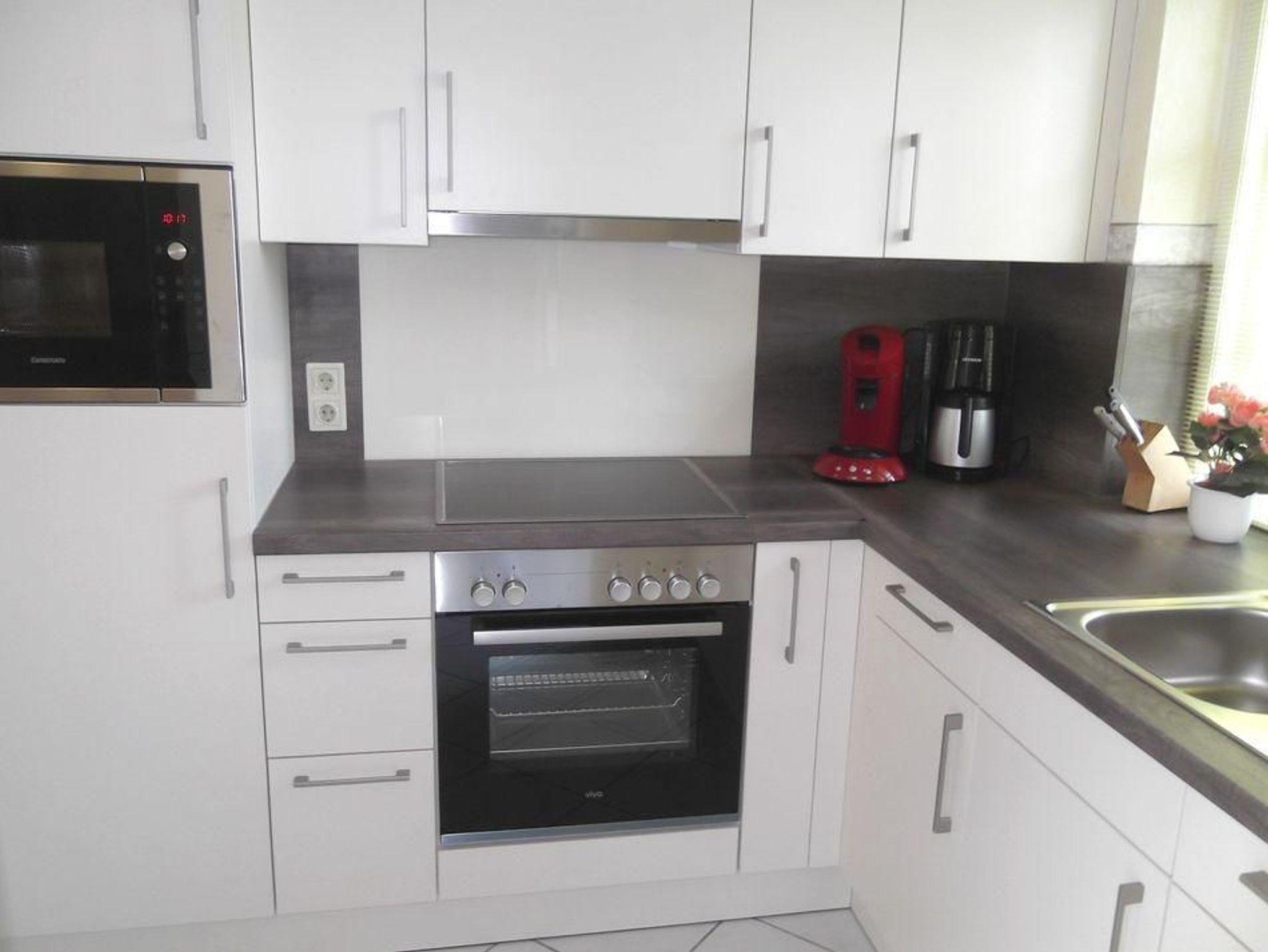 Küche / Haushalt: Backofen, Cerankochfeld, Filterkaffeemaschine, Wasserkocher, Geschirrspüler, Mikrowelle.