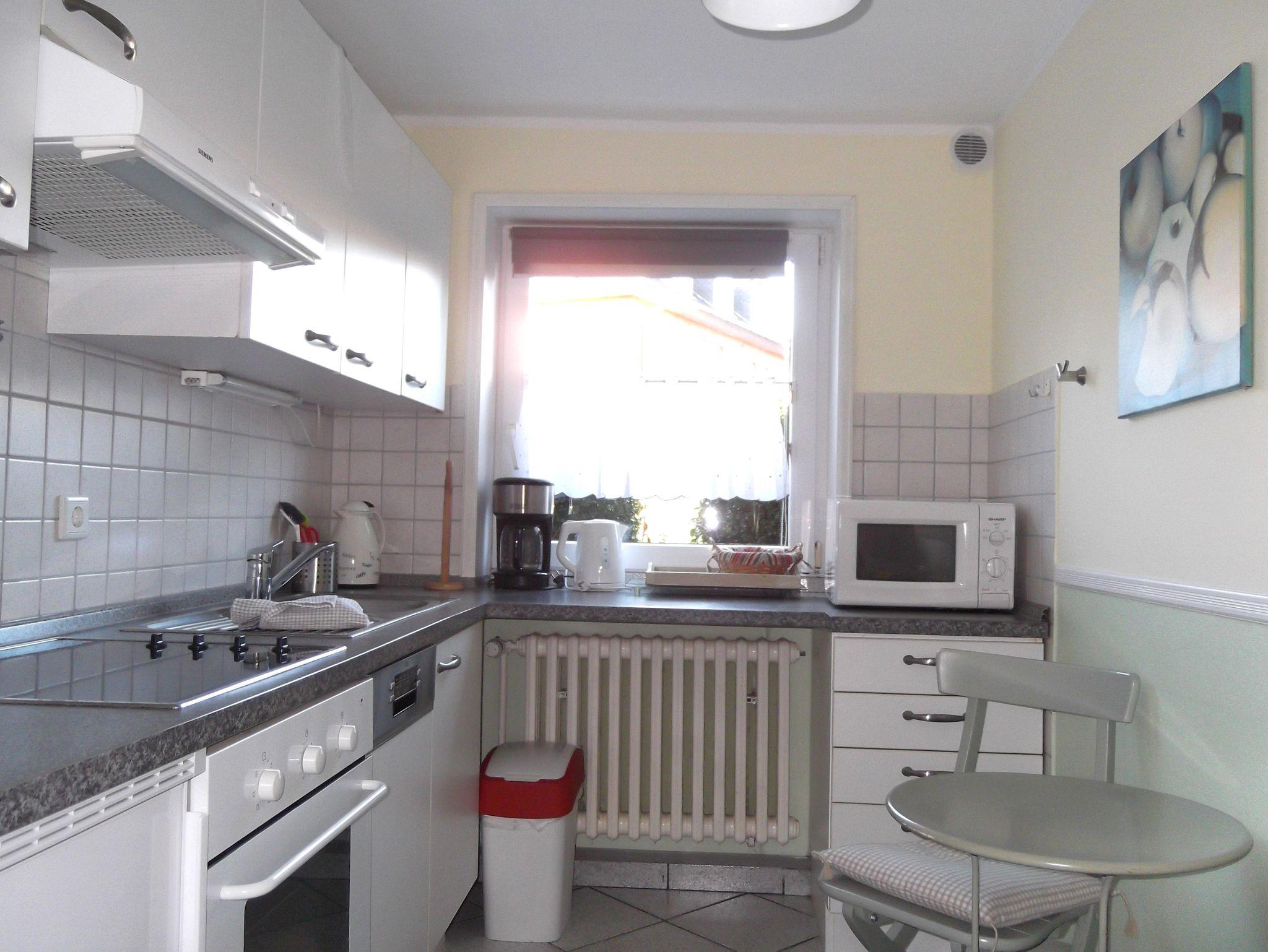 Küche / Haushalt: Backofen mit Ceranfeld, Filterkaffeemaschine, Geschirrspüler, Mikrowelle, Wasserkocher.
