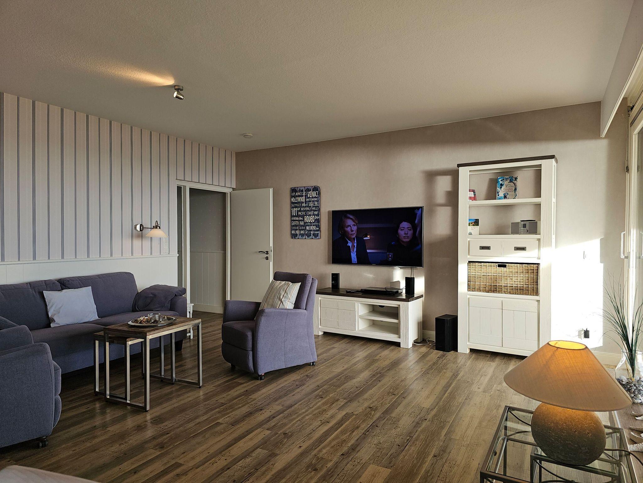 Sie verfügt über 2 Schlafzimmer und 1 Badezimmer und befindet sich im Haus Bi de Wyk im Hochparterre.