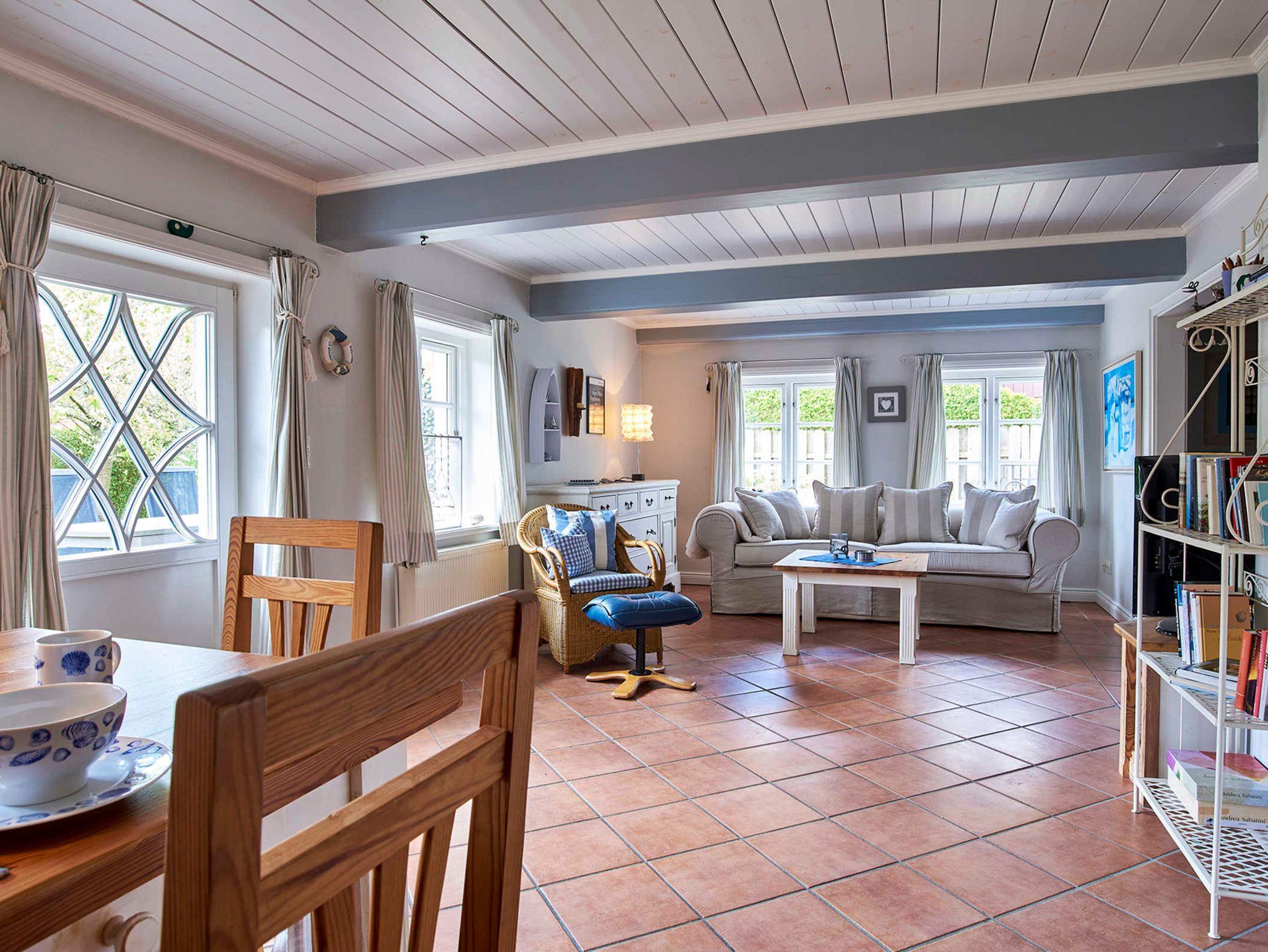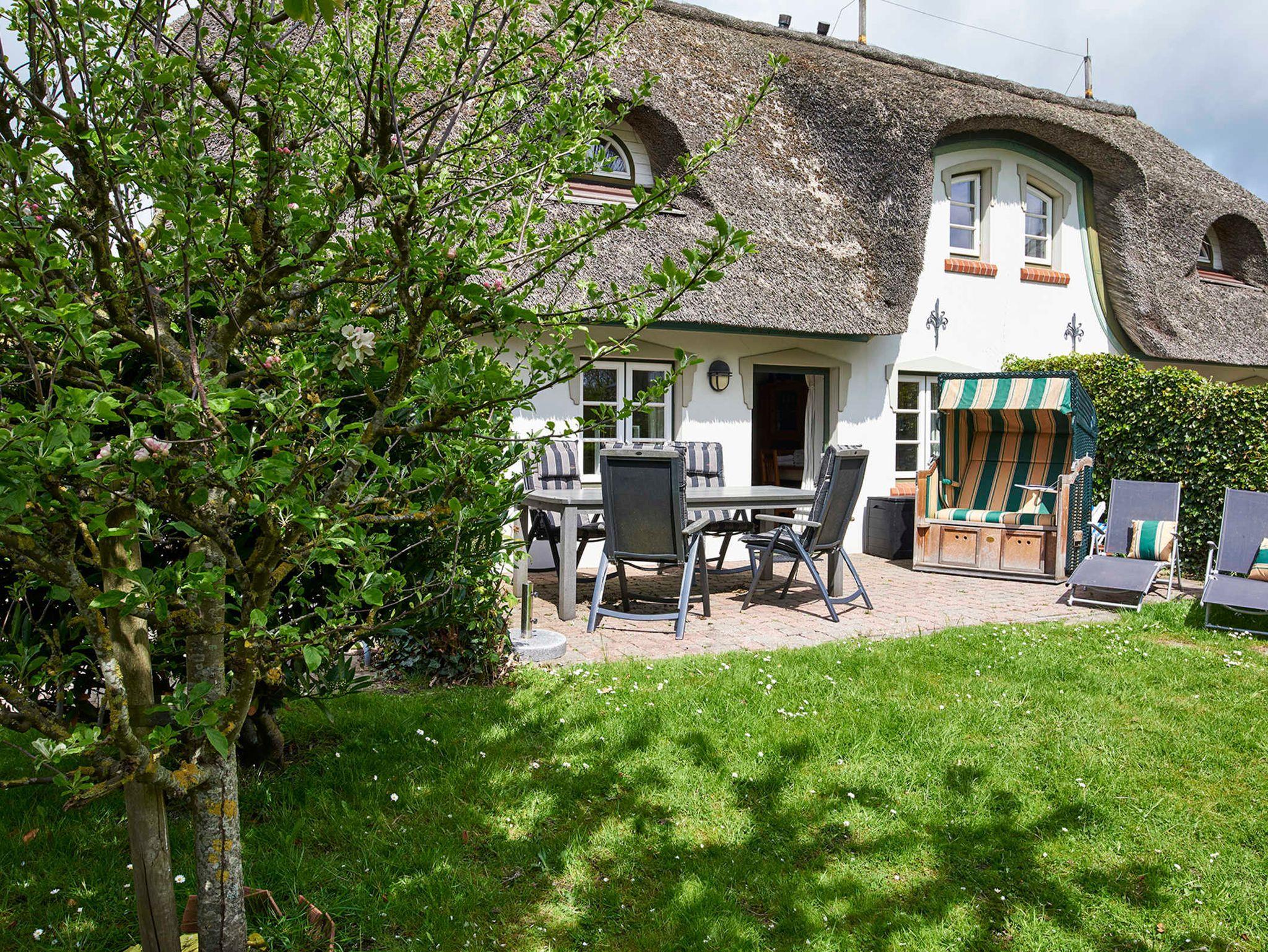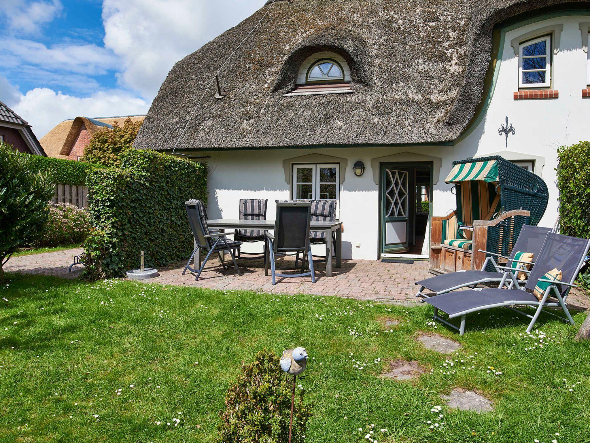 Gemütliches Reetdachhaus Inga mit Terrasse und Strandkorb in Wyk auf Föhr.