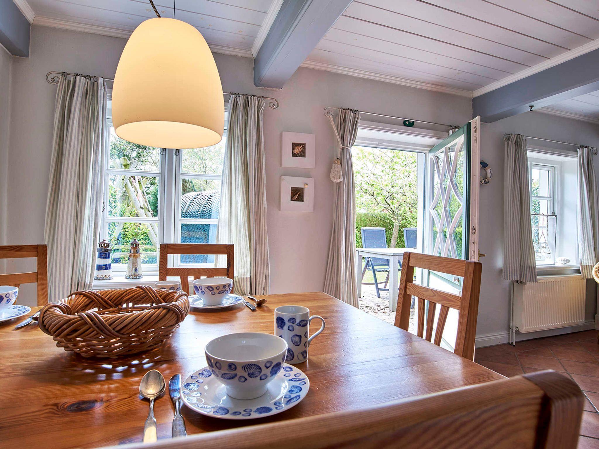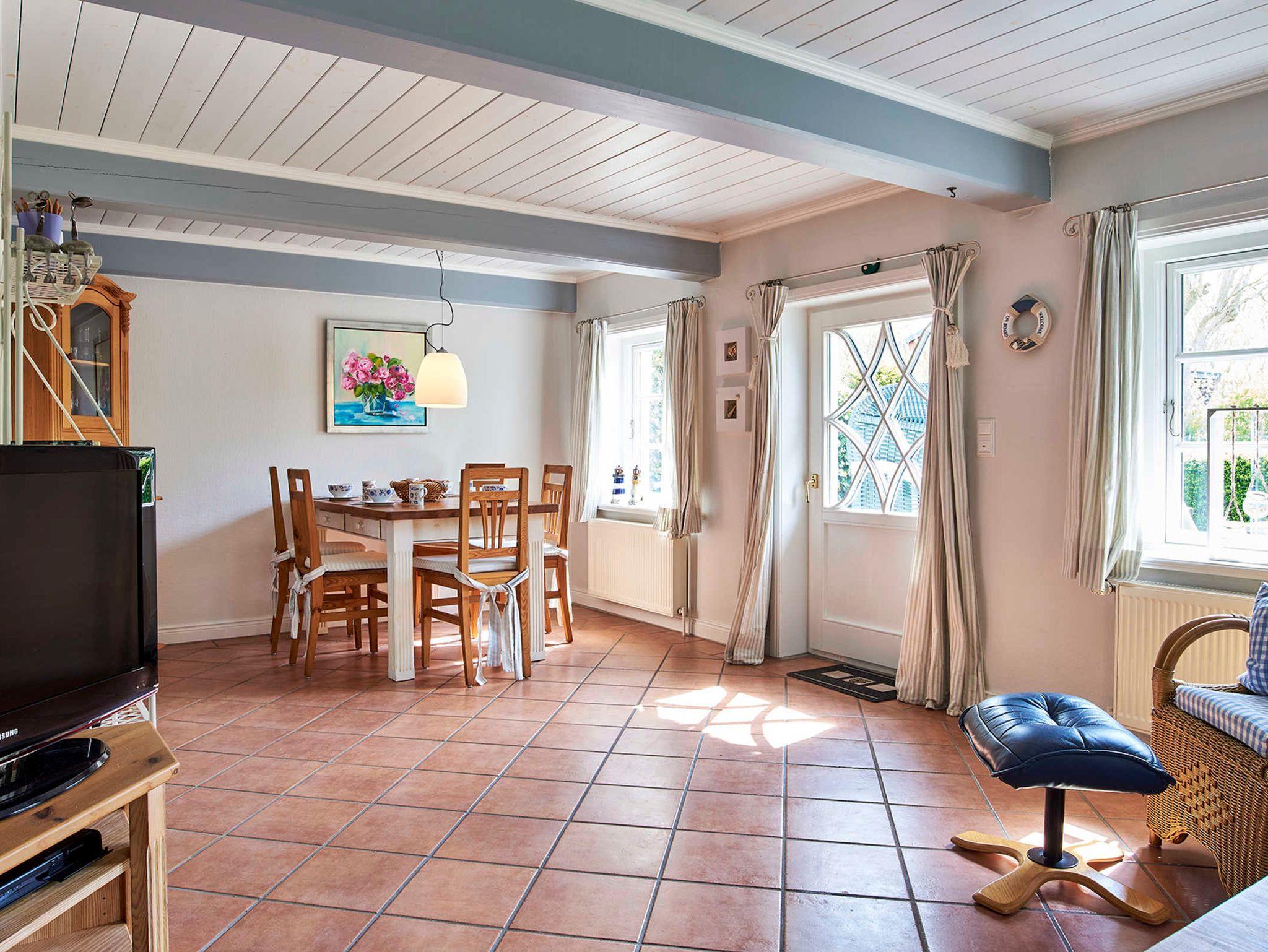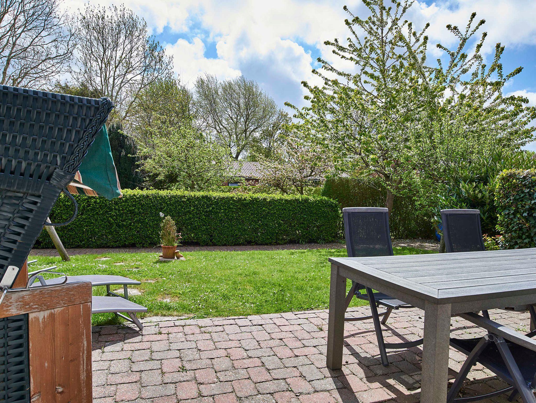 Gemütliches Reetdachhaus Inga mit Terrasse und Strandkorb in Wyk auf Föhr.