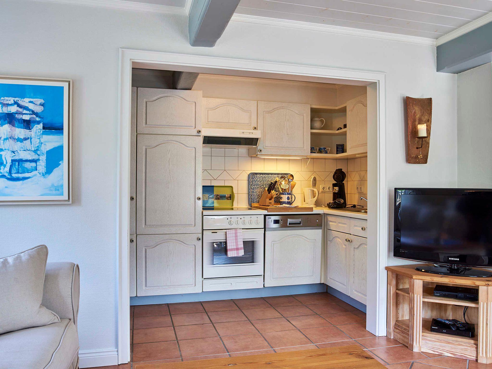 Im Erdgeschoss befindet sich ein gemütlicher Wohn-Essbereich mit angrenzender halboffener Küche, welche komplett ausgestattet ist. Sat TV und DVD sowie ein W-Lan und Festnetz Telefonanschluss ist vorhanden.