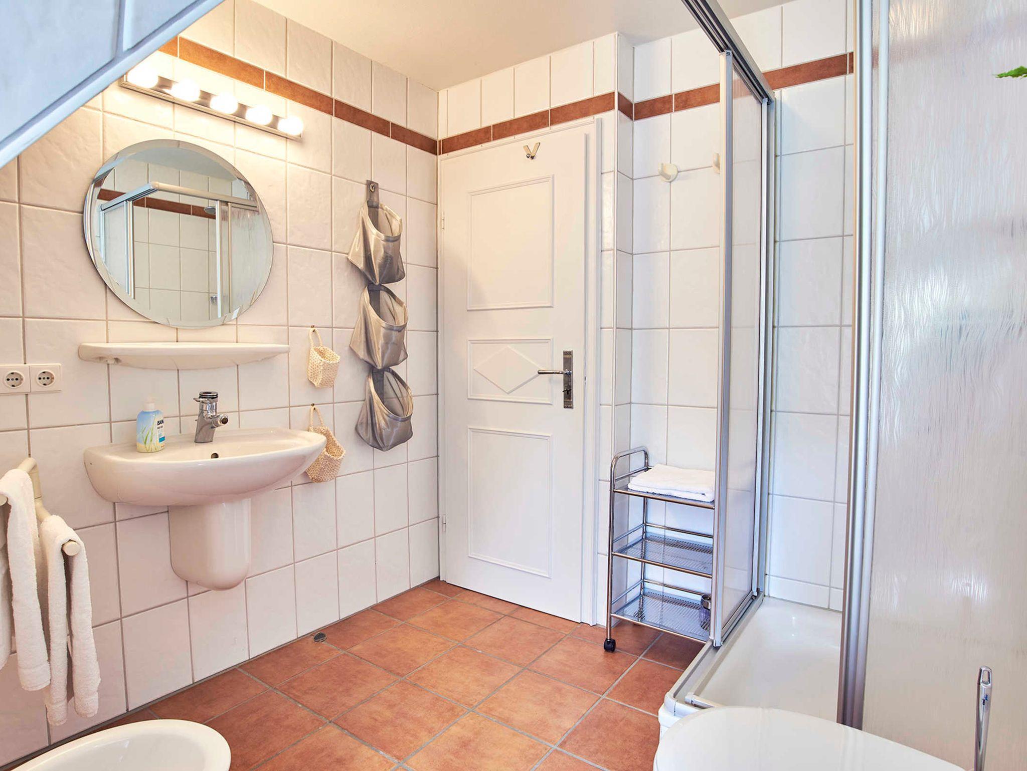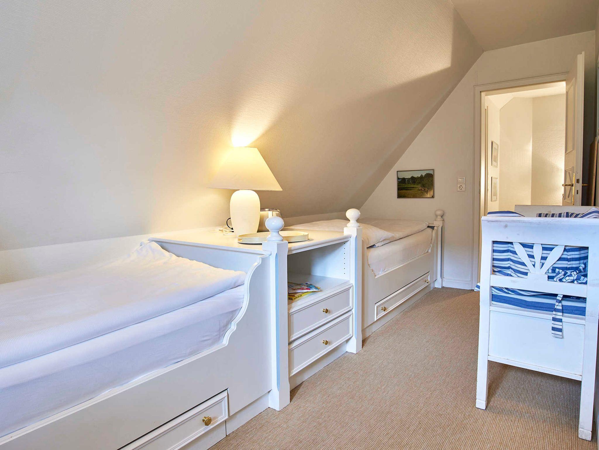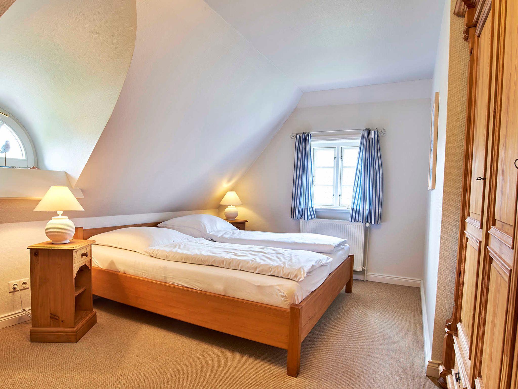 Das Obergeschoss verfügt über zwei Schlafzimmer: 1 Doppelbett im Elternschlafzimmer, 2 Einzelbetten im Stil von Alkoven im Kinderzimmer sowie eine kleine Spielgalerie im Flur laden zum Verweilen ein. Das Duschbad ist mit WC ausgestattet. Das gesamte Mobiliar ist hochwertig und sehr liebevoll zusammengestellt. Auf der Süd-Terrasse, mit bequemen Möbeln und Strandkorb, kann man die Stunden im Freien genießen. Dabei wünschen wir Ihnen bereits jetzt viel Vergnügen und hoffen, dass die Nordseeluft und das Wetter dazu beitragen!