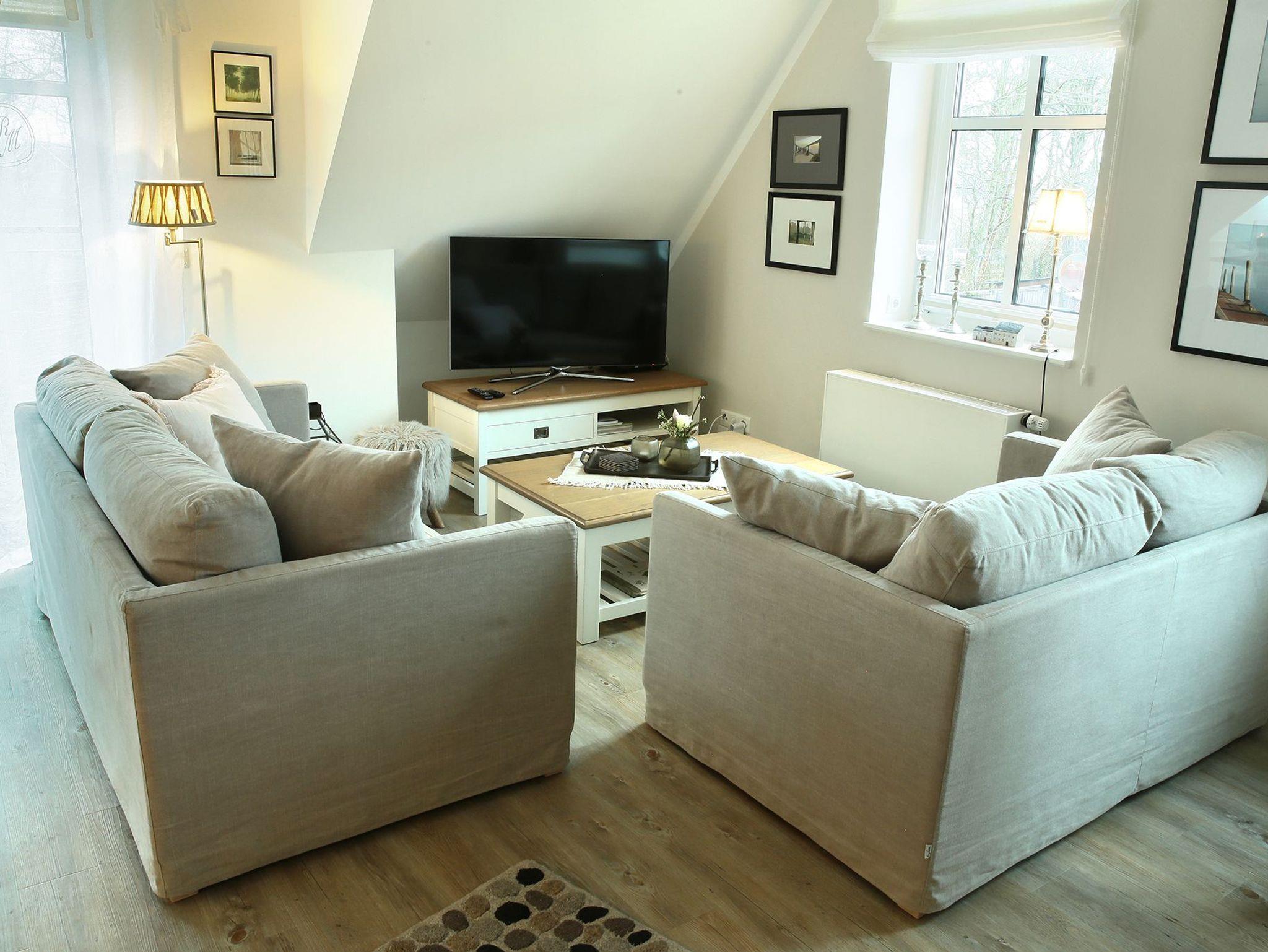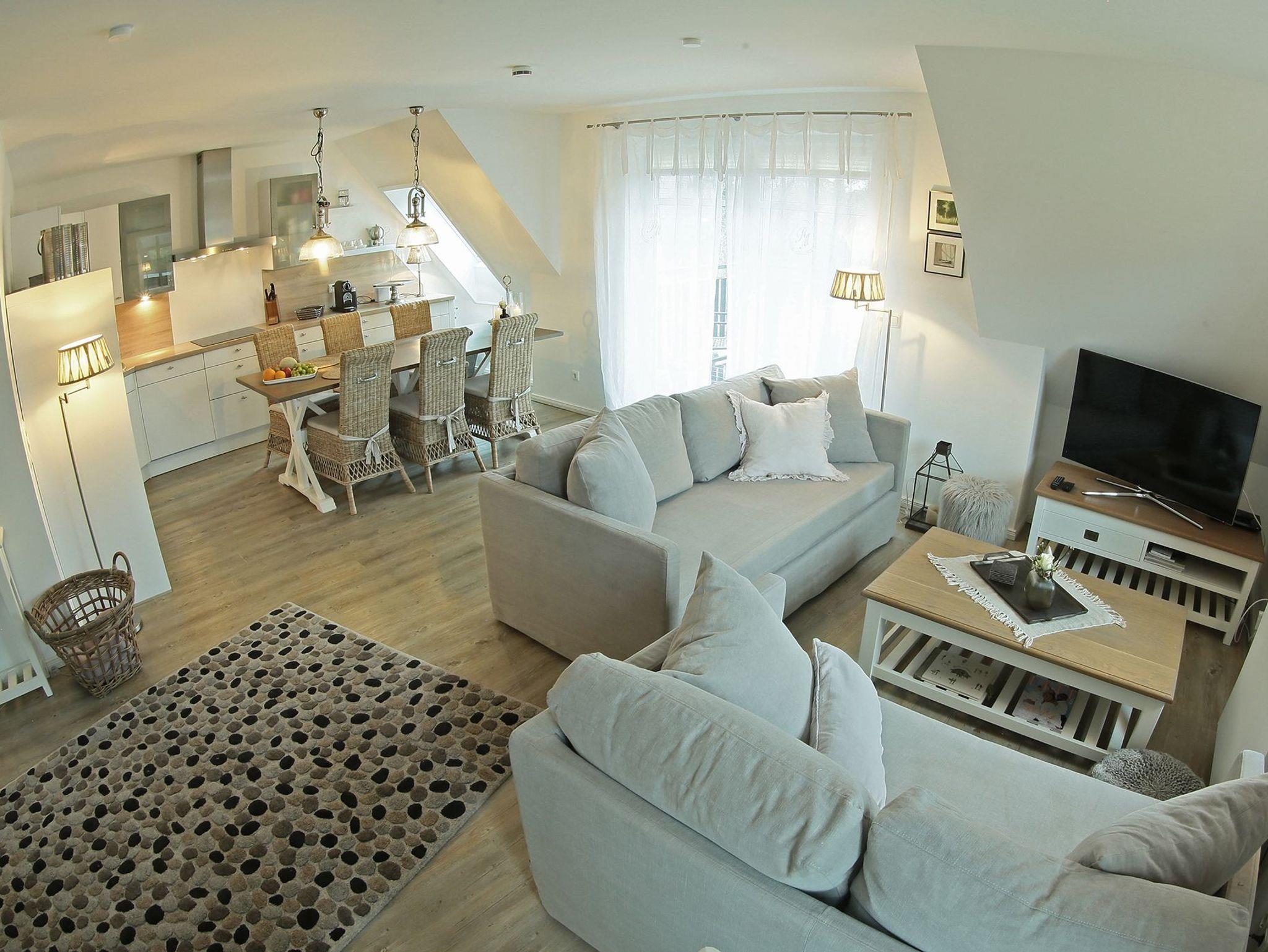 Exklusives Ferienapartment nahe Südstrand in Wyk auf Föhr mit modernem Landhausstil und großem Westbalkon.