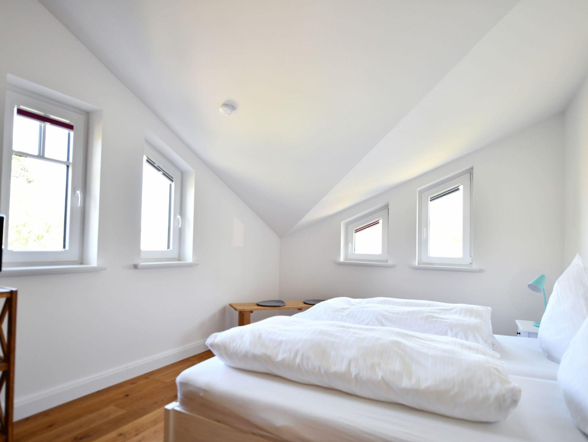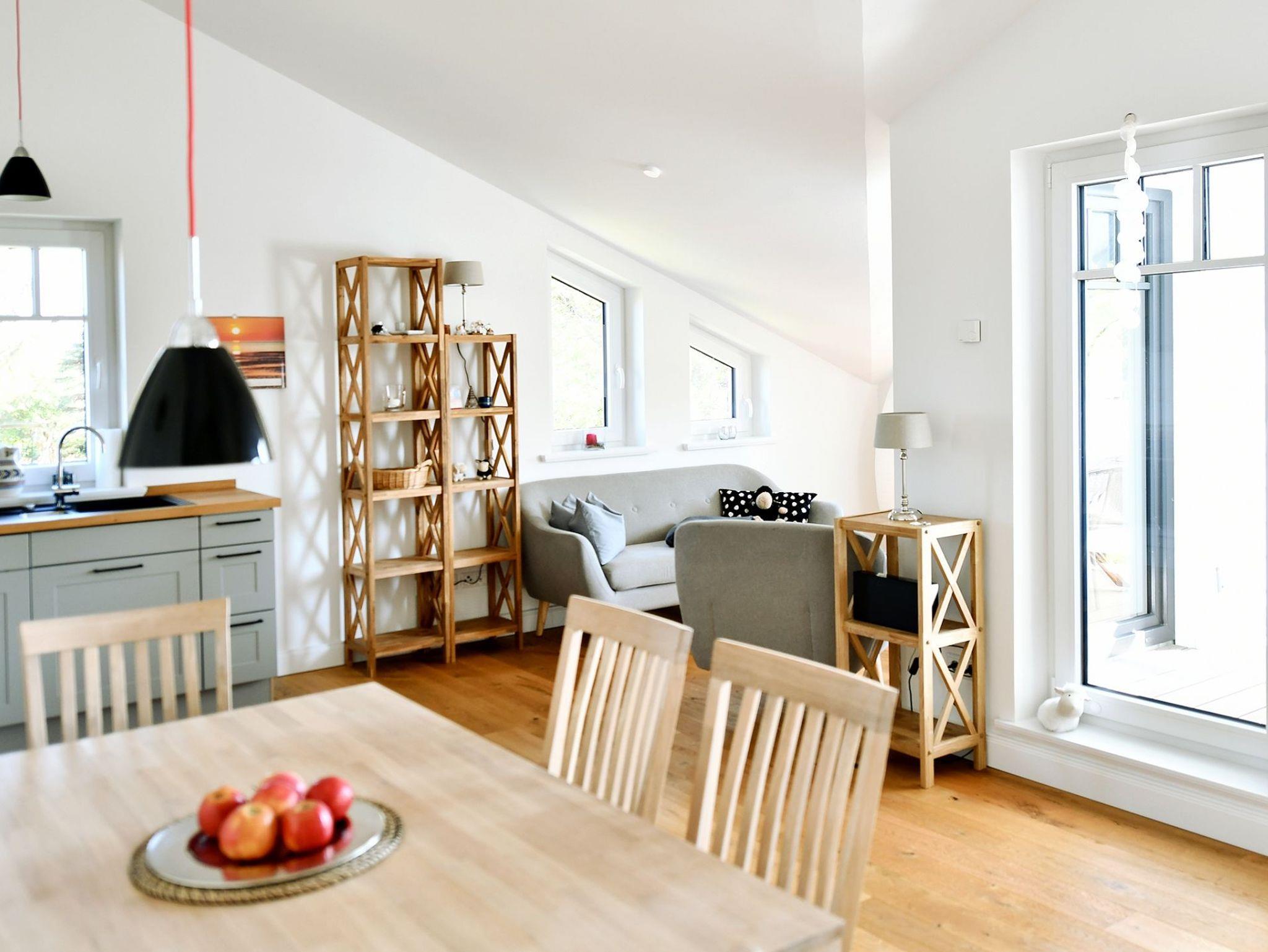 Die Ferienwohnung liegt im Dachgeschoss des Neubaus mit zwei Wohneinheiten, wobei jede ihren separaten Eingang hat.