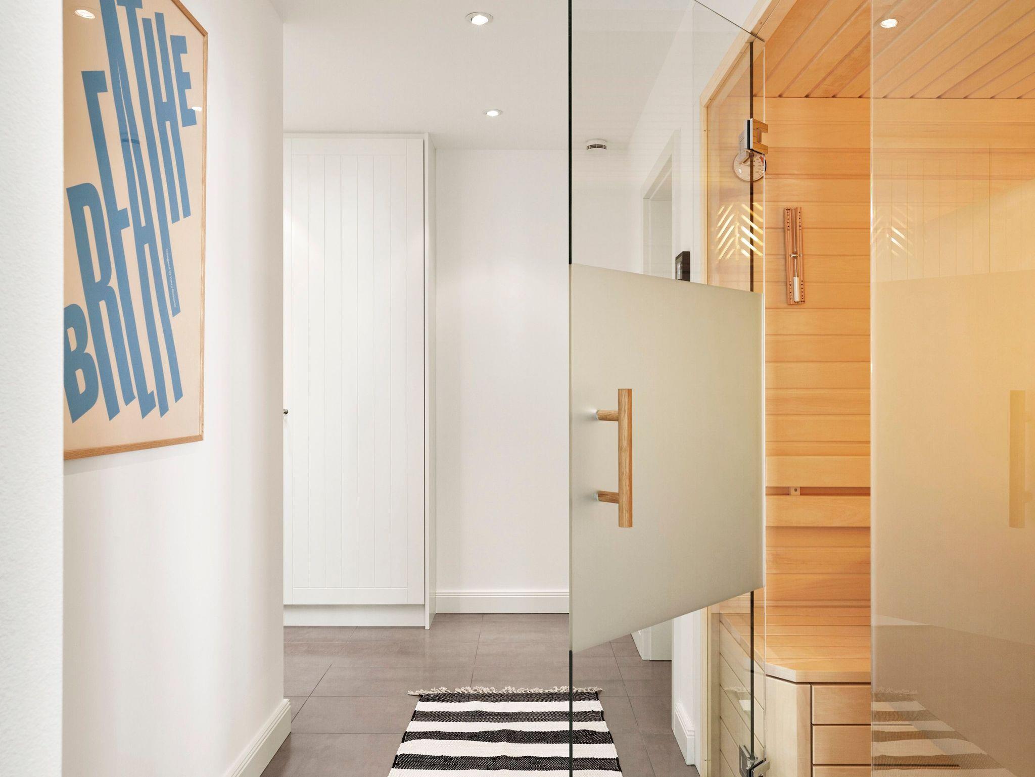 Im Untergeschoss befindet sich eine Saune mit Glasfront. Diese lädt gerade im Winter zu einem Wellnesstag ein. Ein großes Duschbad ist gleich nebenan. Zusätzlich gibt es noch ein Zimmer zum Relaxen und - falls man im Urlaub wirklich mal arbeiten muß einen Schreibplatz.