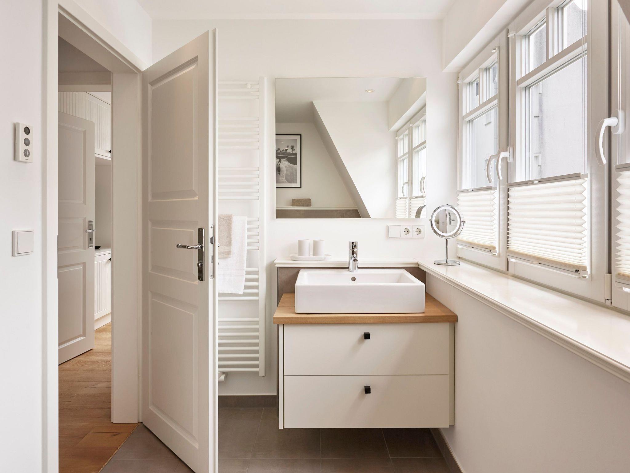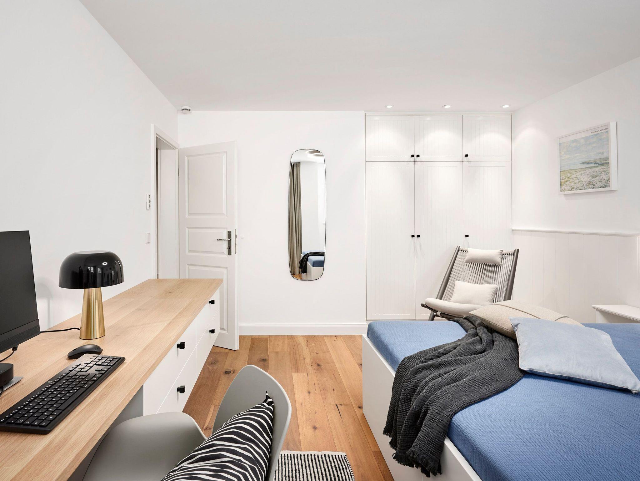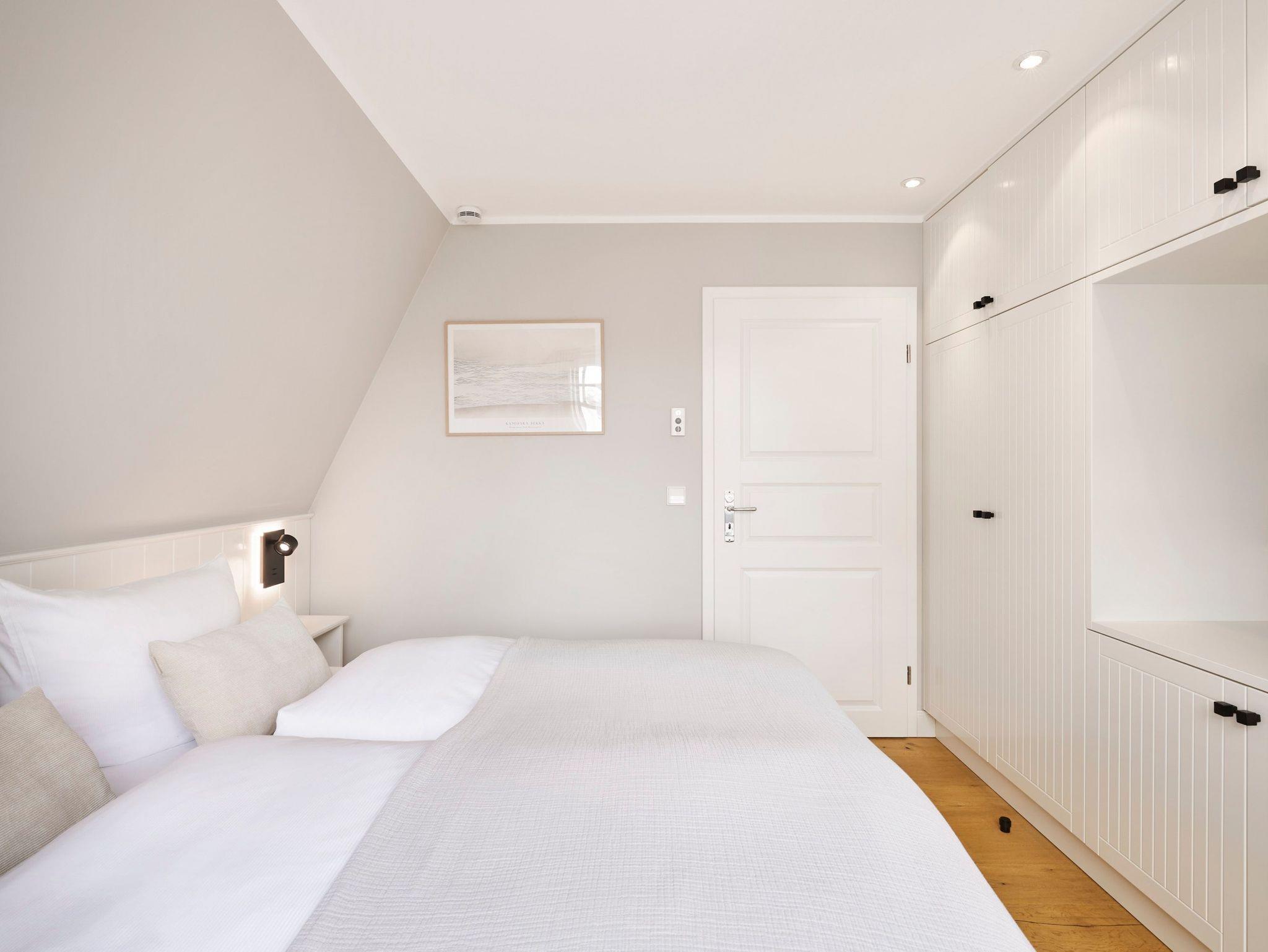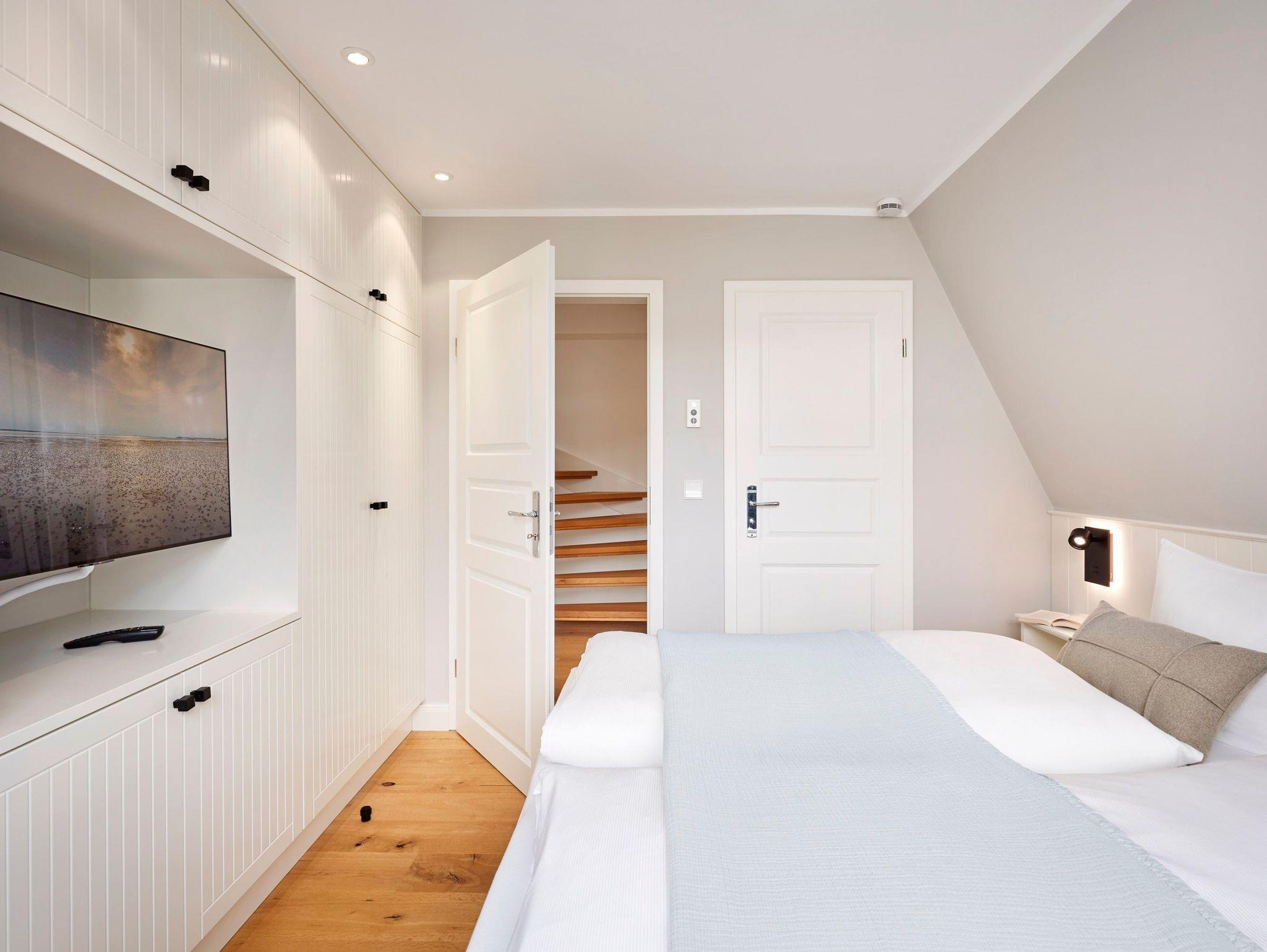 Im Sommer können Sie schon morgens Ihr Frühstück auf der Terrasse genießen und die Meeresbrise spüren. Im Obergeschoss befinden sich zwei Doppelbettschlafräume und ein Duschbad. Aus einem der Schlafräume können Sie sogar einen Blick auf die Nordsee erhaschen. An beiden Schlafzimmern gibt es einen kleinen Balkon, für den ersten Kaffee am Morgen oder ein Glas Wein am Abend.