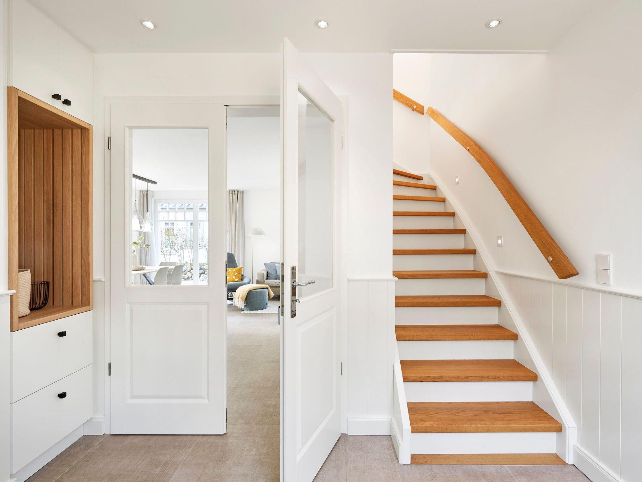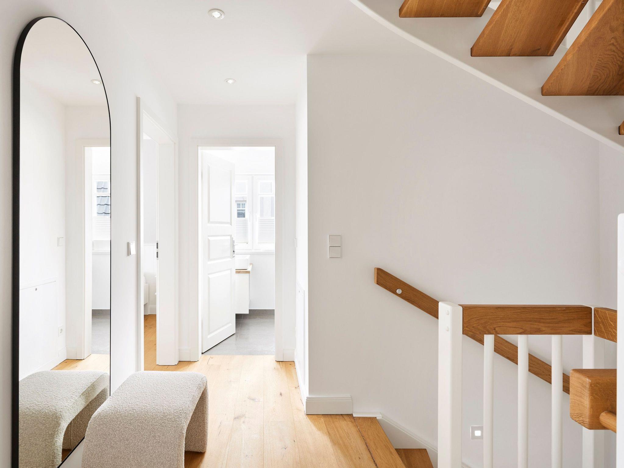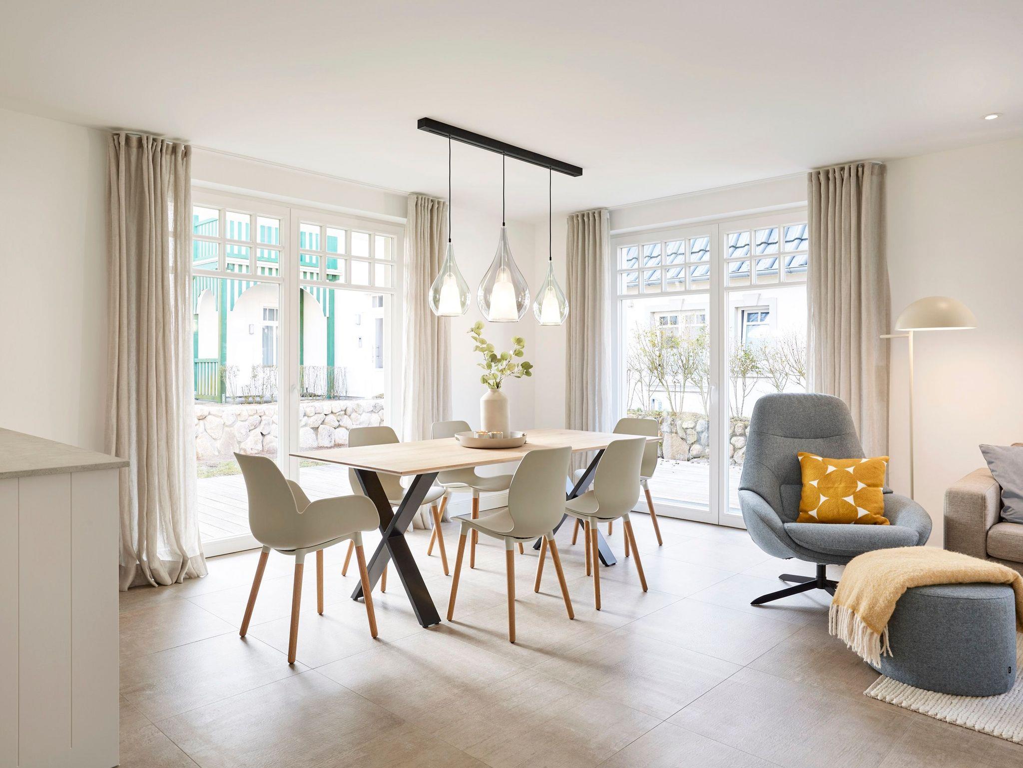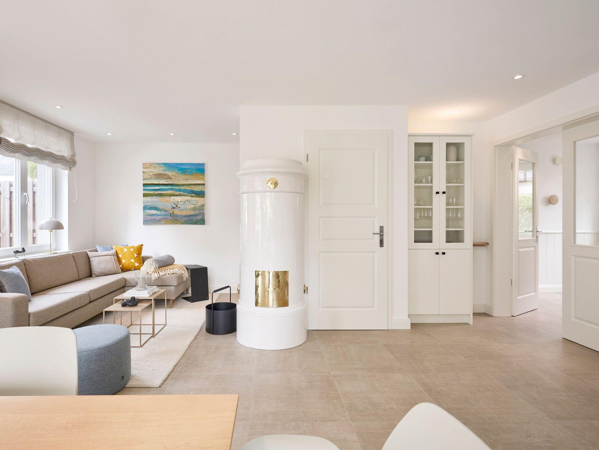 Beim Betreten empfängt Sie ein heller uns geräumiger Windfang vom dem aus Sie direkt auch in das Gäste WC im Erdgeschoss gelangen. Durch eine Glastür betreten Sie den Wohn- Essbereich sowie die offene Küche. Alles ist in sanften Farben mit moderner Gemütlichkeit und Design Highlights sehr stimmig eingerichtet. Ein Mylin Kamin im Wohnbereich bereit im Herbst eine wohlige Atmosphäre. [nbsp]