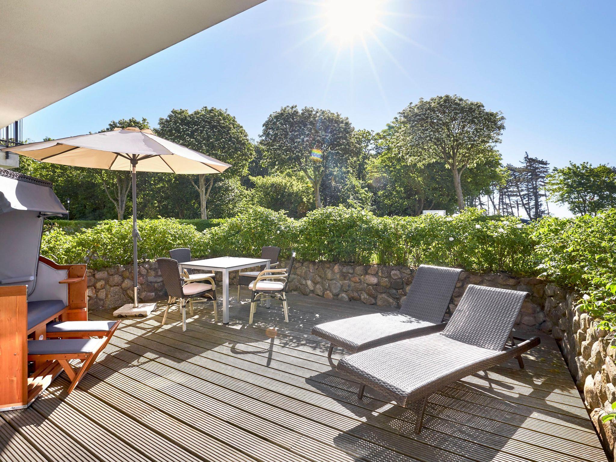 Auf einem wunderbar gelegenen 3.500 qm großem Grundstück, nur wenige Meter vom Strand entfernt, befindet sich die exklusive Wohnanlage Quartier Rothtraut. Hier haben Sie die Nordsee direkt vor der Tür. In der Wohnung 1 im Erdgeschoss werden Sie einen unvergesslichen Urlaub erleben. Zwei Terrassen laden zum Urlaub im Freien ein. Genießen Sie die Sonne schon zum Frühstück! Die Küche mit Kochinsel ist hochmodern eingerichtet, und der Weinkühlschrank bietet Platz für Ihre eigenen Weine. Im Untergeschoss steht Ihnen ein eigener Wellnessbereich mit Sauna und Duschbad zur Verfügung. Genießen Sie zu jeder Jahreszeit einen traumhaften Urlaub auf der Nordseeinsel Föhr.