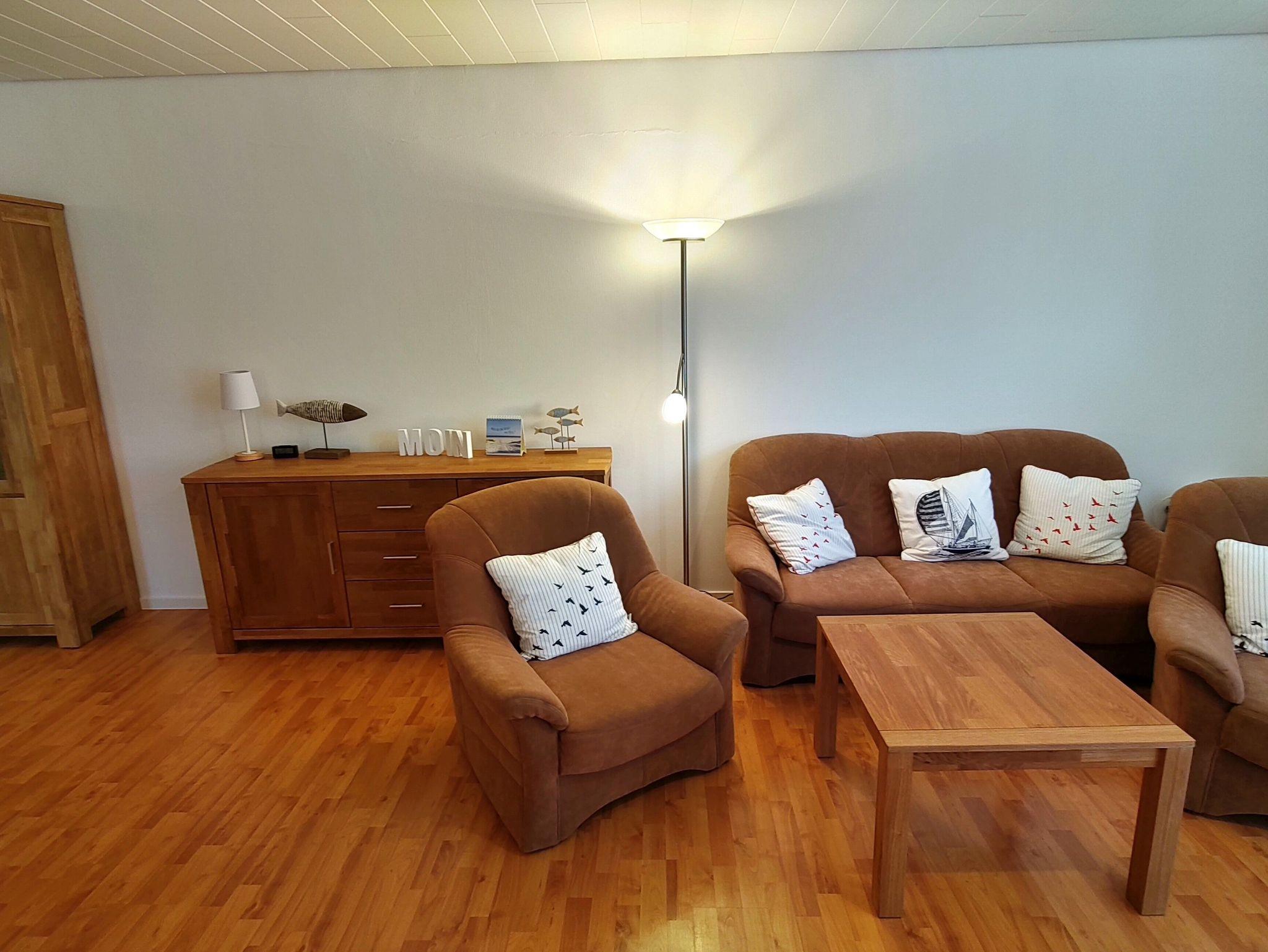 Die Wohnung hat einen großen Balkon, von dem Sie einen herrlichen seitlichen Blick aufs Meer, auf die Halligen und auf den Sandwall haben. Ein großer kombinierter Wohnschlafraum mit zwei Schrankbetten, ein separates Schlafzimmer, eine Küche und ein Duschbad bietet Platz für bis zu vier Personen. Geschirrspüler, Mikrowelle, Backofen, Toaster, Wasserkocher und Kaffeemaschine sind in der Küche vorhanden.