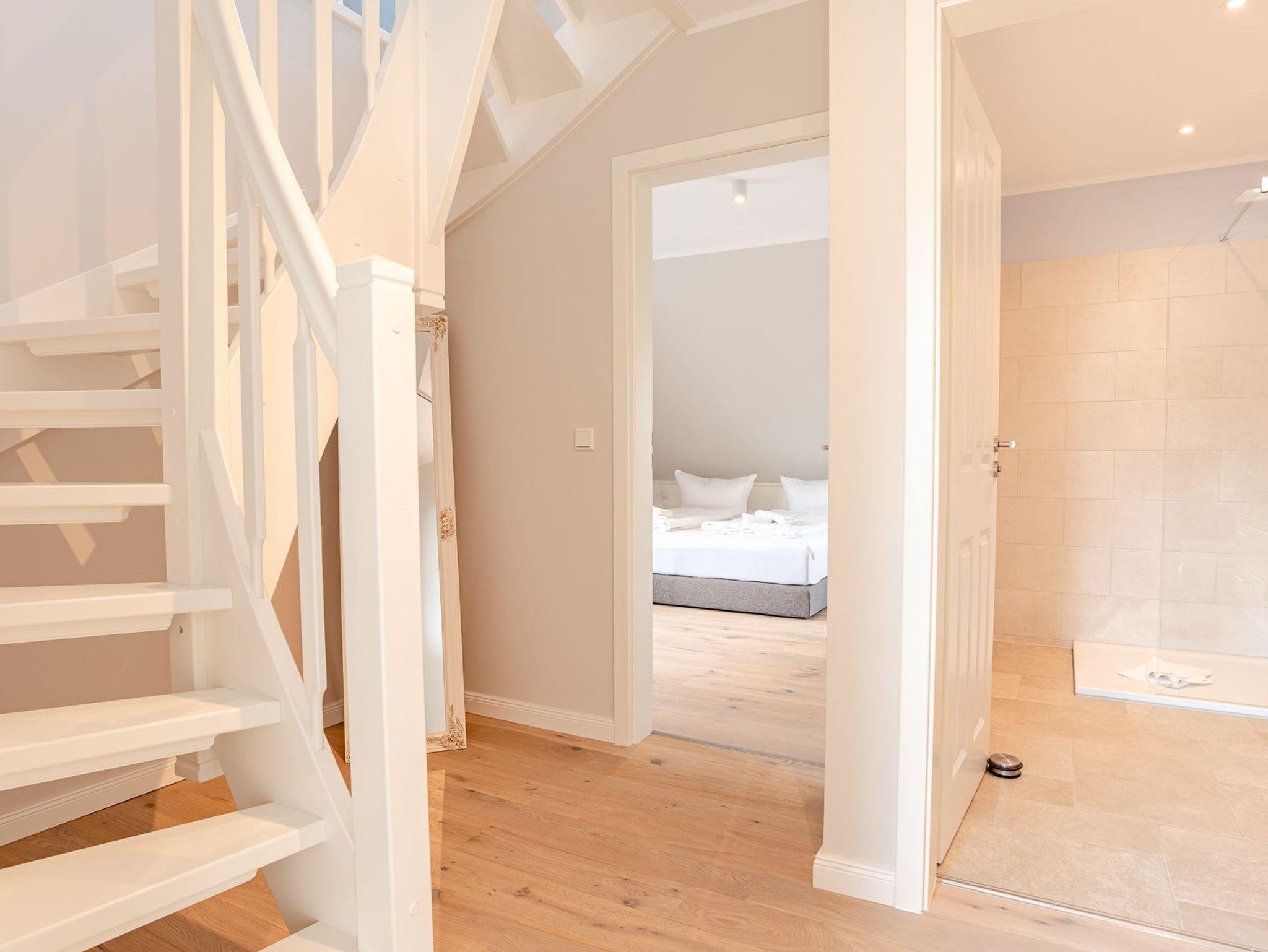 Die Unterkunft verteilt sich über EG und 1.OG. Es gibt 3 Schlafzimmer mit Doppelbett (1 x im EG und 2 x im OG).