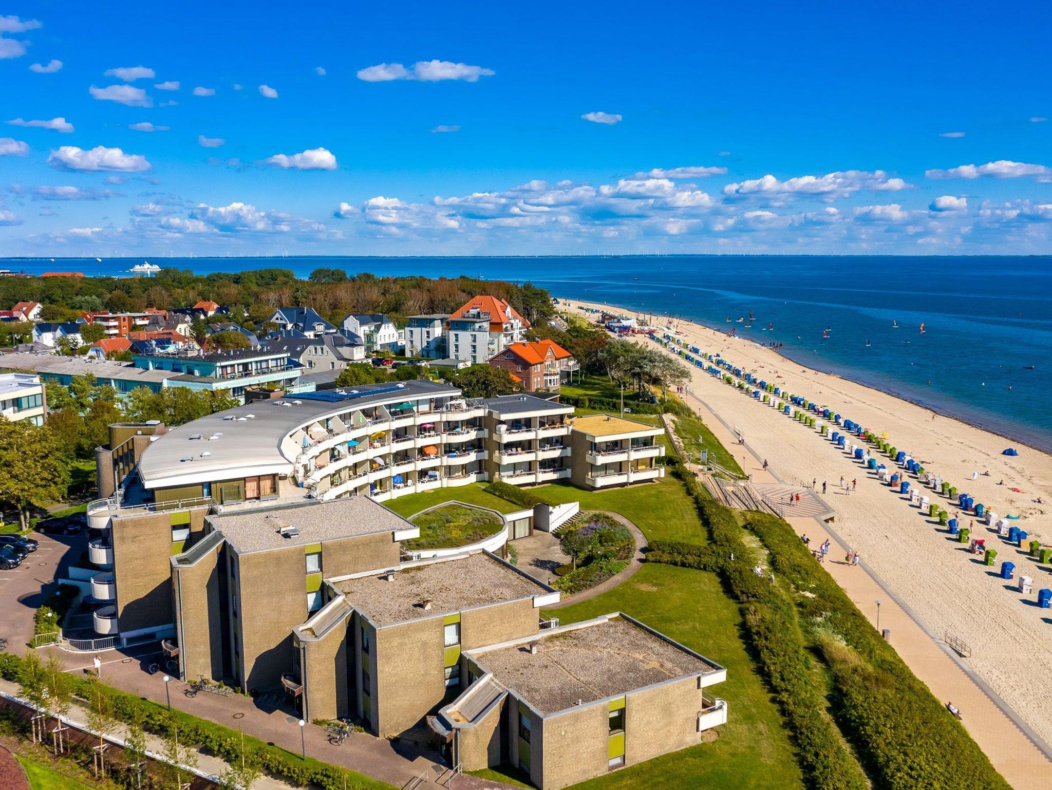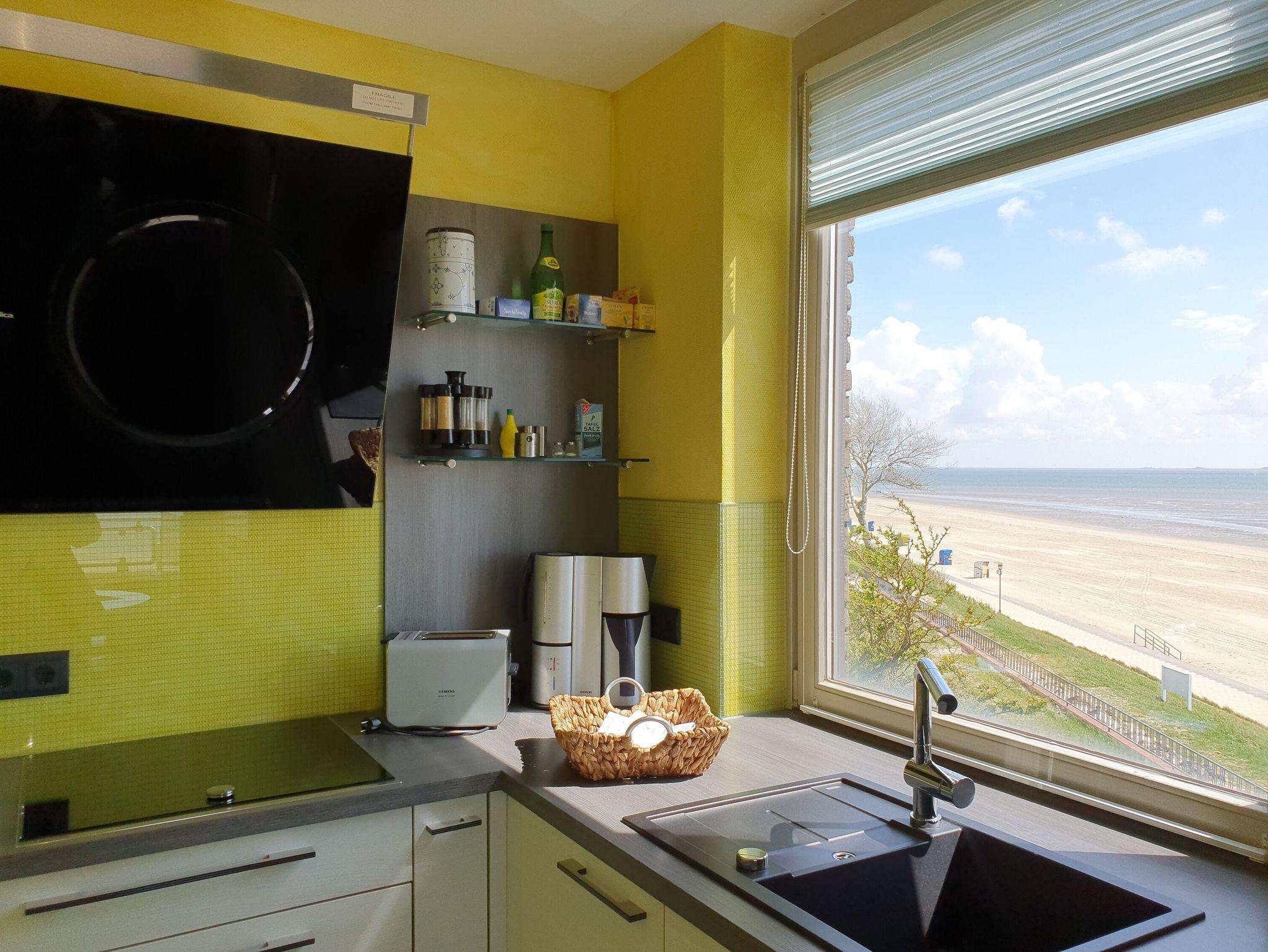 Die Ferienwohnung Bi de Wyk, Whg. A11 - Amrumblick in Wyk auf Föhr bietet Meerblick, Balkon und Zugang zu Schwimmbad und Sauna.