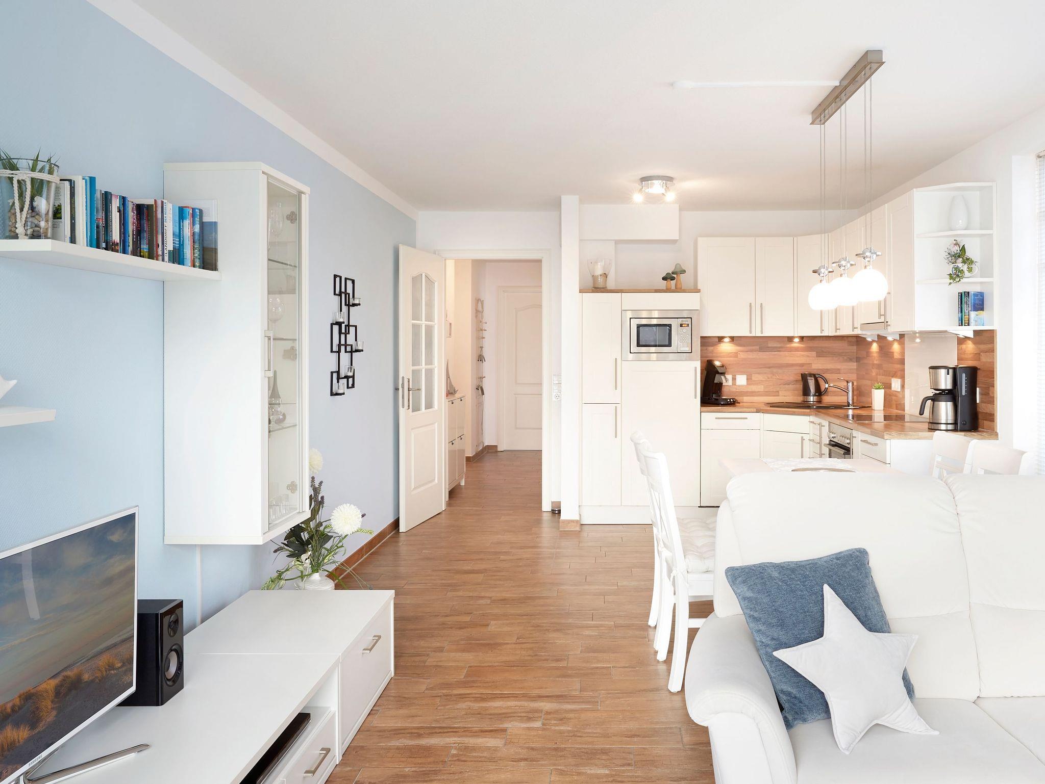 Wir begrüßen Sie im Schloß am Meer, der exklusiven Wohnanlage direkt am Wyker-Südstrand gelegen. Ihre Wohnung liegt im 2.Obergeschoss. Hier haben Sie einen Süd-Balkon ganz für sich allein und einen Blick auf die Nordsee und die Halligen. Dieser einzigartige Panoramablick ist unvergesslich. In nur wenigen Schritten befinden Sie sich auf der Promenade, die Sie ins Herz von Wyk führt. Hier laden Geschäfte zum Bummeln ein, Cafes und Restaurants verwöhnen Sie mit kulinarischen Köstlichkeiten.