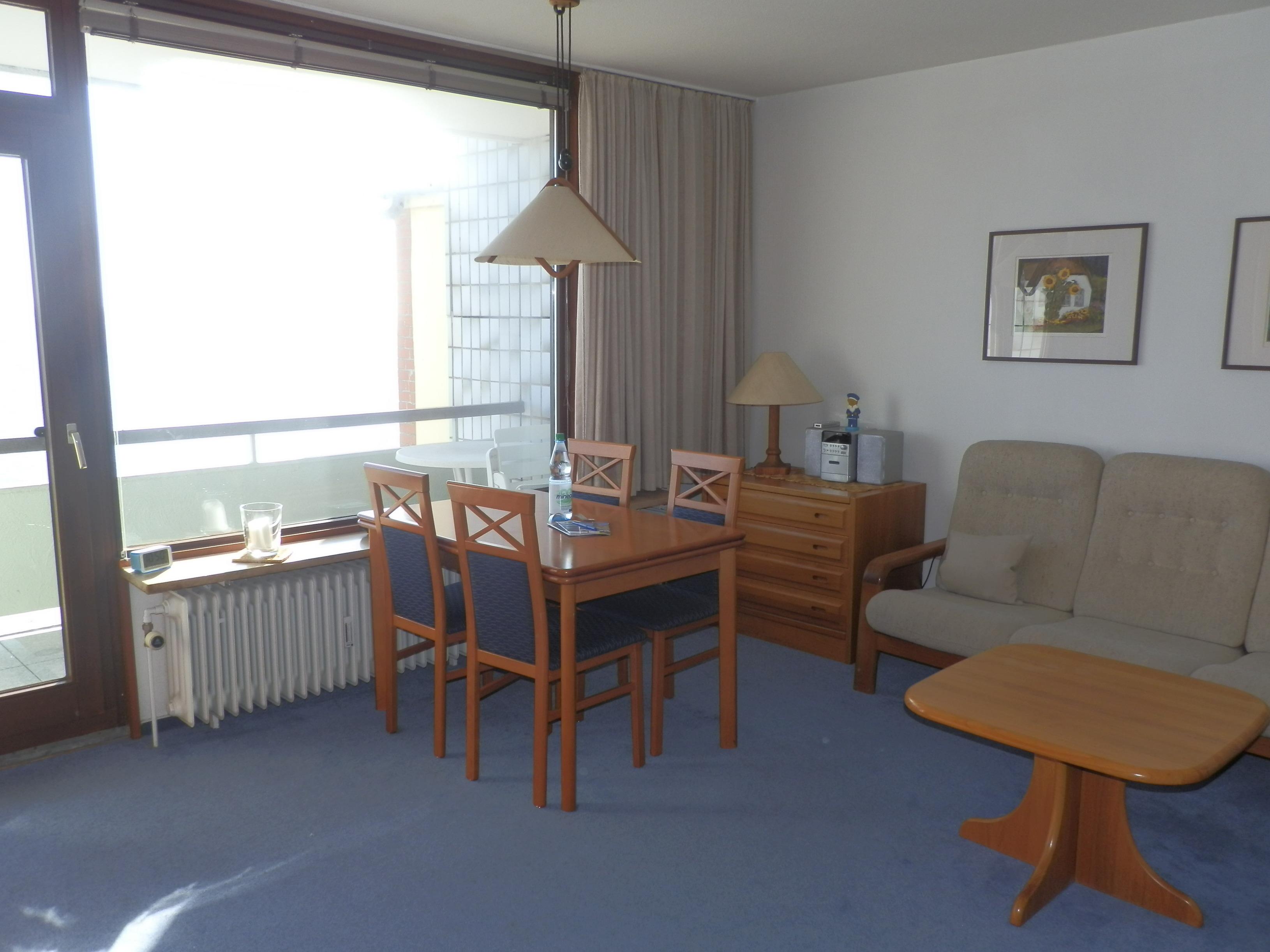 Die Wohnung bietet Platz für 2 bis 4 Personen und ist ideal für Paare oder kleine Familien. Ein separates Schlafzimmer mit zwei Einzelbetten sowie zwei Schrankbetten im Wohnbereich sorgen für flexible Schlafmöglichkeiten. Das Duschbad und die kompakte Küchenzeile sind zweckmäßig, modern und komfortabel ausgestattet – ideal für einen unkomplizierten Ferienalltag.