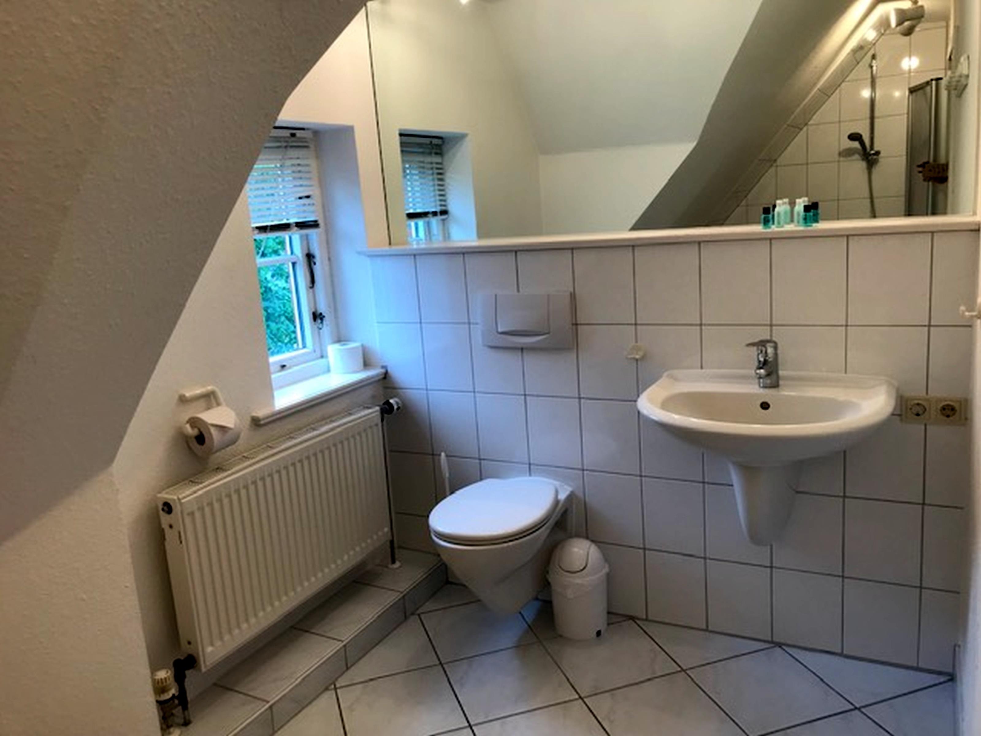 Ihr Hausteil im Reihenendhaus ist eine kinderfreundliche und allergikergeeignete Wohnung über drei Etagen. Die Wohnung verfügt im Erdgeschoß über ein Wohnzimmer mit Essbereich und eine Küche mit allem Komfort. Im Obergeschoss befindet sich ein Schlafzimmer und ein Badezimmer mit WC. Im Souterrain befindet sich neben dem 2. Schlafzimmer ein Duschbad mit WC. Ein Pkw-Stellplatz gehört zum Haus. In der Anlage befindet sich ein Spielbereich für Ihre Kinder. In unmittelbarer Nachbarschaft befindet sich ein Bäcker, ein Fahrradverleih und eine Tennisanlage. Der Wyker Südstrand ist nur 10 Gehminuten entfernt. Die Wyker Innenstadt erreichen Sie von hier aus in 15 Gehminuten. Wyk ist eine quirlige kleine Stadt im Südosten der Insel Föhr.Die Stadt bietet ihren Gästen alle Möglichkeiten für einen erholsamen und abwechslungsreichen Urlaub. Die kleinen Gäste sollen natürlich nicht zu kurz kommen. Deswegen gibt es viele verschiedene Angebote. Neben einem Wellenbad bietet die Insel auch Minigolfplätze sowie mehrere Spielplätze.