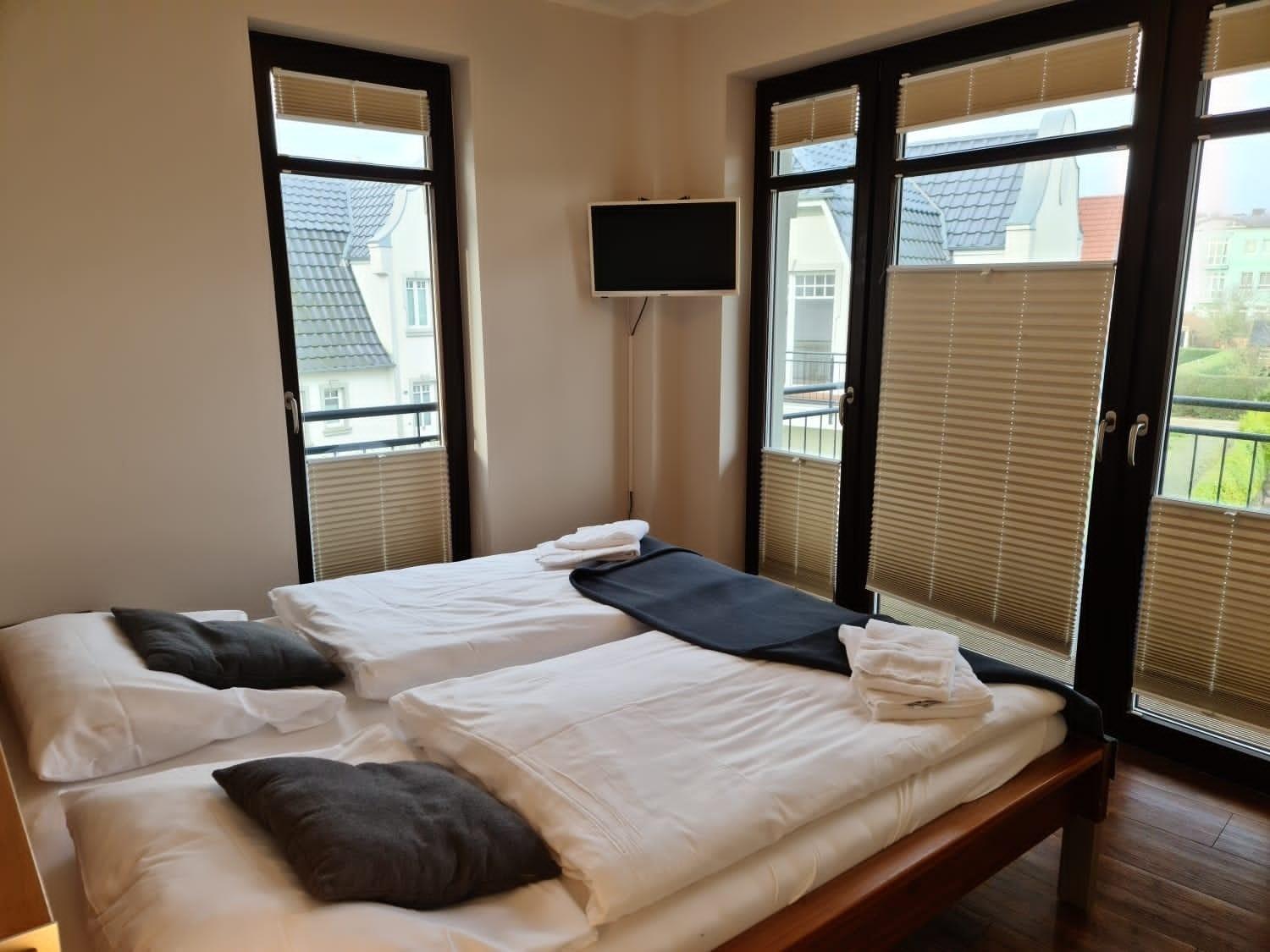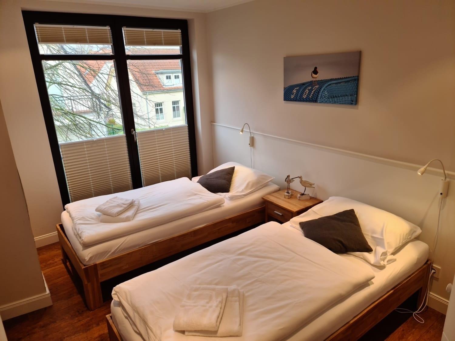 Die exklusiv neu ausgestattete und helle Wohnung verfügt über 2 Schlafzimmer, 1 Wohnzimmer mit integrierter moderner Küchenzeile, sowie ein Duschbad. Ein W-LAN Anschluß steht Ihnen kostenfrei zur Verfügung.