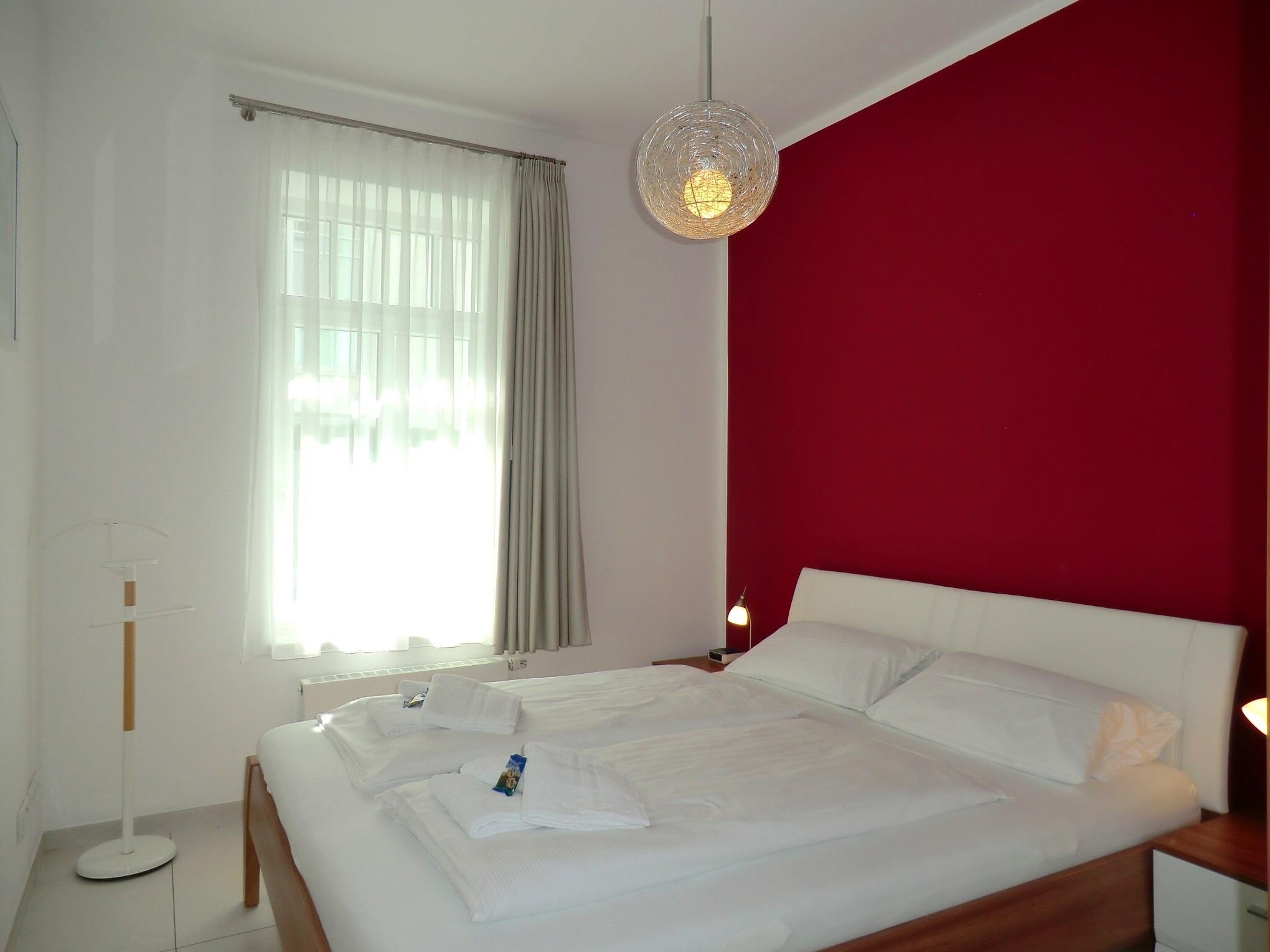 Die exklusiv neu ausgestattete und helle Wohnung verfügt über 2 Schlafzimmer (1 x mit Doppelbett / 1 x mit exklusiver Schlafcouch), 1 Wohnzimmer mit integrierter moderner Küchenzeile, sowie ein Duschbad. Ein W-LAN Anschluß steht Ihnen kostenfrei zur Verfügung.