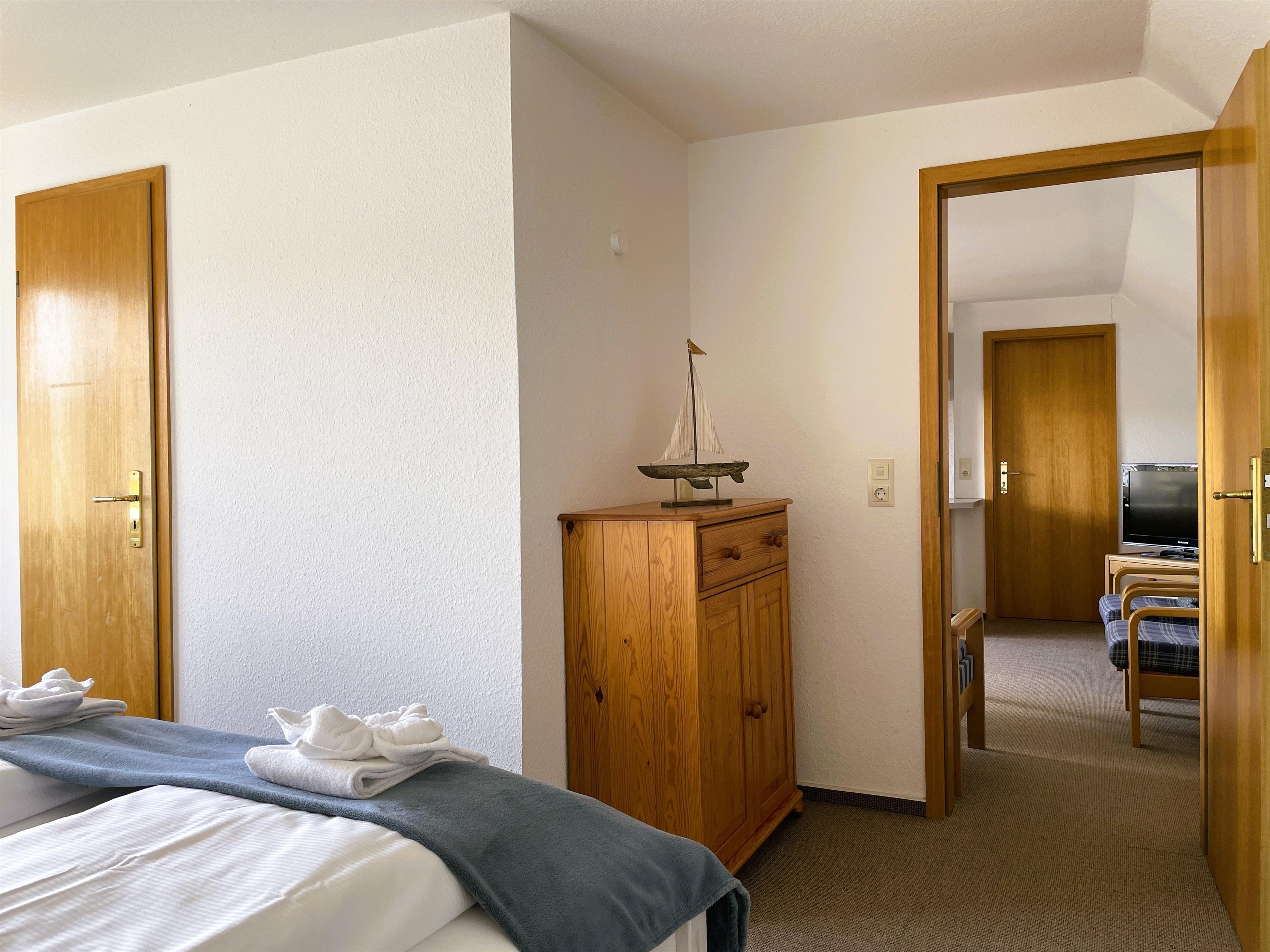 Die Wohnung Seeschwalbe für ein bis drei Personen befindet sich in einen Seitenstraße in der Fußgängerzone in der 1. Etage.