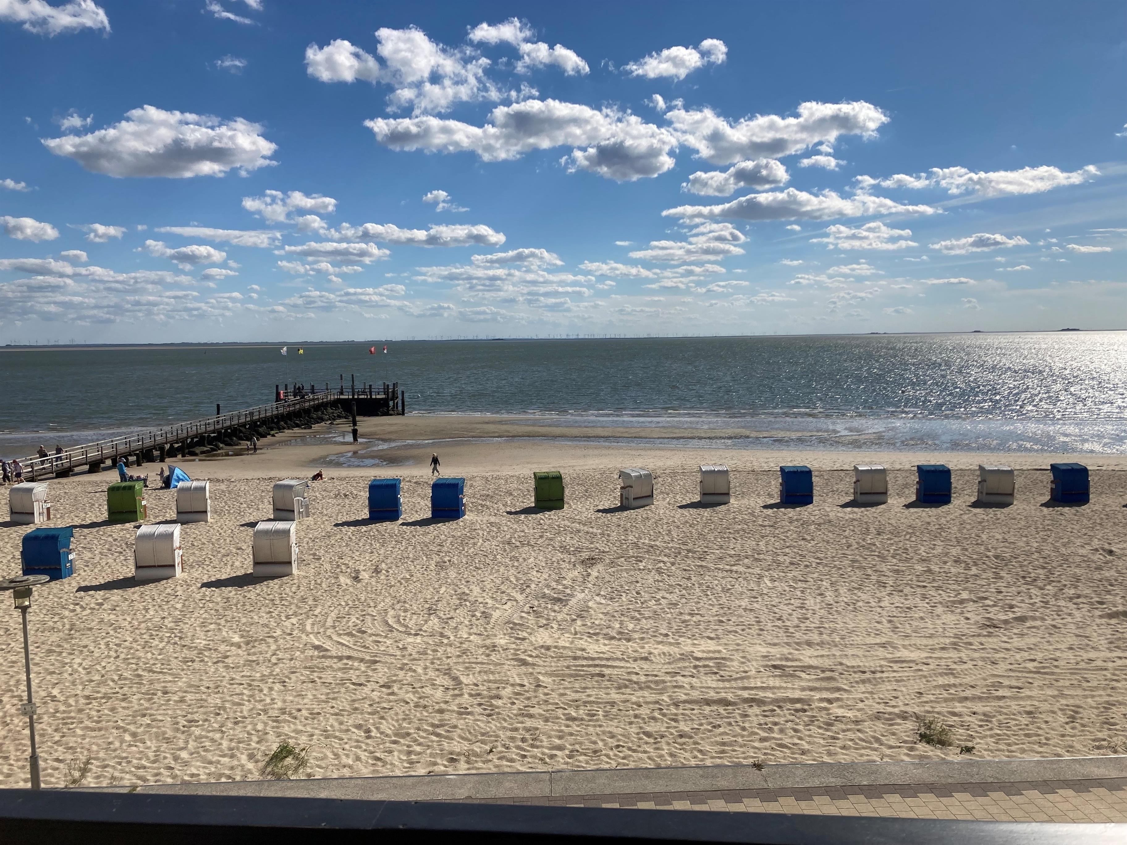Unsere Irma 12 mit ca. 42qm ist eine liebevoll eingerichtete Ferienwohnung im ersten Stock des zentral gelegenen Hauses Irma und ist sowohl per Treppe als auch mit dem Aufzug ( 4 Stufen bis zum Aufzug) erreichbar. Fühlen Sie sich sogleich Willkommen in unserem gepflegten Domizil, welches traumhafte Urlaubstage für 2 bis max. 4 Personen verspricht. Dank der großzügigen Fensterfront, welche sich über die gesamte Länge des Wohnbereiches erstreckt, ist das Wohnzimmer lichtdurchflutet und bietet Ihnen einen traumhaften Blick auf den Strand, das Meer und die Halligen. Natürlich verfügt die Wohnung über einen schönen Essplatz direkt am Fenster und eine gemütliche Couch sowie Wlan, eine Stereoanlage, einen Flachbild- TV und einen DVD- Player. Außerdem befinden sich hier 2 Schrankbetten (90x200 cm), die zu erholsamen Nächten einladen. Die offene Küche mit Ceranfeldherd, einer Mikrowelle mit Grillfunktion und einem Geschirrspüler schließt direkt an den Wohnbereich an und natürlich sind eine Wasserkocher, Toaster, eine Senseo Duo (Kaffeemaschine, die für Pads und Filterkaffee genutzt werden kann) ausreichend Geschirr vorhanden. Vom Flur aus gelangen Sie in das kleine, hellgeflieste Bad mit Dusche und Handtuchheizkörper sowie in das Schlafzimmer mit zwei weißen, hochwertigen Einzelbetten (90 x 190 cm) mit verstellbarem Lattenrosten und einem geräumigen weißen Kleiderschrank im neuen Glanz erstrahlt. Im Keller des Hauses stehen Waschmaschine und Trockner gegen eine geringe Gebühr zur gemeinschaftlichen Nutzung zur Verfügung. Vom Keller aus gibt es auch einen direkten Zugang zum Strand (im Frühling, Sommer und Herbst.) Erleben Sie den Strand, das Schauspiel von Ebbe und Flut sowie die frische Nordseeluft hautnah vom überdachten Balkon aus und genießen Sie eine phänomenale Aussicht bereits beim Morgenkaffee..