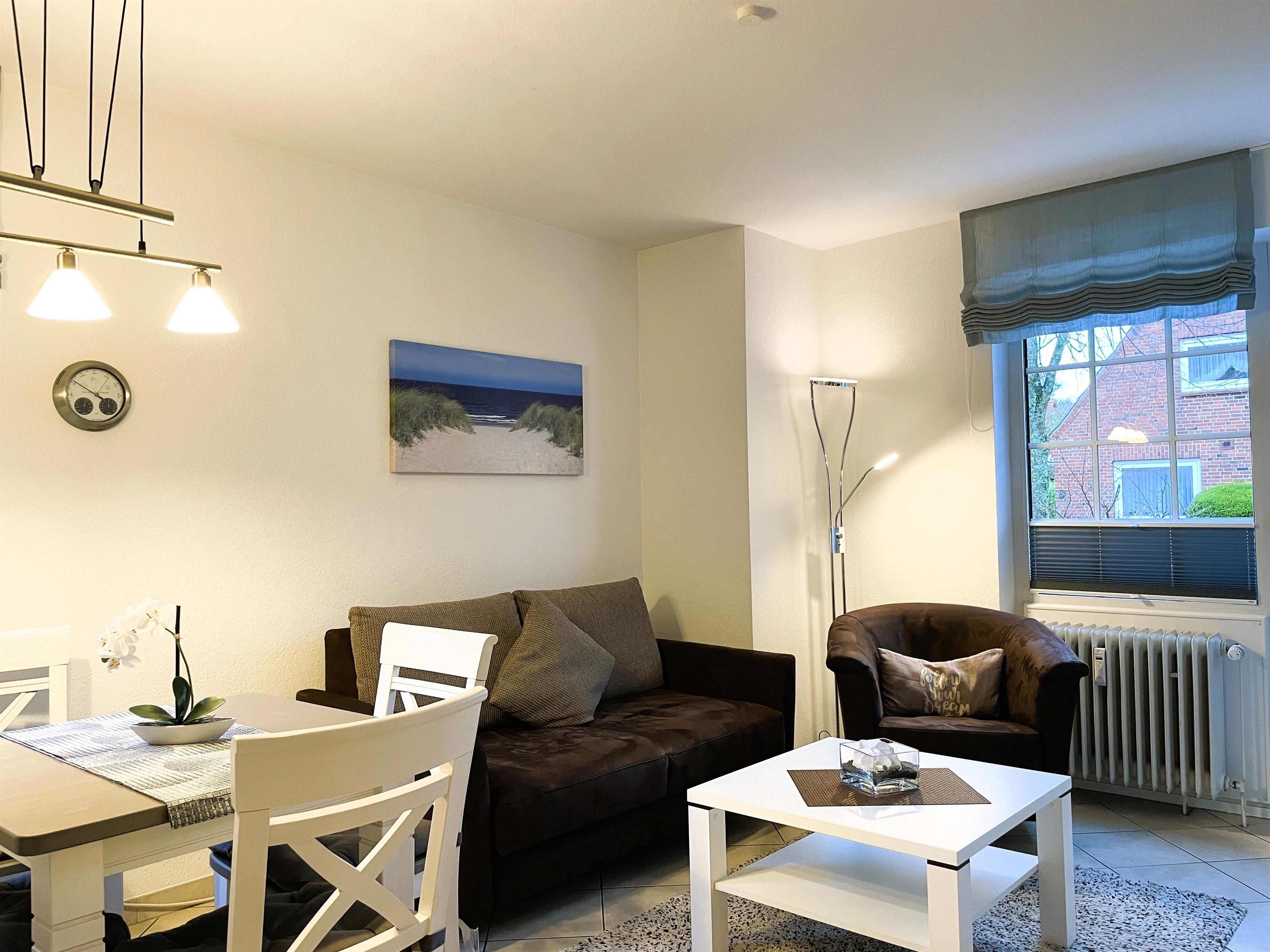 Charmante 38m² Ferienwohnung in Wyk auf Föhr mit Balkon, WLAN und Strandkorb am Strand für einen erholsamen Urlaub zu zweit.
