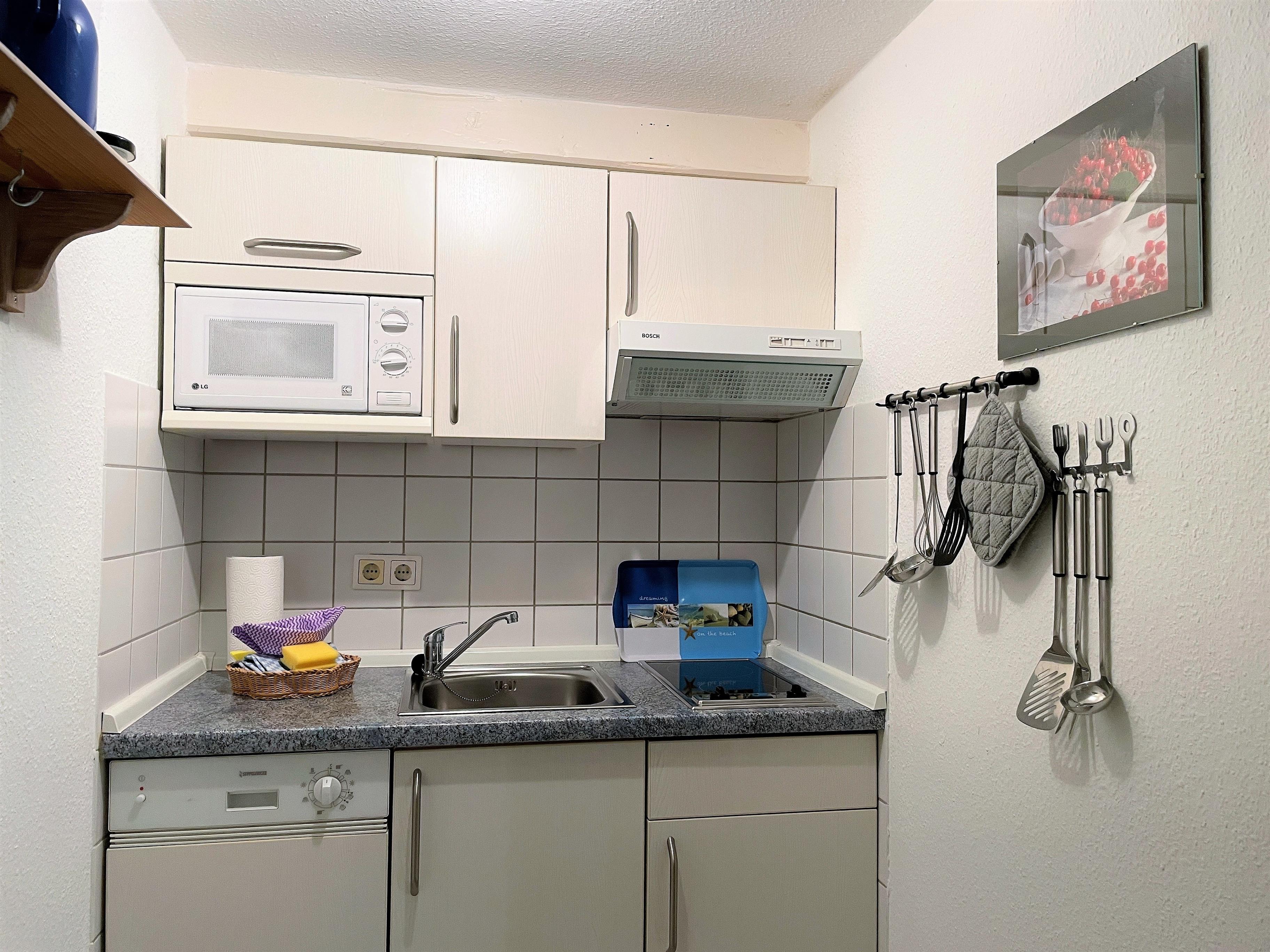 Die kleine, gemütliche Ferienwohnung Nordwind ist ein 1-Raum-Appartement mit Küchennische und einem Wohnschlafraum. Die Couch kann ausgezogen werden (Liegefläche 170cm x 195 cm) und der Essplatz am Fenster lädt zu gemütlichen Stunden ein. Das kleine Duschbad ist funktional und mit einem Fenster ausgestattet. Die Küche mit Mikrowelle, Ceranfeldherd mit zwei Kochplatten (ohne Backofen) und Geschirrspüler ist gut ausgestattet. Die moderne, liebevoll in Stil und Farben abgestimmte Einrichtung verleiht der Wohnung Ihren Charme und lässt Sie herrliche Urlaubstage erleben. Die Bäckerei, das Kino, gemütliche Cafés und Restaurants, der Edeka-Markt und viele kleine und größere Geschäfte befinden sich in unmittelbarer Umgebung genauso wie der Strand und das Meer natürlich..