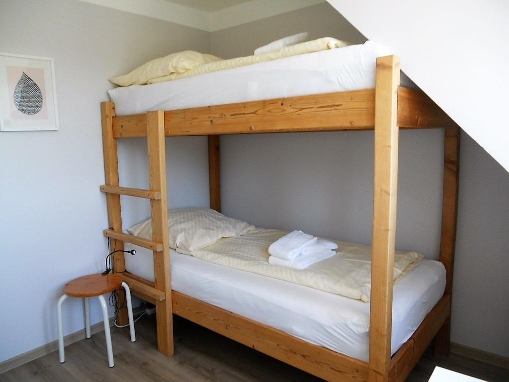 In der Helgoländer Straße 9 befindet sich in ruhiger Lage unweit des Wyker Stadtwaldes mit dem Abenteuerspielplatz Löwenhöhle das Haus Stünkel mit seinen 2 Haushälften. Beide Domizile sind jeweils für bis zu 6 Personen ausgerichtet und hochwertig ausgestattet. Der Carport befindet sich direkt vor dem Haus und die Terrassen mit Gartenmöbeln und Strandkorb (von ca. April bis Oktober) befinden sich auf der Rückseite des Hauses und sind jeweils vom Wonraum aus zu betreten. Der gemeinschaftliche Garten ist einzezäunt, so dass Sie Ihre Kinder unbesorgt draußen spielen lassen können. Es fehlt an Nichts und kurze Wege zum Strand, Abenteuerspielplatz und Einkauf runden dieses schöne Objekt ab. In unserer allergikerfreundlichen Haushälfte Stünkel rechts (ca.92 m) können Sie herrliche Urlaubstage verbringen. Das Haus wurde für sechs Personen konzipiert. Beim Bau wurde auf ökologische Kriterien besonders geachtet, Holz, Kork und Marmor bilden den Fußbodenbelag. Das helle Erdgeschoss unterteilt sich in einer vollausgestatteten Küche mit Ceranfeldherd, Backofen, Geschirrspüler und vielem mehr. Hier angrenzend befindet sich die gemütliche Essgruppe und dem hübschen Wohnraum mit WLAN, Flachbild-TV, Blueray- Player und Kamin. Von hier gelangen Sie auf die schöne, gepflegte Südterasse mit Gartenmöbeln und Strandkorb ( ca. von April bis Oktober) und gemeinschaftlichem Garten. Des Weiteren befindet sich im Erdgeschoss ein hellgefliestes Duschbad. Über eine breite Treppe gelangen Sie in das Obergeschoss mit einem Badezimmer mit Dusche, einer Waschmaschine sowie einem Trockner, die Ihnen zur kostenfreien Nutzung zur Verfügung stehen. Hier befinden sich 3 Schlafräume, die für erholsame Nächte sorgen. Eines ist mit einem Doppelbett (180x200 cm) und Kleiderschrank ausgestattet und das zweite verfügt über zwei Einzelbetten (90x200cm) und Kleiderschrank. Der dritte Schlafraum mit Kleiderschrank und Etagenbett (90x190cm) besitzt zusätzlich einen Schreibtisch. Das Haus eignet sich hervorragend für Familien!