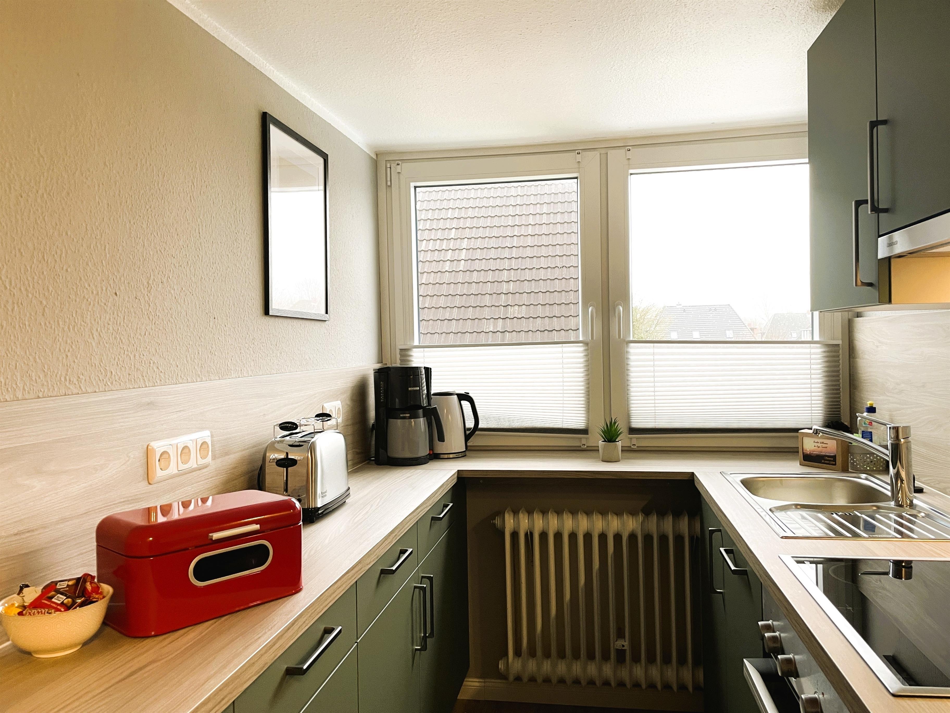 Unser Sonnenblick verfügt über ein geräumiges Wohnzimmer mit WLAN, bequemer Fernsehecke, einem gemütlichem Lesesessel sowie einer kleinen Auswahl an Büchern. Hier integriert finden Sie auch einen Essplatz für drei Personen. Die Küchenzeile mit Kühlschrank, Geschirrspüler, Ceranfeld und Backofen ist funktional hergerichtet und für Ihren Urlaub gut ausgestattet. Das Bad mit Fenster ist hell und die Dusche verfügt über einen niedrigen Einstieg. Das Schlafzimmer mit Doppelbett (180 x 200 cm) und Verdunklungsmöglichkeit lädt zu geruhsamen Nächten ein. Ein weiteres Schlafzimmer verfügt über ein Einzelbett (90 x 200 cm).