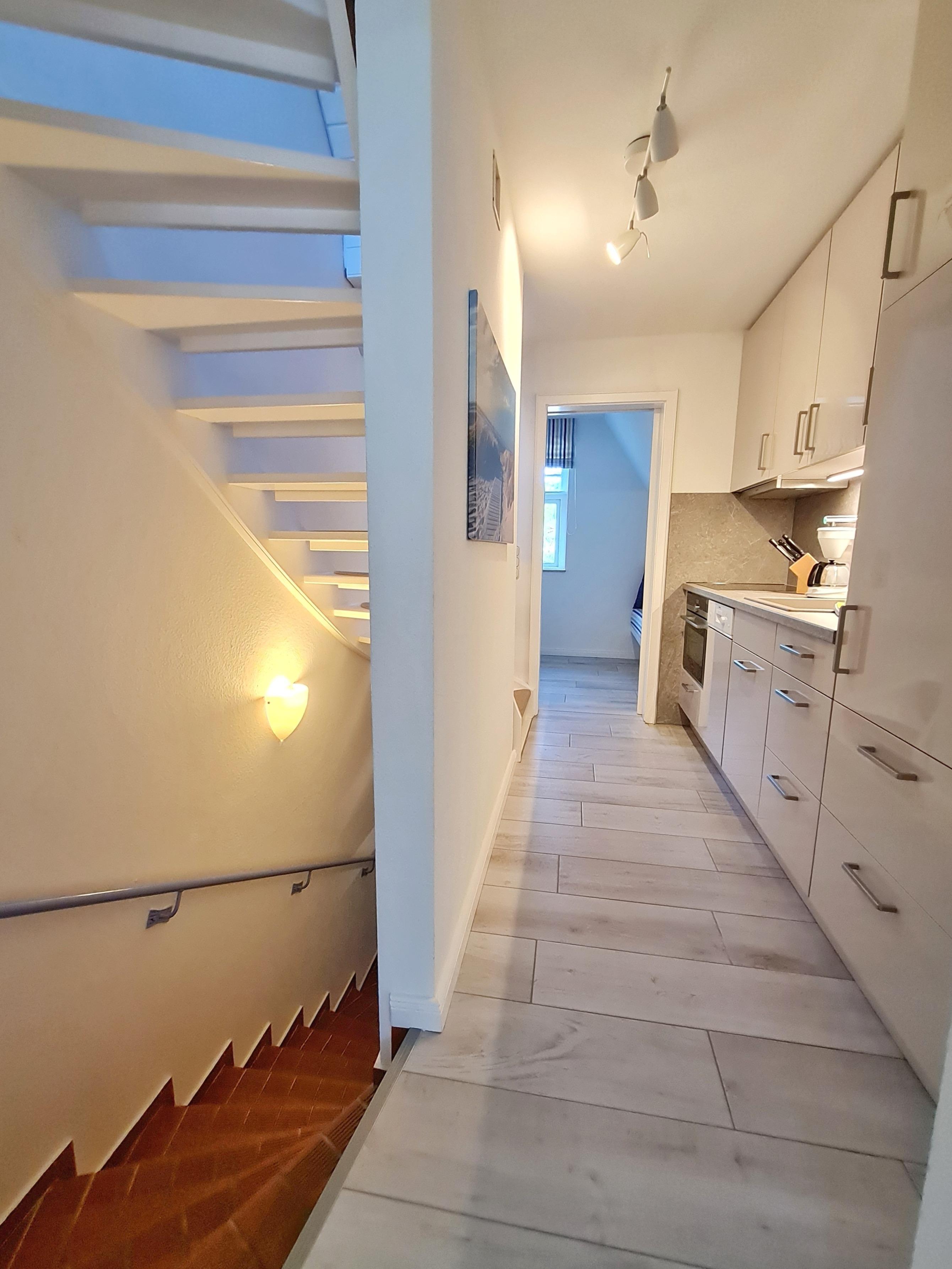 Wohnen Sie direkt am Südstrand, mit Blick auf den Kurpark, der durch den alten Baumbestand eine Oase der Ruhe ist. In nur wenigen Schritten sind Sie am Wasser und können Meer und Strand genießen. Das Haus Eiche wird den ganzen Tag mit Sonne verwöhnt. Die komplett sanierte und liebevoll eingerichtete Wohnung erstreckt sich über 3 Etagen (EG, OG und DG) und lädt zum Wohlfühlen und Verweilen ein. Sie finden eine moderne Einbauküche mit anschließendem Esszimmer und ein Doppelbett-Schlafzimmer mit Blick in den Park. Das Badezimmer liefert auf kleinem Raum allen Komfort, den man von einem Hotelbadezimmer erwartet. Im Dachgeschoss befindet sich zusätzlich noch ein beheizbarer Abstellraum. Highlights wie eine Nespressomaschine, Flatscreen, iPod Radio/CD Player, WLAN-Intern machen aus der Wohnung die perfekte Alternative zu einem Hotel am Strand. Im Garten gibt es zur gemeinsamen Nutzung mit Whg. Schwalbennest einen befestigten Sitzplatz/Terrasse mit einem kleinen Tisch, zwei Stühlen und einem Strandkorb während der Saison.