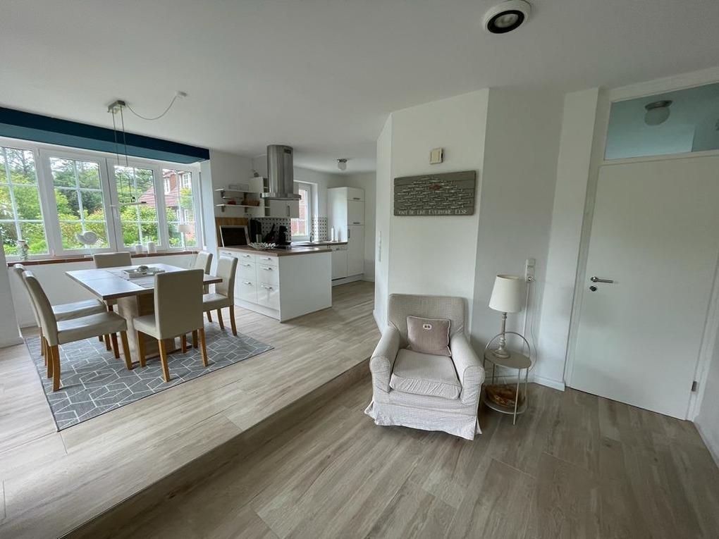 Charmante Doppelhaushälfte in Wyk auf Föhr, nur 100m vom Südstrand mit Kamin, Garten und moderner Ausstattung.