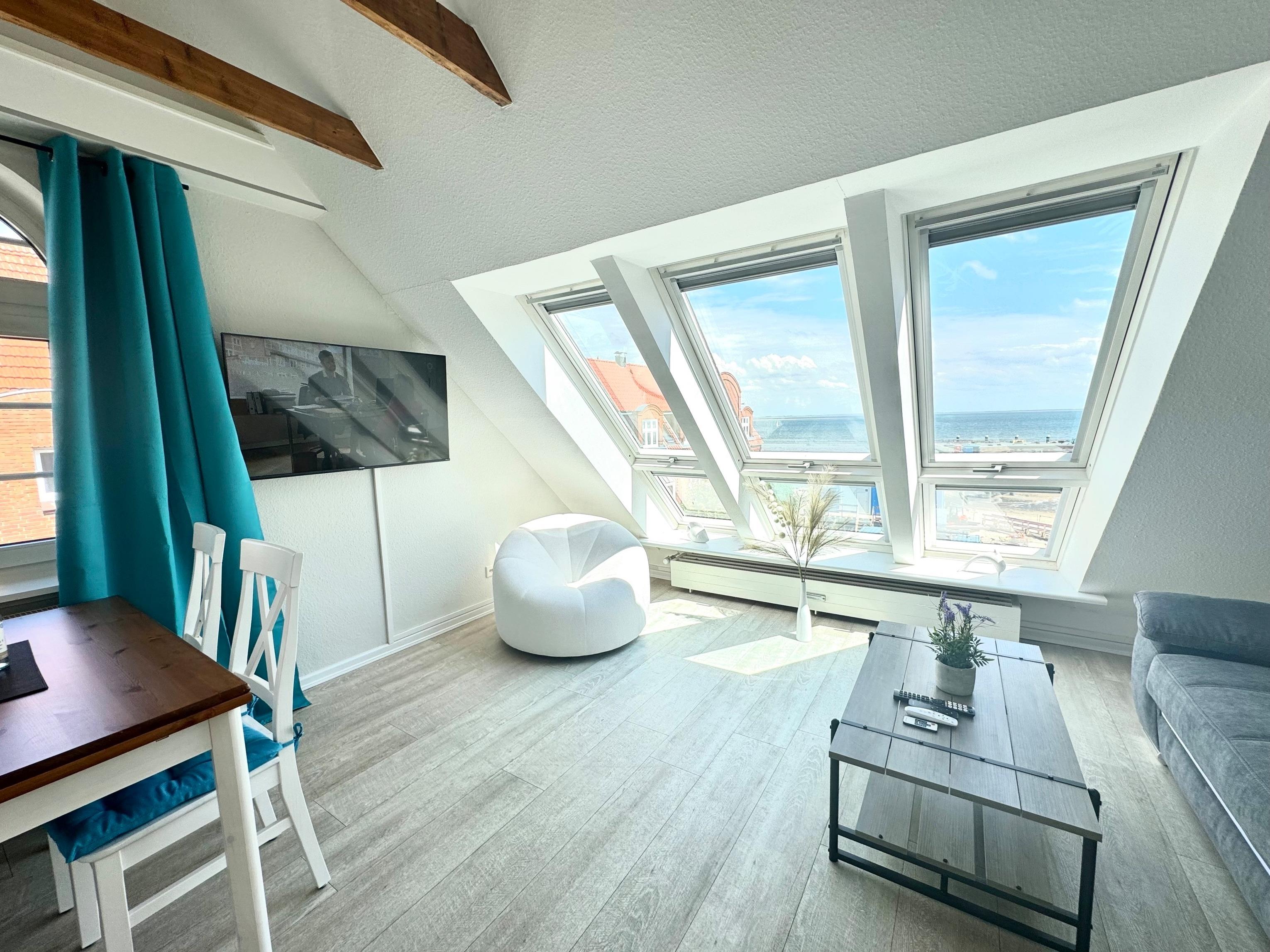 Moderne Ferienwohnung mit Meerblick und Strandnähe in Wyk auf Föhr, ideal für erholsame Tage an der Nordsee.