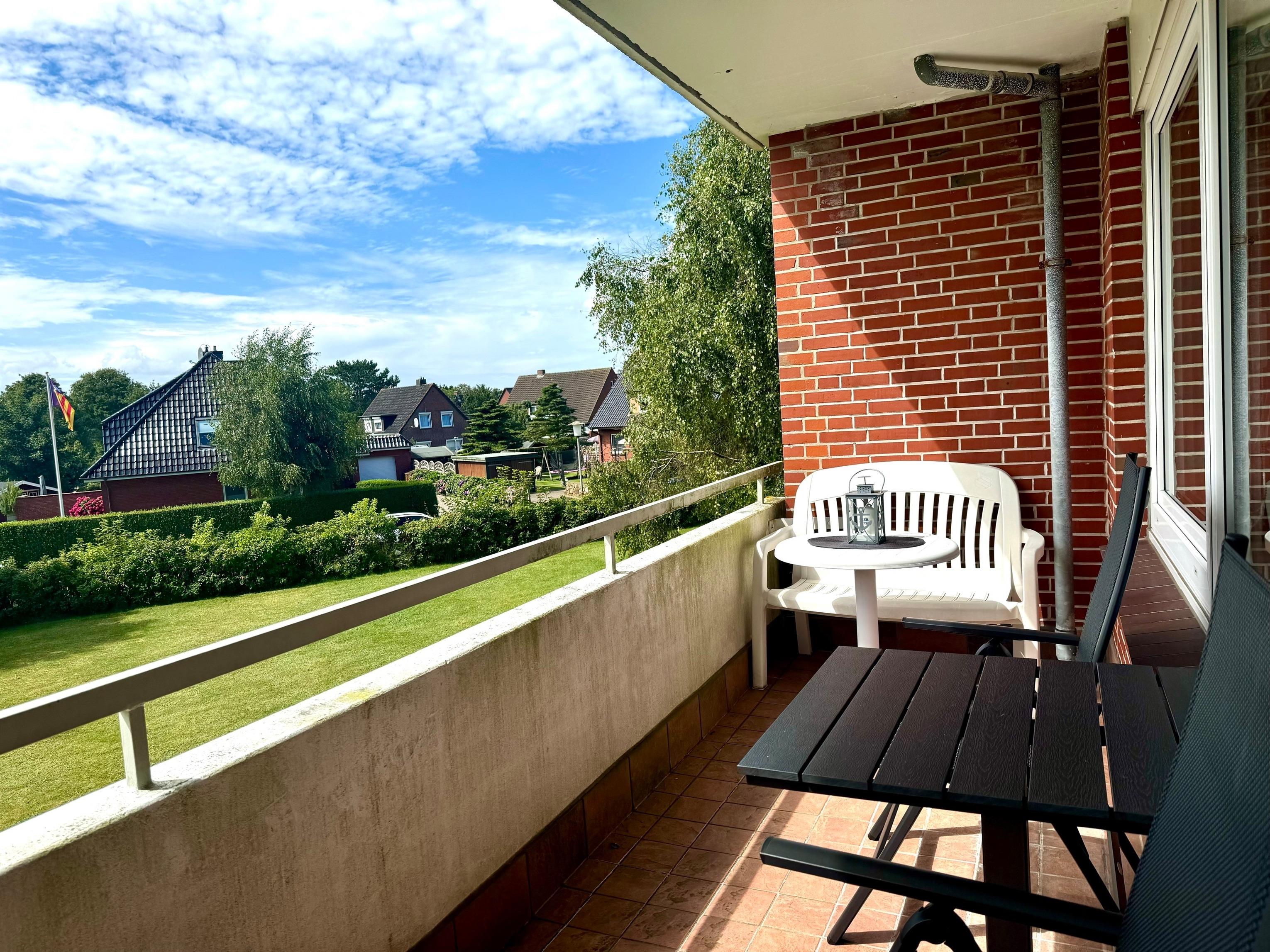 Komfortable Ferienwohnung mit Balkon und Strandkorb in Wyk auf Föhr, ideal für erholsamen Urlaub nah am Meer und Stadtzentrum.