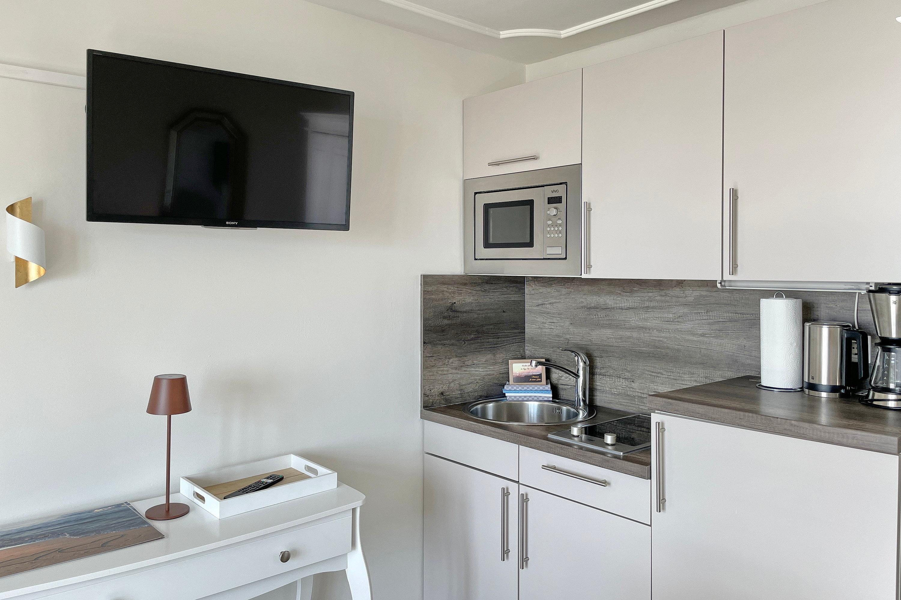 Erleben Sie unvergessliche Tage in dieser liebevoll eingerichteten Ferienwohnung. Vom Eingangsbereich mit Garderobe gelangen Sie in das Schlafzimmer mit einem komfortablen Doppelbett, einem großzügigen Kleiderschrank, einer gemütlichen Sitzecke und einem französischen Balkon. Das helle Wohnzimmer überzeugt mit einer integrierten Küchenzeile, einer einladenden Essecke und einer hochwertigen Schlafcouch, die Platz für ein bis zwei weitere Gäste bietet. Von hier aus treten Sie direkt auf den Balkon und genießen bei einer Tasse Kaffee oder einem Glas Wein den traumhaften Blick auf die Nordsee, die Halligen und die Insel Amrum. Ein besonderes Plus sind die zwei voll ausgestatteten Duschbäder, die zusätzlichen Komfort versprechen. Das Hus Lüttenblick? ist der ideale Rückzugsort, um den Tag entspannt ausklingen zu lassen – hier erwartet Sie Ihre perfekte Auszeit an der Nordseeküste.