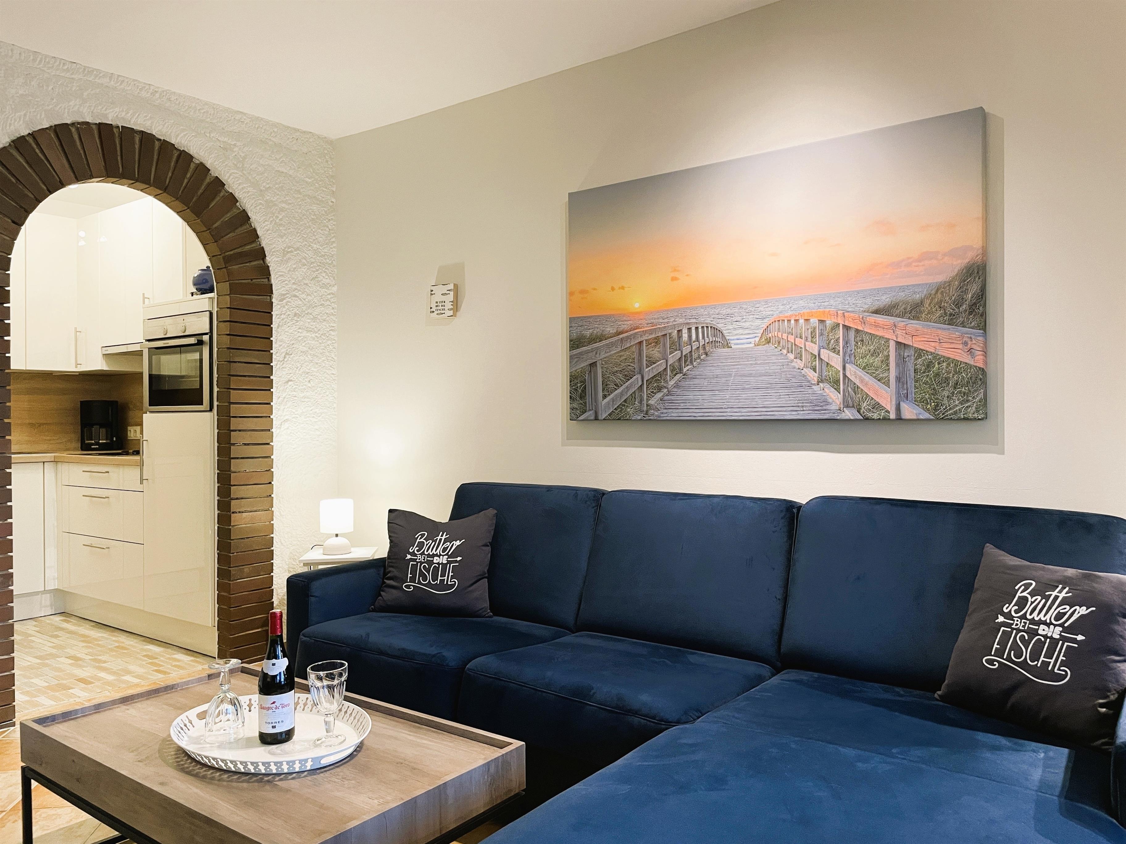 Charmante Ferienwohnung in Wyk auf Föhr, nur wenige Meter vom Südstrand und mit Sauna- und Schwimmbadnutzung.