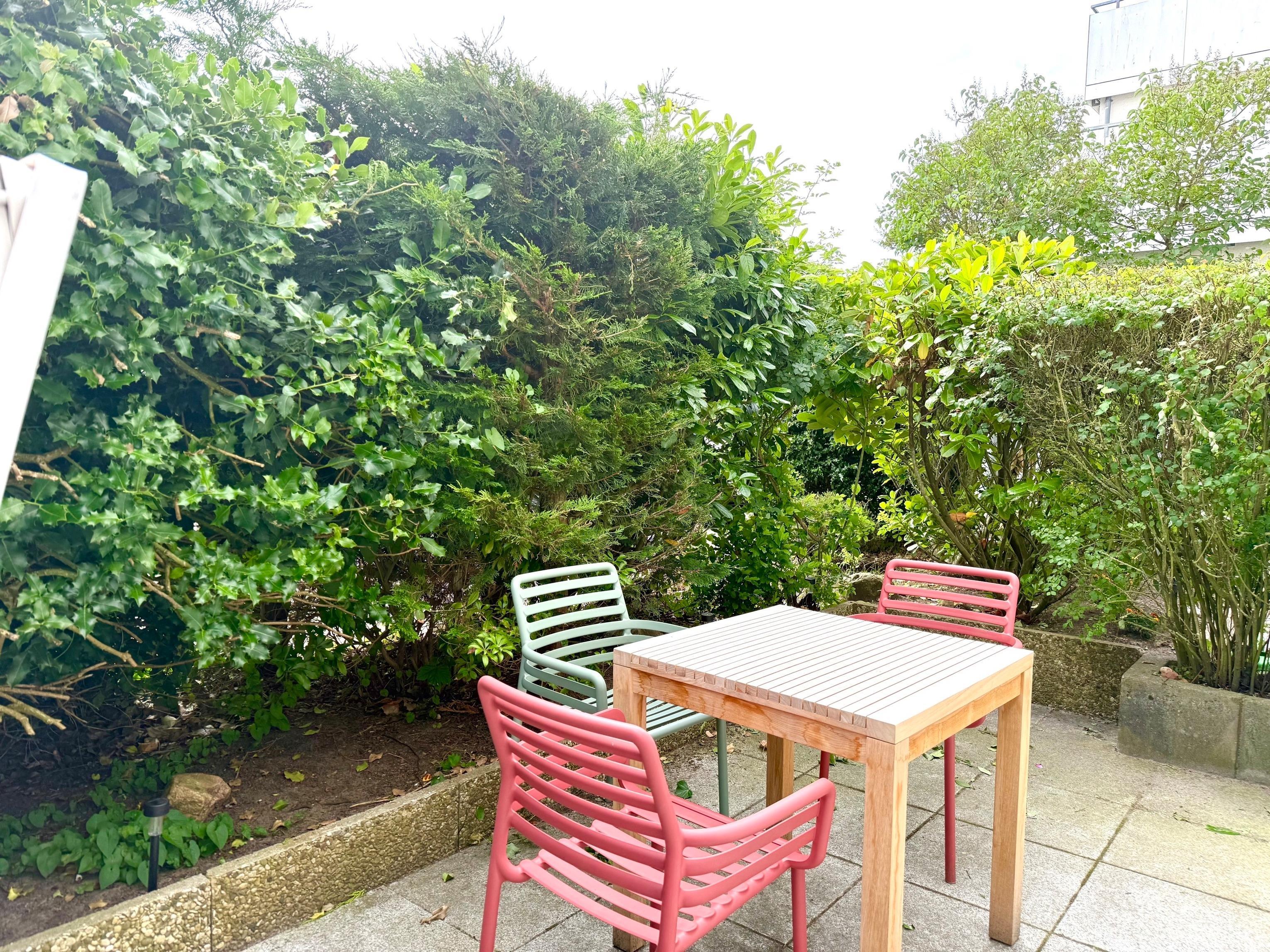 Die komplett neu, hell und geschmackvoll eingerichtete Wohnung "Käptn`s Koje" für 2 Personen empfängt Sie im maritimen Stil mit Blick auf die Terrasse und ins Grüne. Hier finden Sie Gartenmöbel zum Relaxen. Aber auch die Möglichkeit zum Sonnen-Frühstück, einem Kaffee zwischendurch oder mit einem Sundowner den Abend in Ruhe zu beenden, ist hier gegeben.