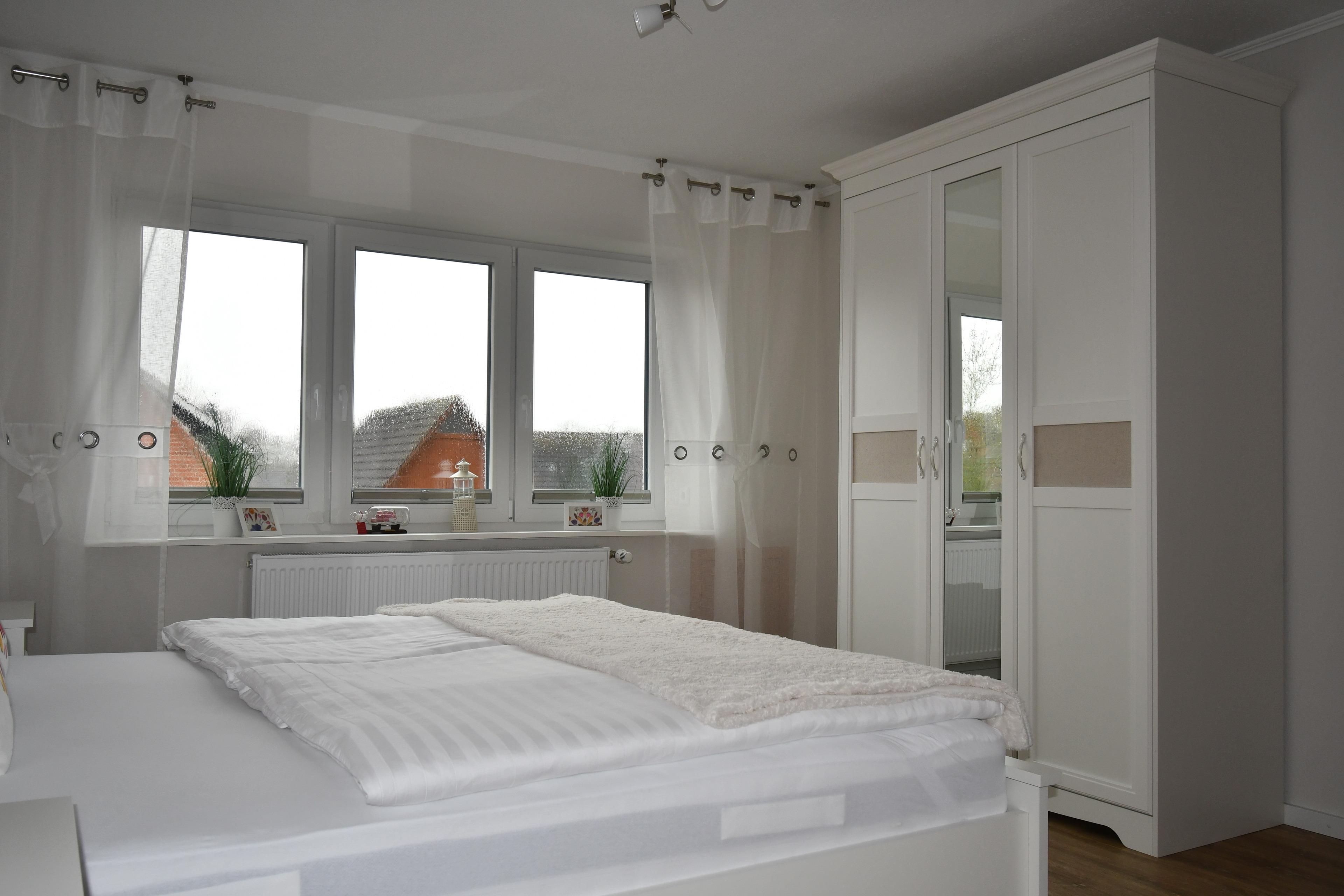 Schlafzimmer: Doppelbett (180 * 200), Kleiderschrank, Kommode und Schminktisch