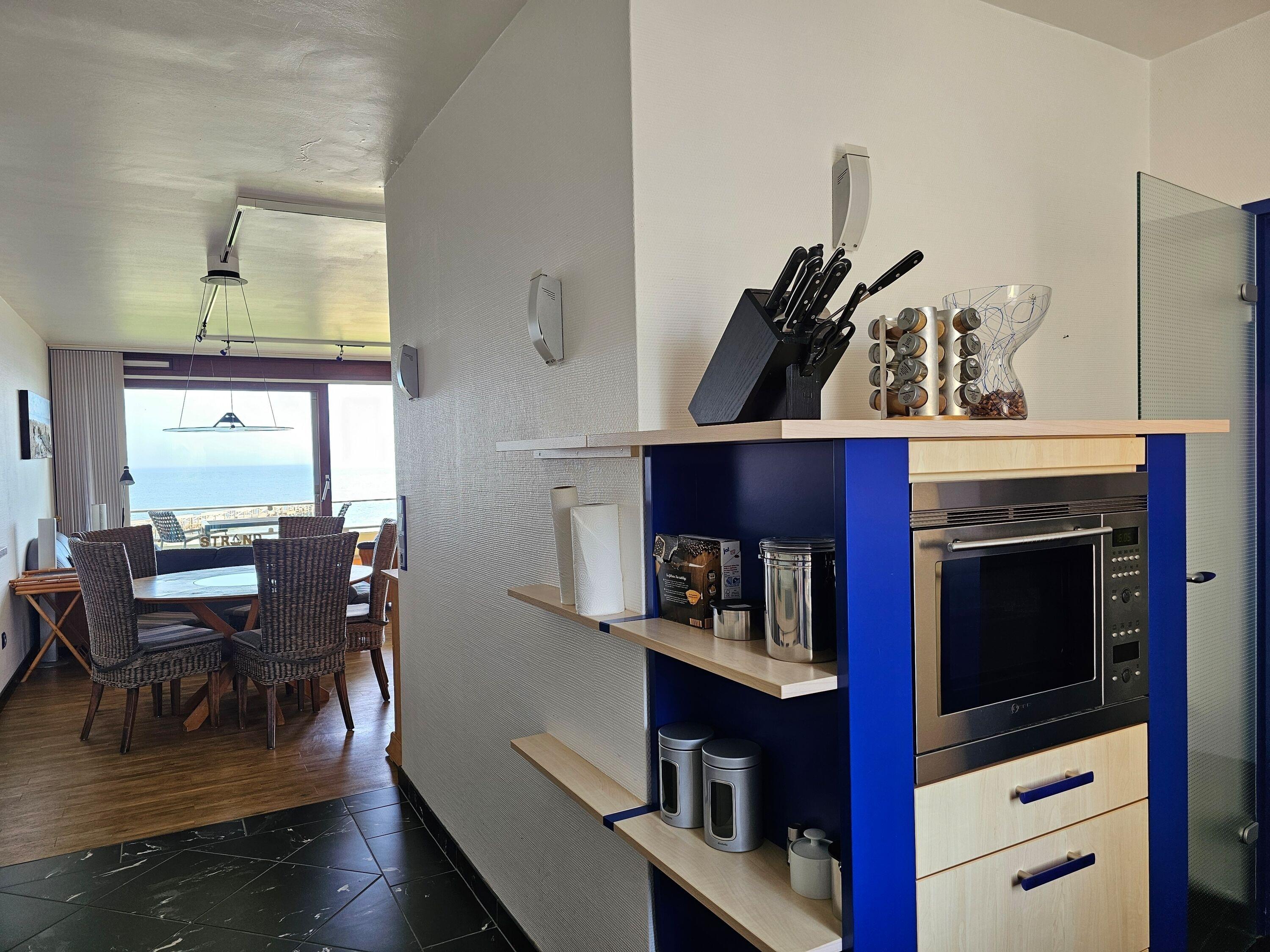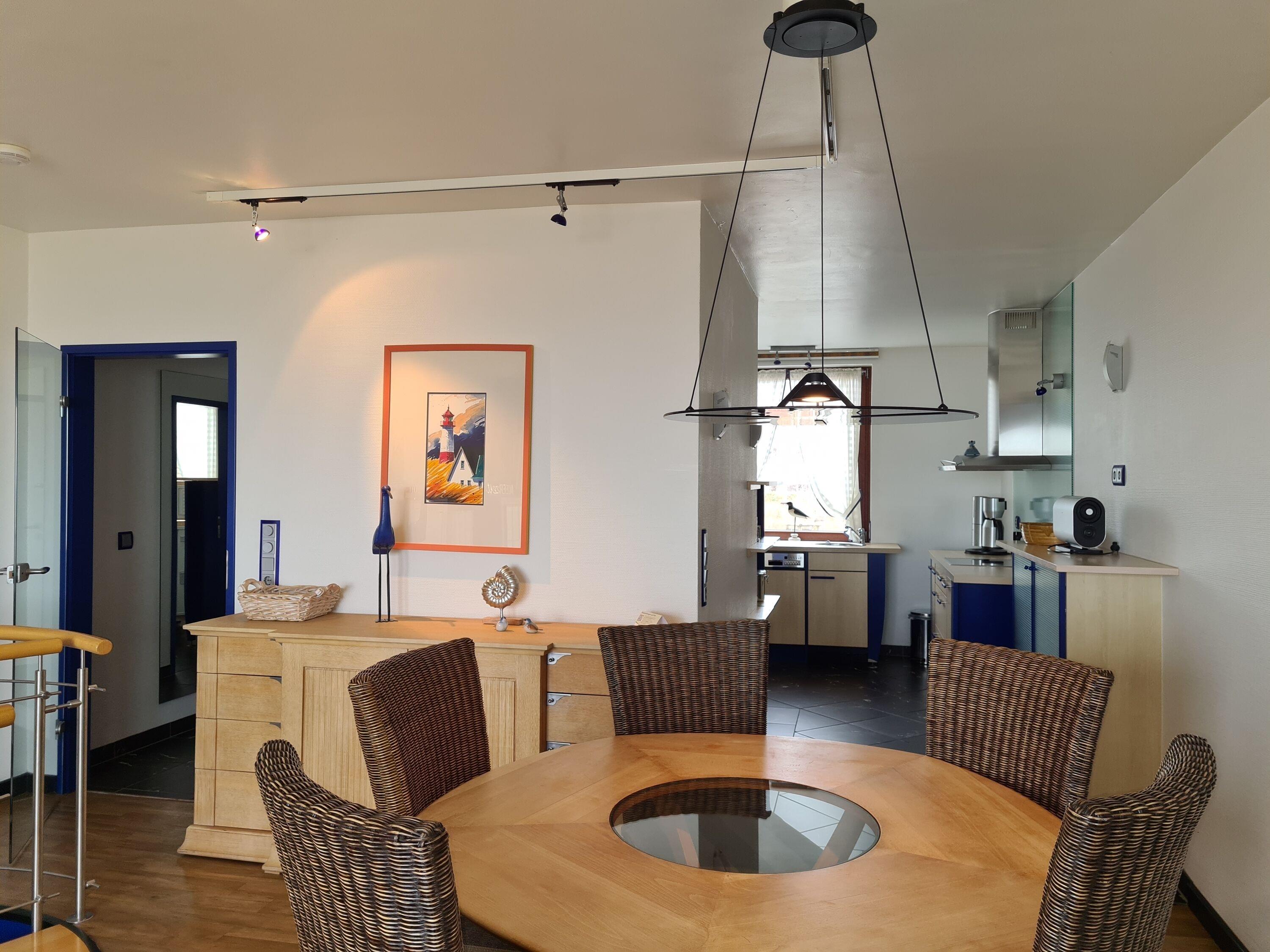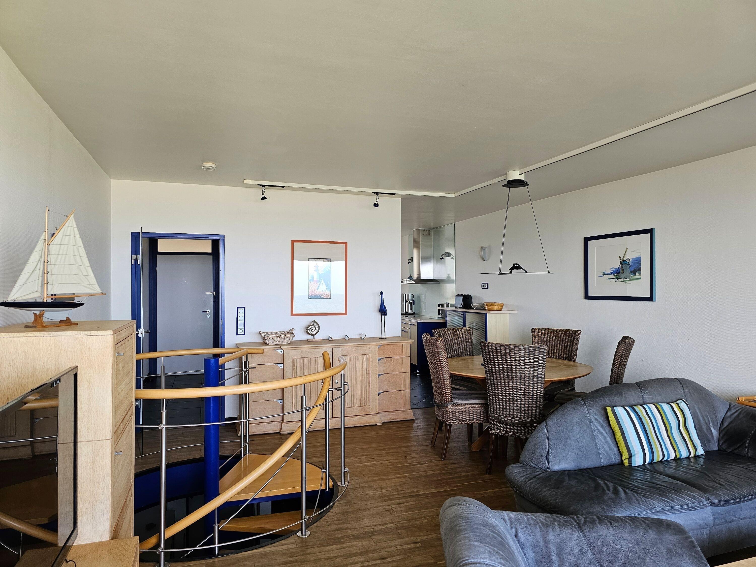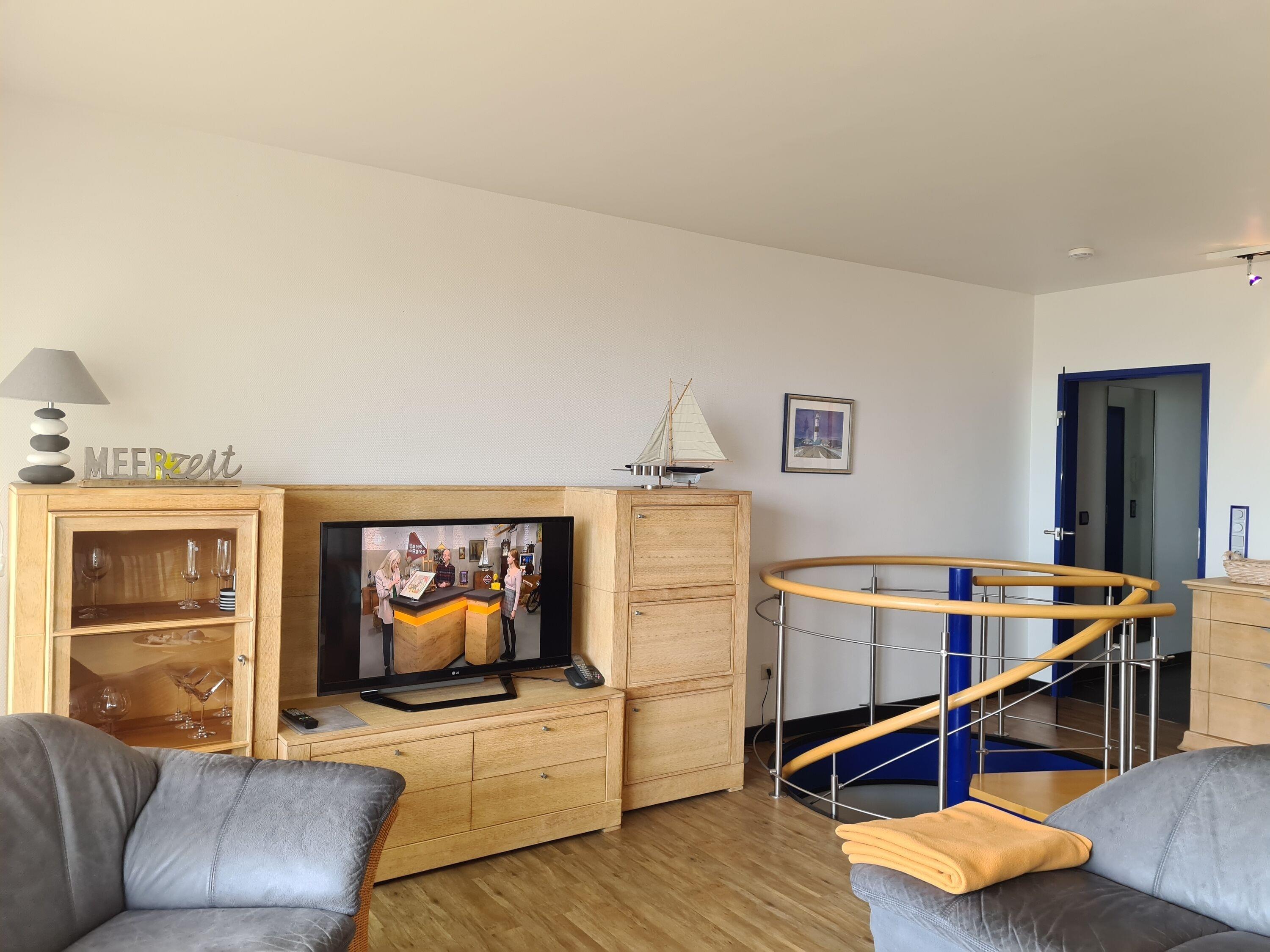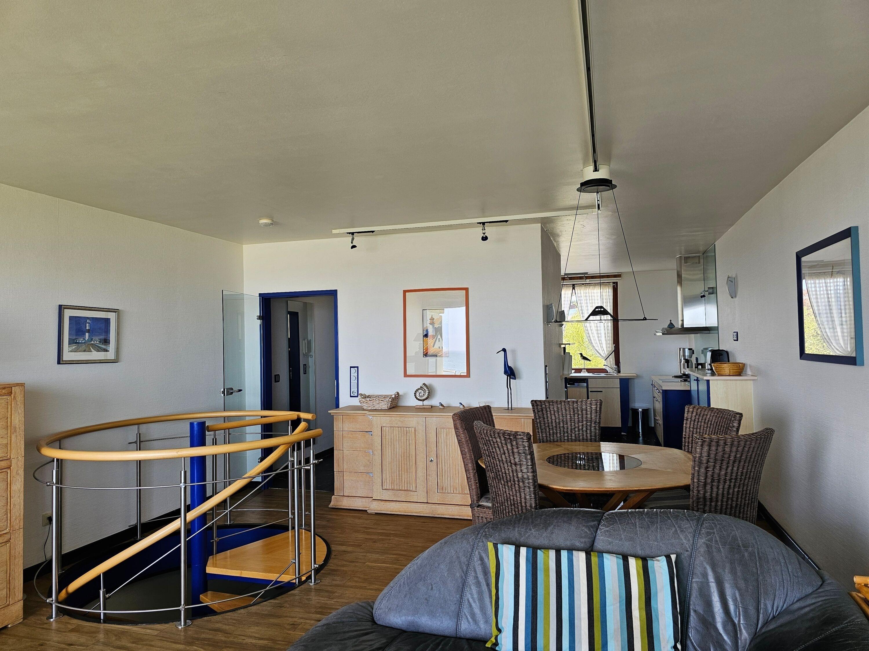 Die Wohnung befindet sich im Hochparterre links außen im Gebäude (vom Meer aus gesehen) und verfügt über einen Südbalkon. Im Wohnbereich gibt es eine gemütliche Couch, die Küche ist voll ausgestattet, auch ein Gäste-WC ist vorhanden. Über eine Wendeltreppe gelangen Sie in das Untergeschoß, hier gibt es 2 Schlafzimmer und ein komfortables Bad mit Whirlpool. Im "Bi de Wyk" steht an Wellness-Angeboten ein Schwimmbad zur kostenfreien Nutzung und eine Sauna (mit Gebühr) zur Verfügung - so kommt auch Ihre Gesundheit nicht zu kurz. Ihre Fahrräder können Sie im abschließbaren Fahrradabstellraum unterbringen. Zur Wohnung gehört ein Parkplatz in der Tiefgarage.