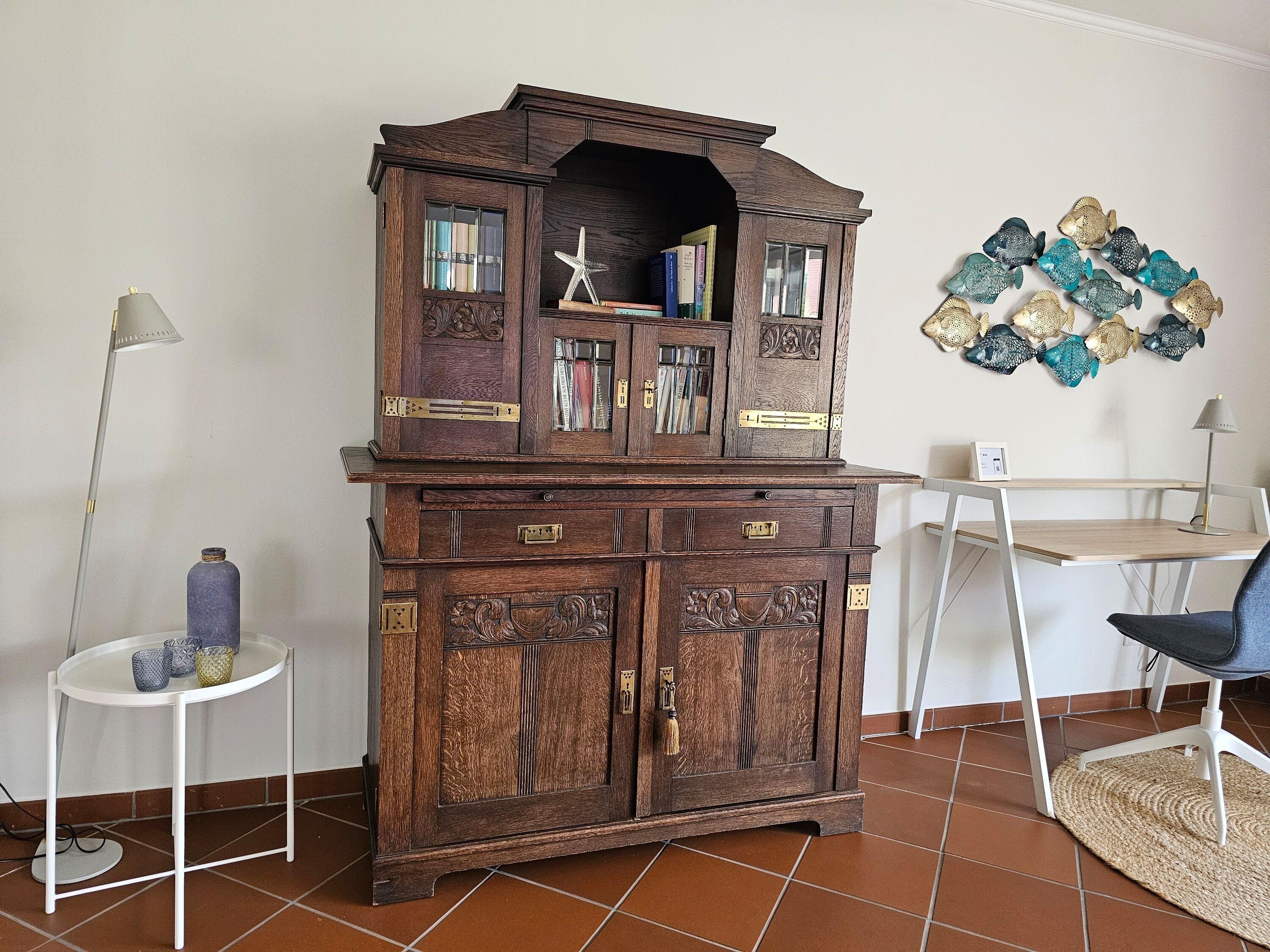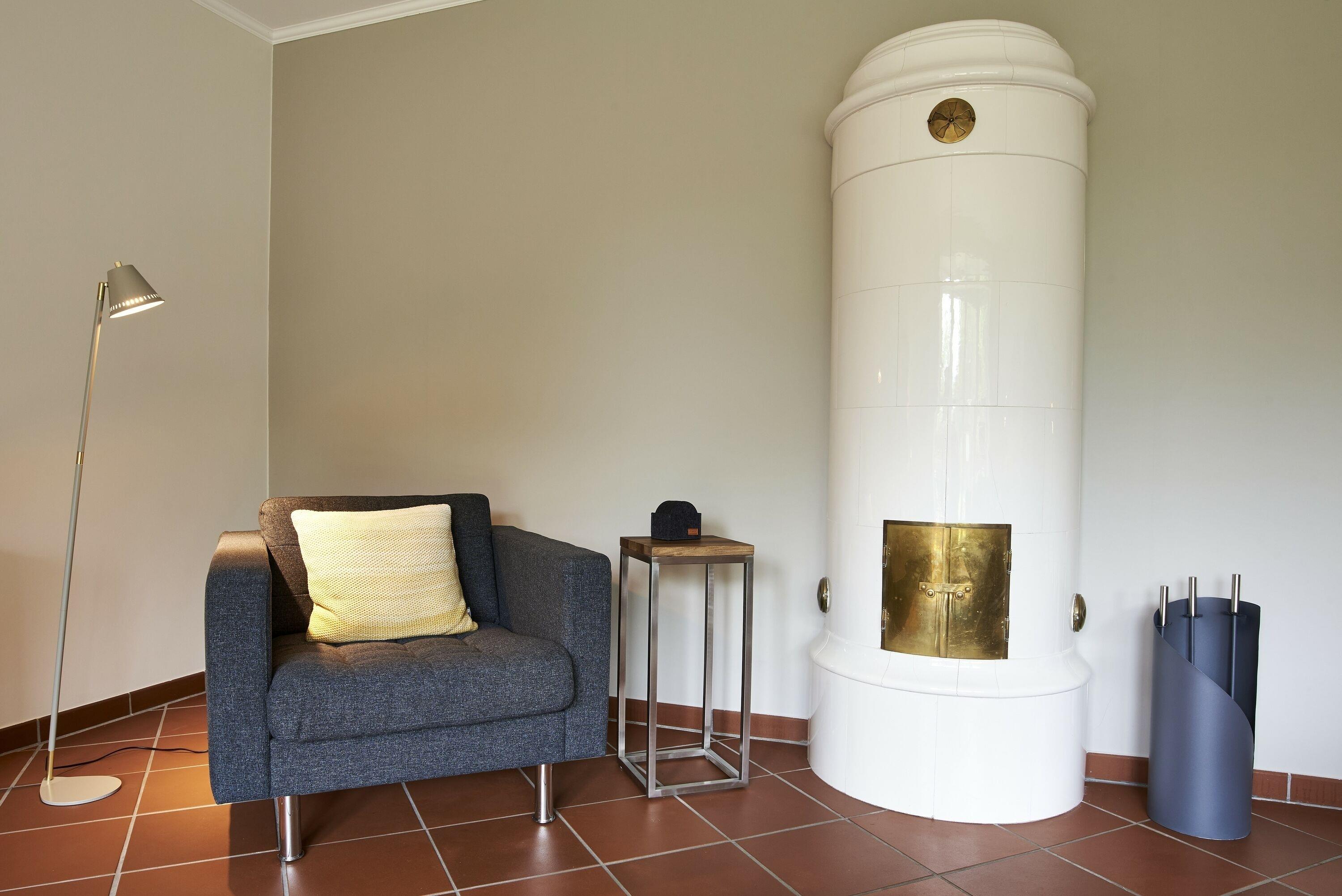 Das Highlight im Wohnzimmer ist der Mylin-Ofen, der so typisch für die Insel ist und in der kalten Jahreszeit für behagliche Wärme sorgt. Der große, lichtdurchflutete Raum strahlt eine moderne Gemütlichkeit aus, und lässt Sie garantiert auch einen Regentag entspannt überstehen.
