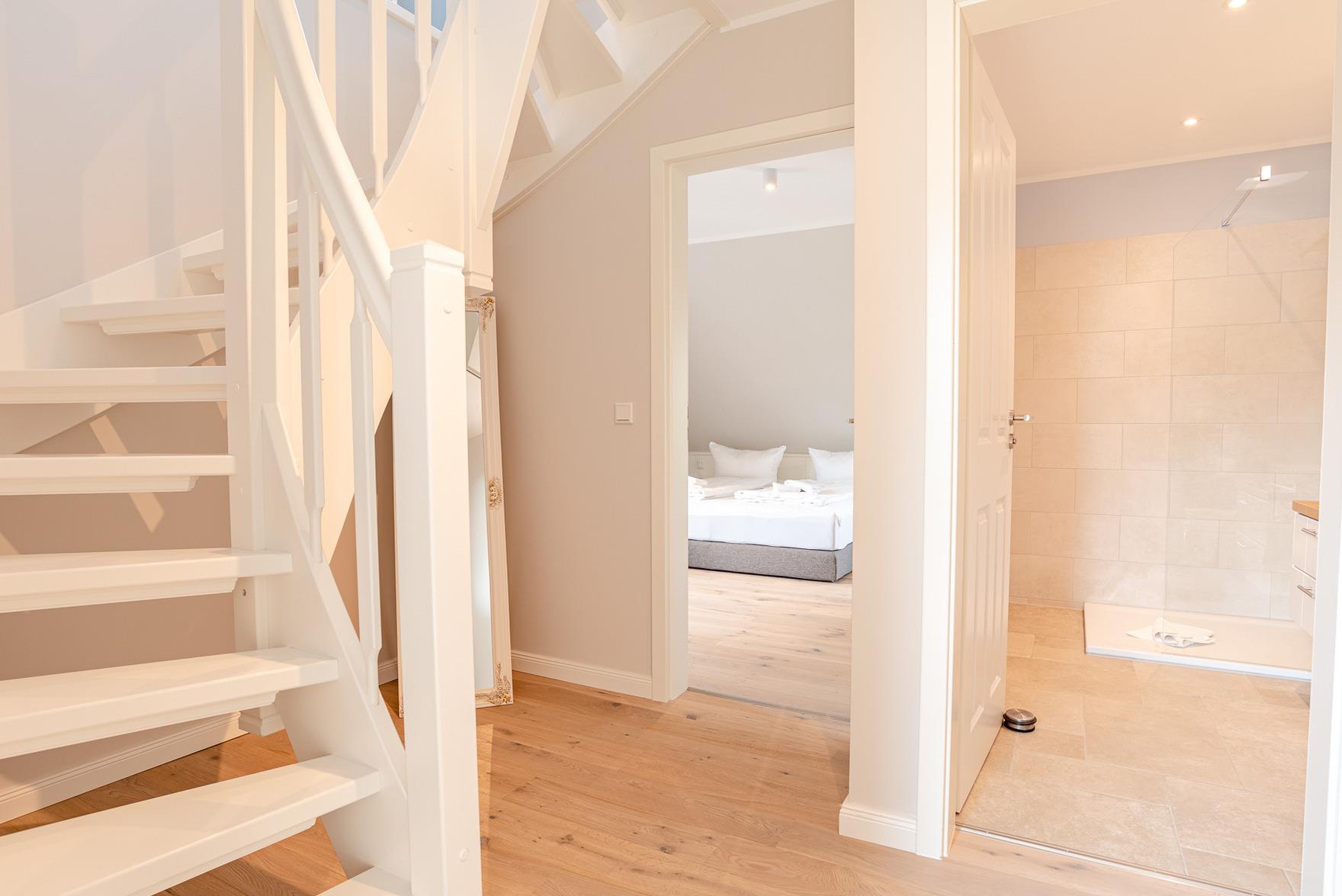 Die Unterkunft verteilt sich über EG und 1.OG. Es gibt 3 Schlafzimmer mit Doppelbett (1 x im EG und 2 x im OG).