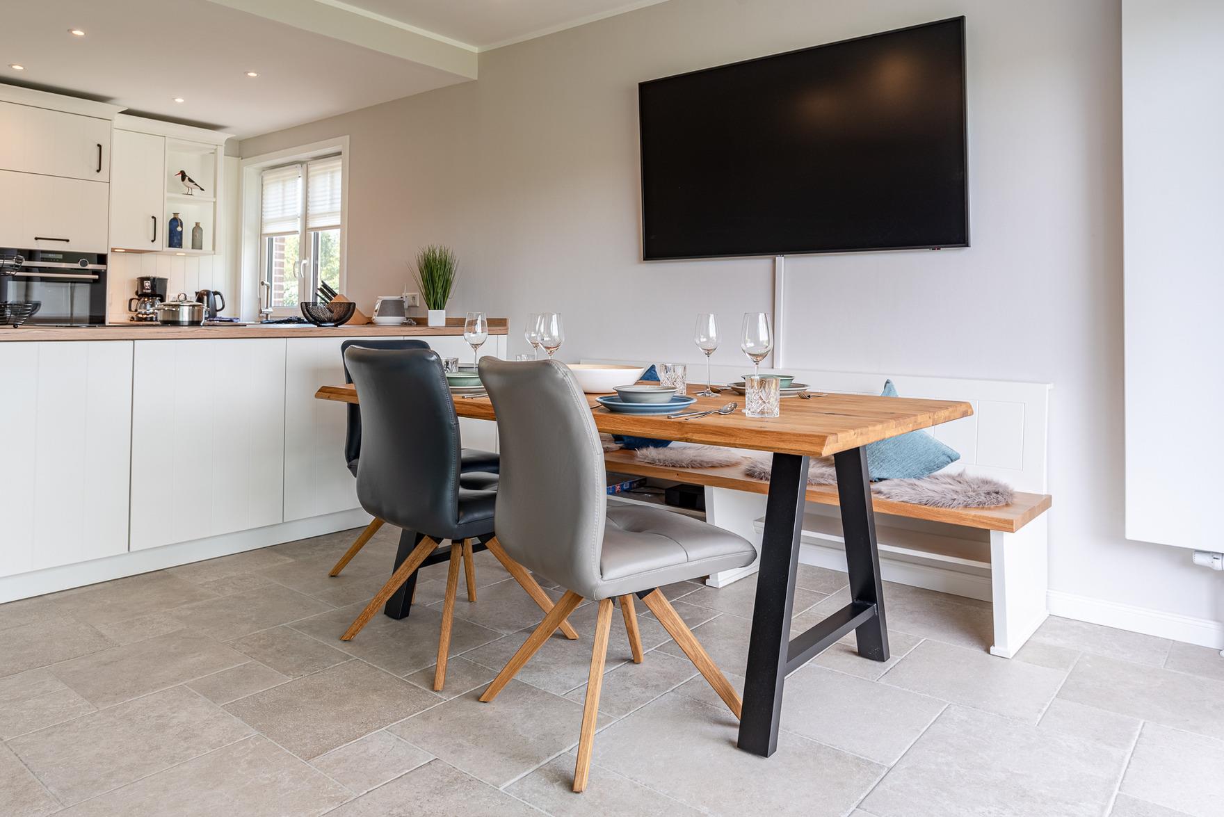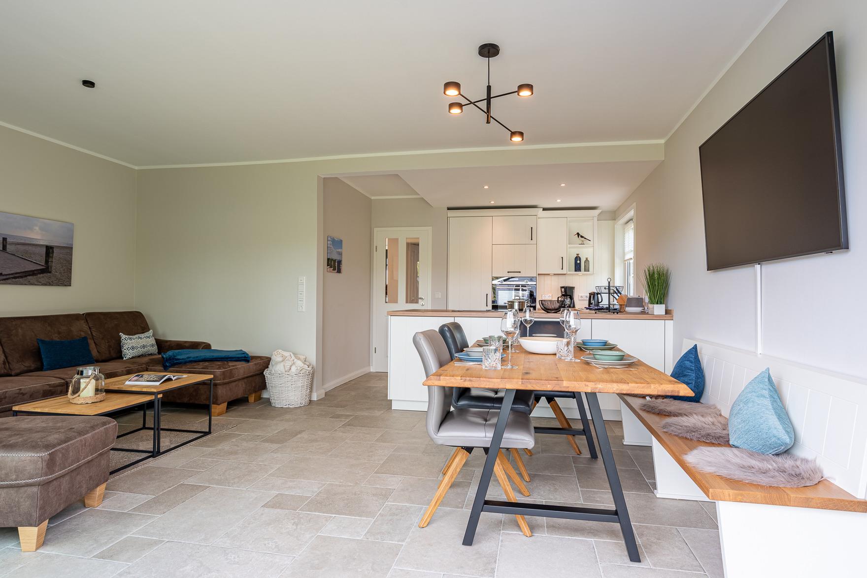 Diese sehr schöne und hochwertig eingerichtete Doppelhaushälfte wurde von Anfang 2023 bis Juli 2024 kernsaniert. Mit bis zu sechs Personen können Sie sich vom ersten Urlaubstag an wohlfühlen.