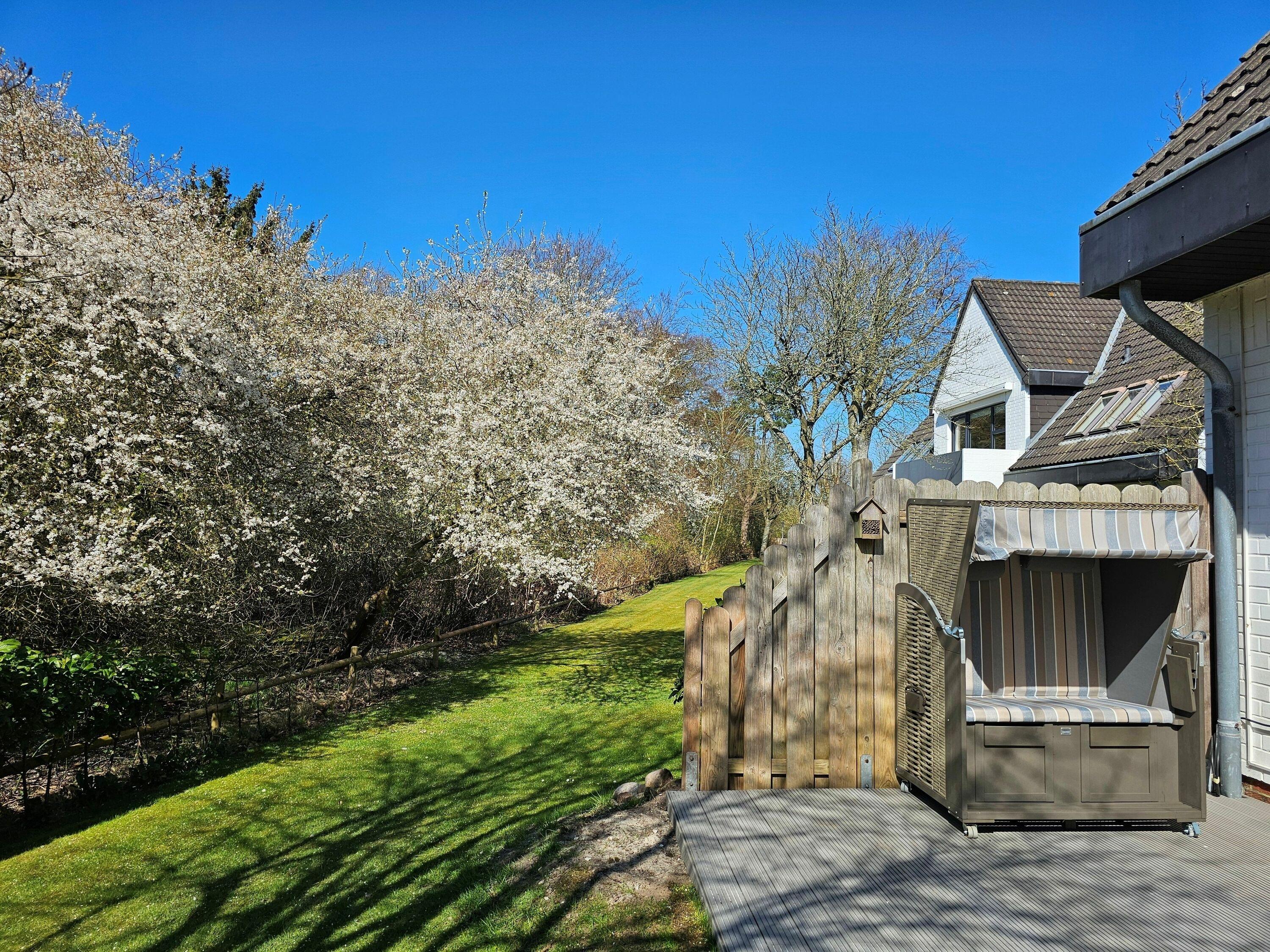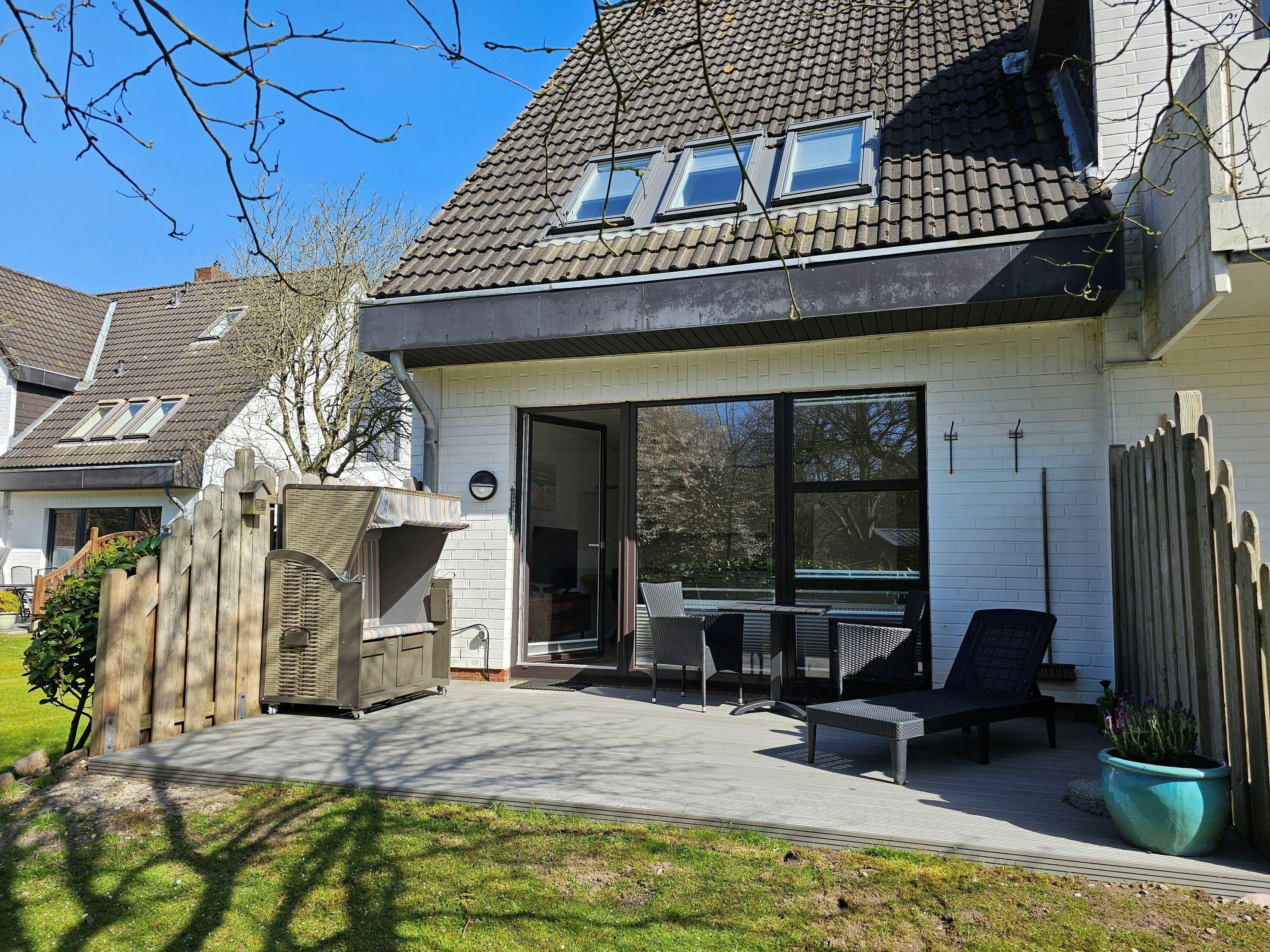 Die Ferienwohnung Strandflieder in Wyk auf Föhr bietet modern renovierten Komfort und eine sonnige Terrasse nahe dem Südstrand.