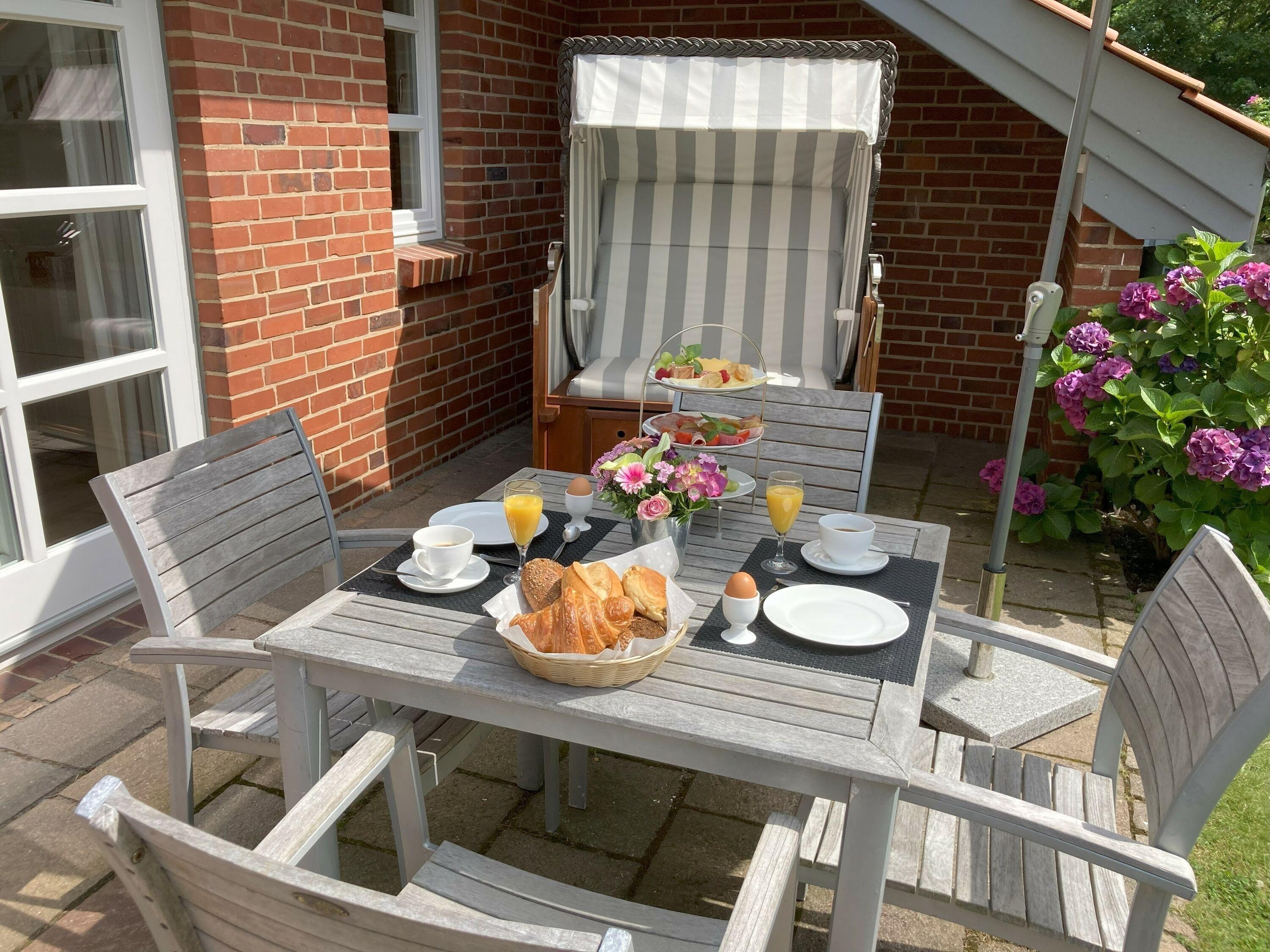 Helle Ferienwohnung mit Terrasse nahe dem Südstrand in Wyk auf Föhr für erholsamen Urlaub.