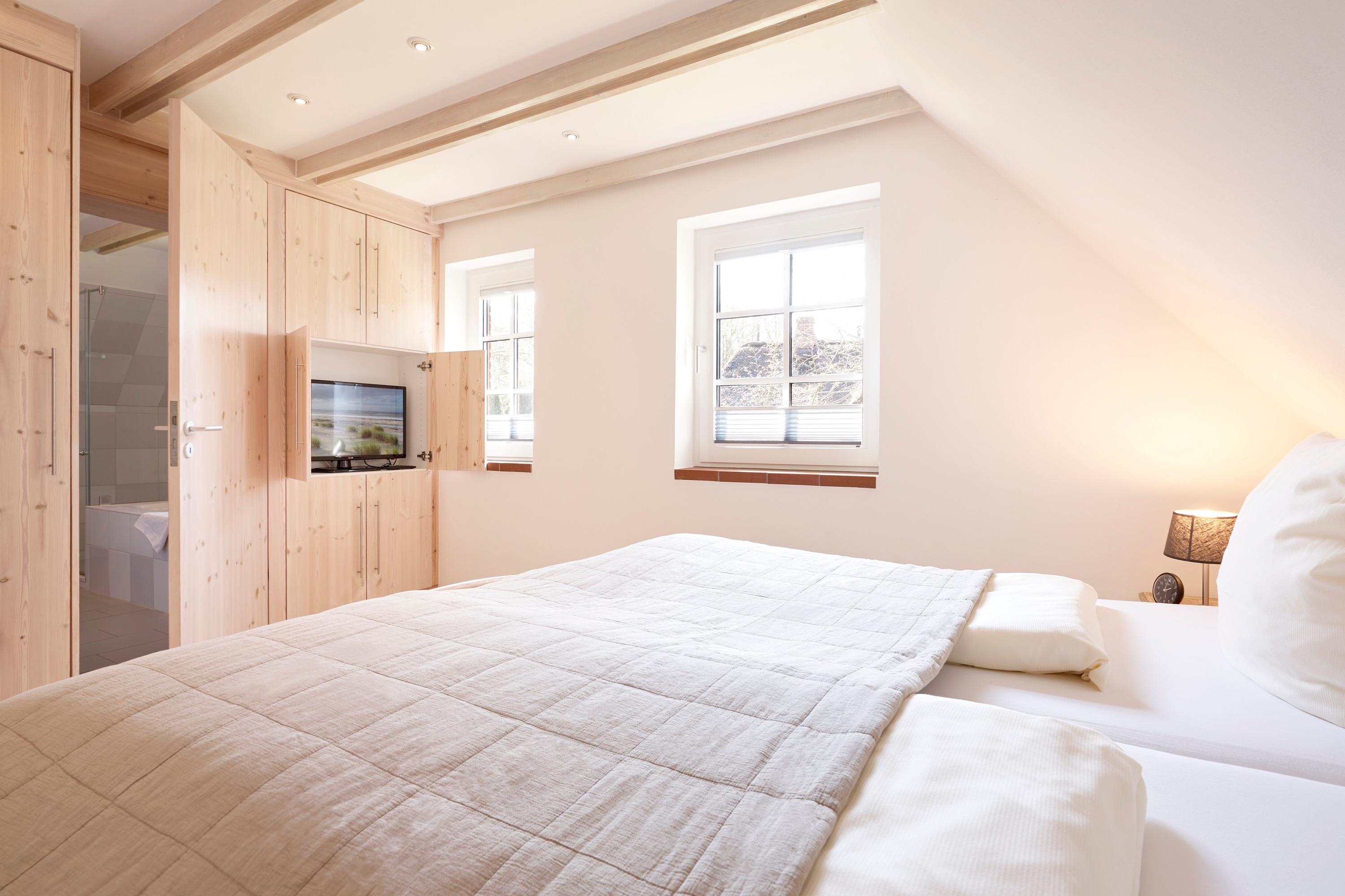 Der Name Family [&] Friends wurde durch die Kinder der Eigentümer ausgewählt. Es ist ein Ort für die gesamte Familie, Freunde und Gäste. Ein geschützter Sitzplatz im Südwesten lädt zum Frühstücken, gemeinsamen Essen oder auch zum Entspannen ein. In der Doppelhaushälfte auf drei Ebenen befinden sich drei Bäder, eine Küche mit angrenzender Essecke, eine Schlafgalerie im Dachgeschoss, zwei Wohnbereiche, ein kuscheliges Alkovenbett, Infrarotsauna und auch ein dänischer Eisenofen fehlt natürlich nicht. Hier verbringen Sie die schönsten Tage des Jahres. Die Lage in direkter Nähe zum Alten Kurpark und zum Strand macht das Haus so beliebt. Mit nur wenigen Schritten gelangen Sie zur Strandpromenade, welche Sie ins Herz von Wyk führt.